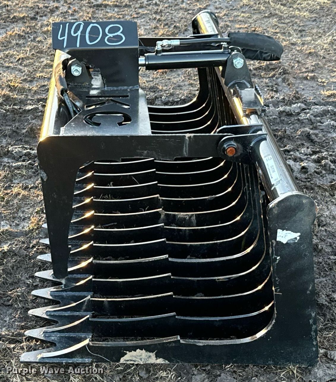 This KC skid steer rock grapple bucket will sell to the highest bidder regardless of price.