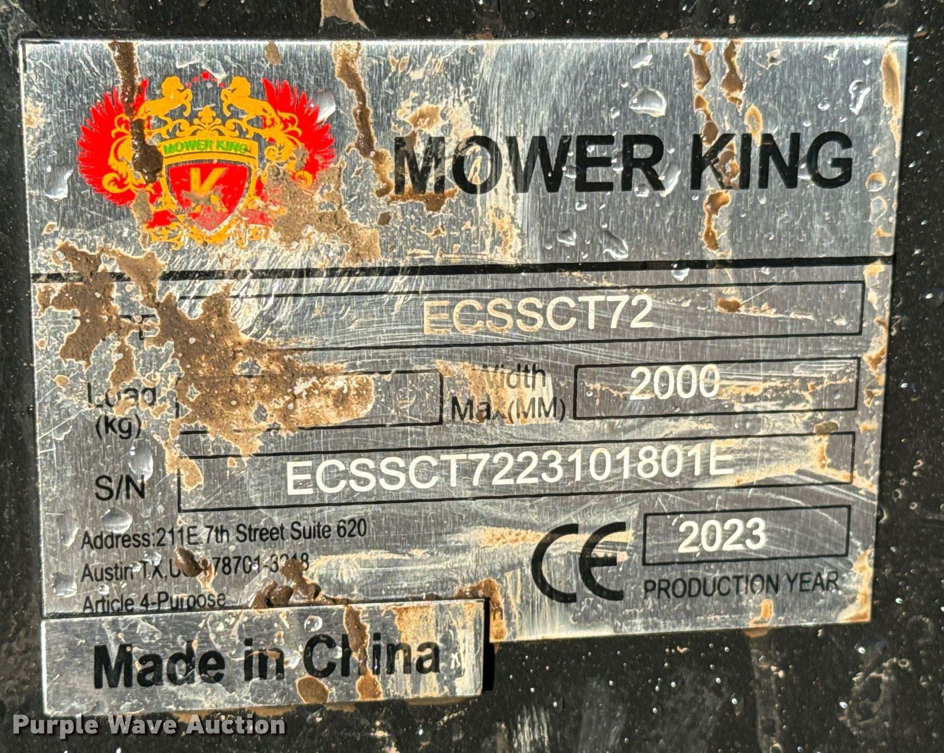 Purple Wave is selling a used Skid Steer Attach. in Kansas. This item is a 2023 Mower King ECSSCT72 skid steer trencher with the following: Serial: ECSSCT7223101801E, Width: 4", Length: 48", Unused