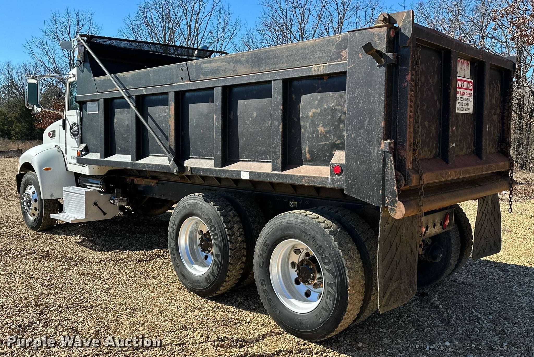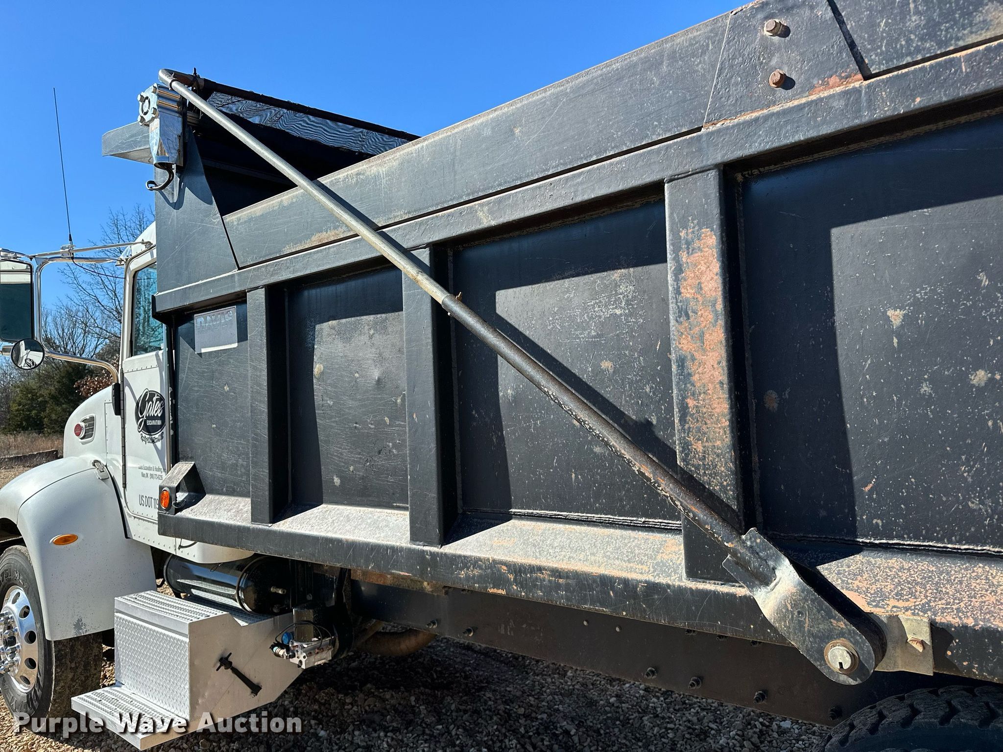 2008 Peterbilt 340 dump truck. Miles: 249,704 on odometer, VIN: 2NPRLN9X98M763556. Engine Cummins ISL400, Cylinders: 6, Fuel type: Diesel. Transmission Eaton, Manual, Speed: 10. Chassis Axles: Tandem, Differential lock: Inter-axle, Suspension: Spring over walking beam, Brakes: Air, PTO. Interior AC, Heat, Cruise control. Features Dump bed Davis, 16' L x 96" W, Side height: 45", Bed type: Steel, Roll tarp, Ram: Single, End gate: Air operated. Tires Size: 11R22.5. Notes DPF deleted, Hood latch broken. Cherokee Nation title. Mileage has not been verified. Exempt will be written in the odometer disclosure on the title. Title distribution may be delayed up to 14 days from verification of funds. Gates Excavation & Hauling, Inc... 100154 Hwy 82. Vian, OK 74962
