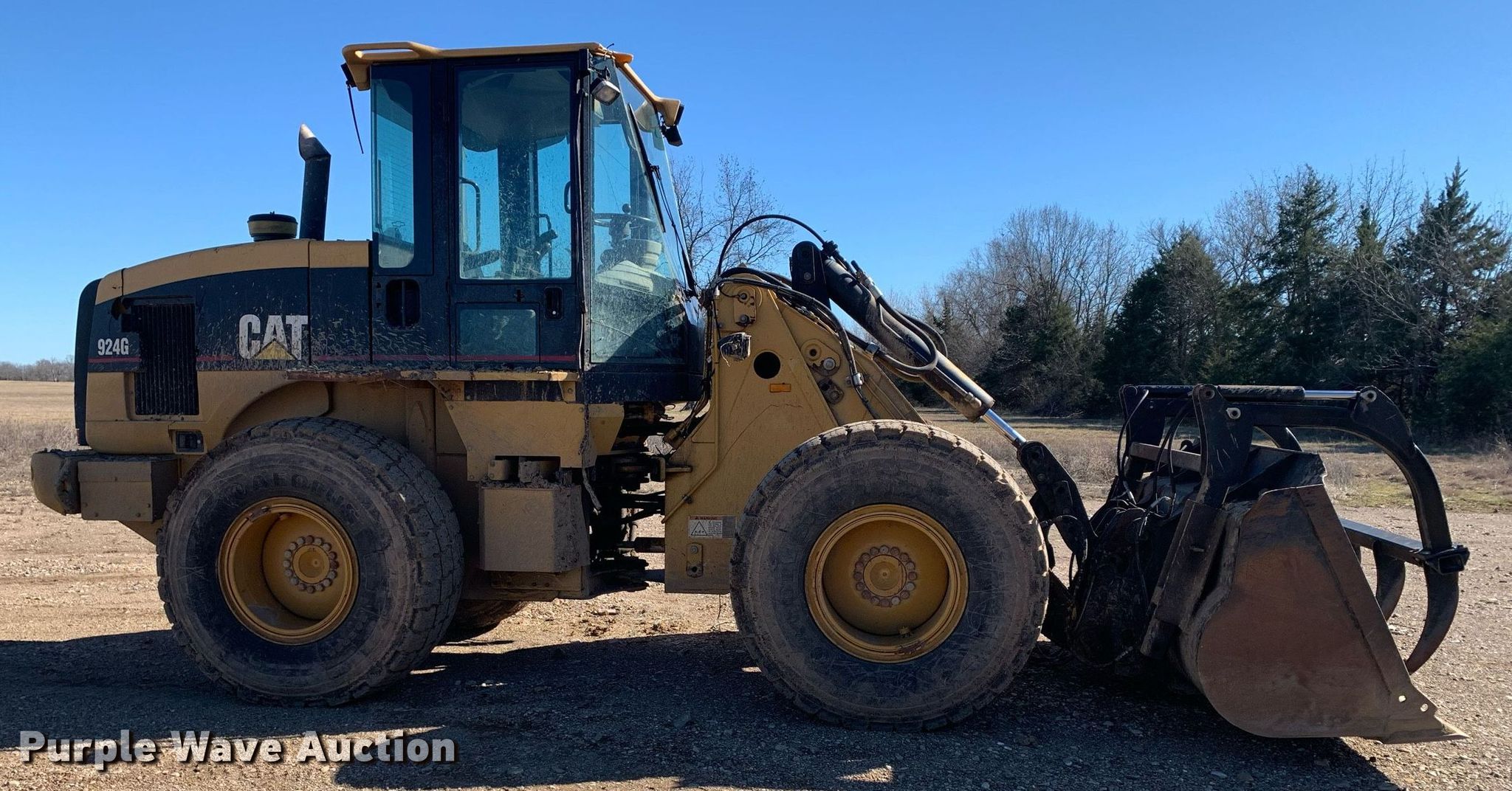 Purple Wave is selling a used Wheel Loader in Texas. This item is a 2001 Caterpillar 924G wheel loader with the following: Hours: 27,111 on meter, Serial: 9SW01098