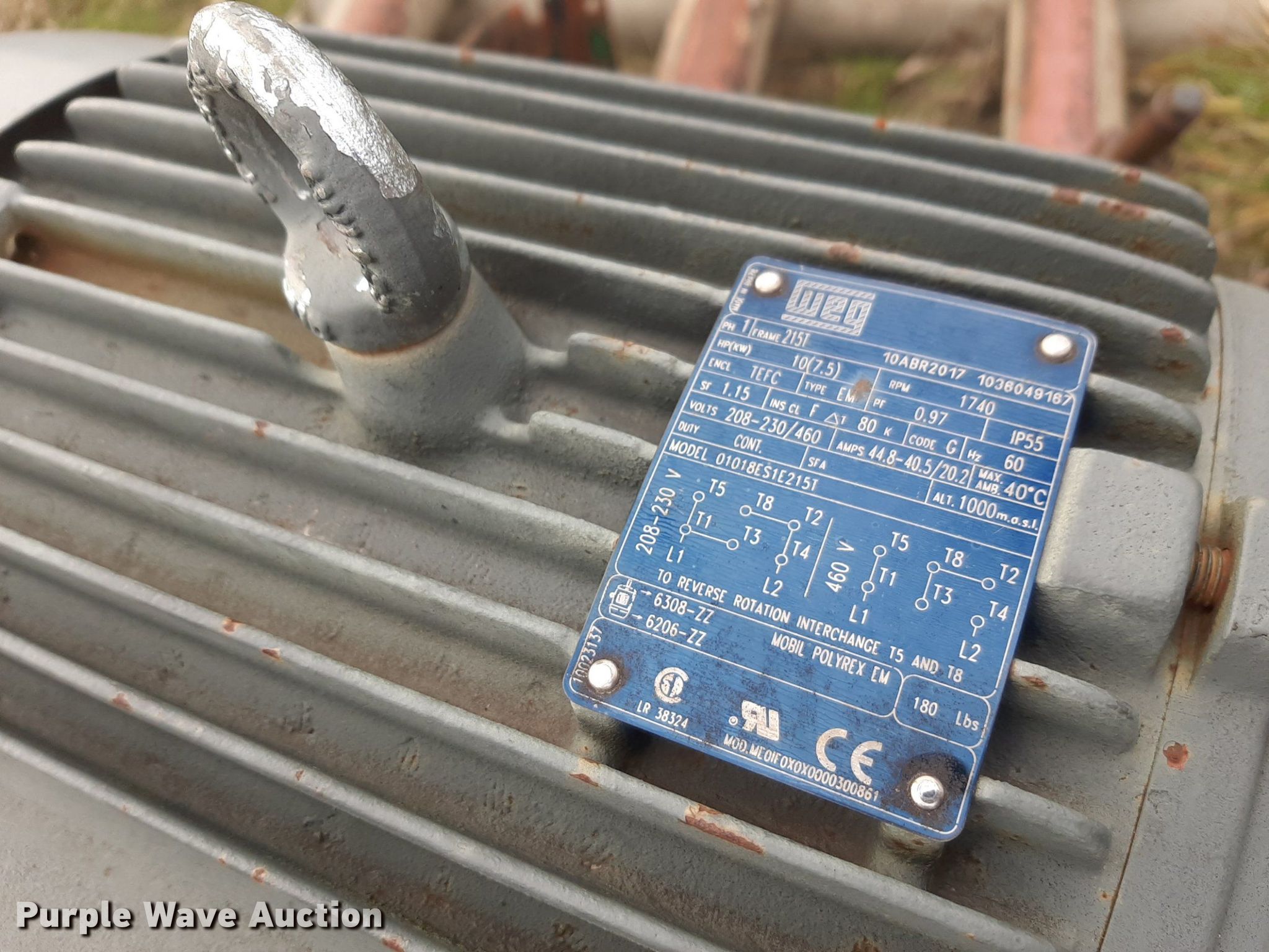 Purple Wave is selling a used Other Industrial or Business in Kansas. This item is a Emsco pump jack with the following: Weg electric motor, HP: 10, Volts: 208-230/460, Phase: Single, Skid mounted, Unknown operating condition, Unit #: 2023FP3-02 - Truelove 5B