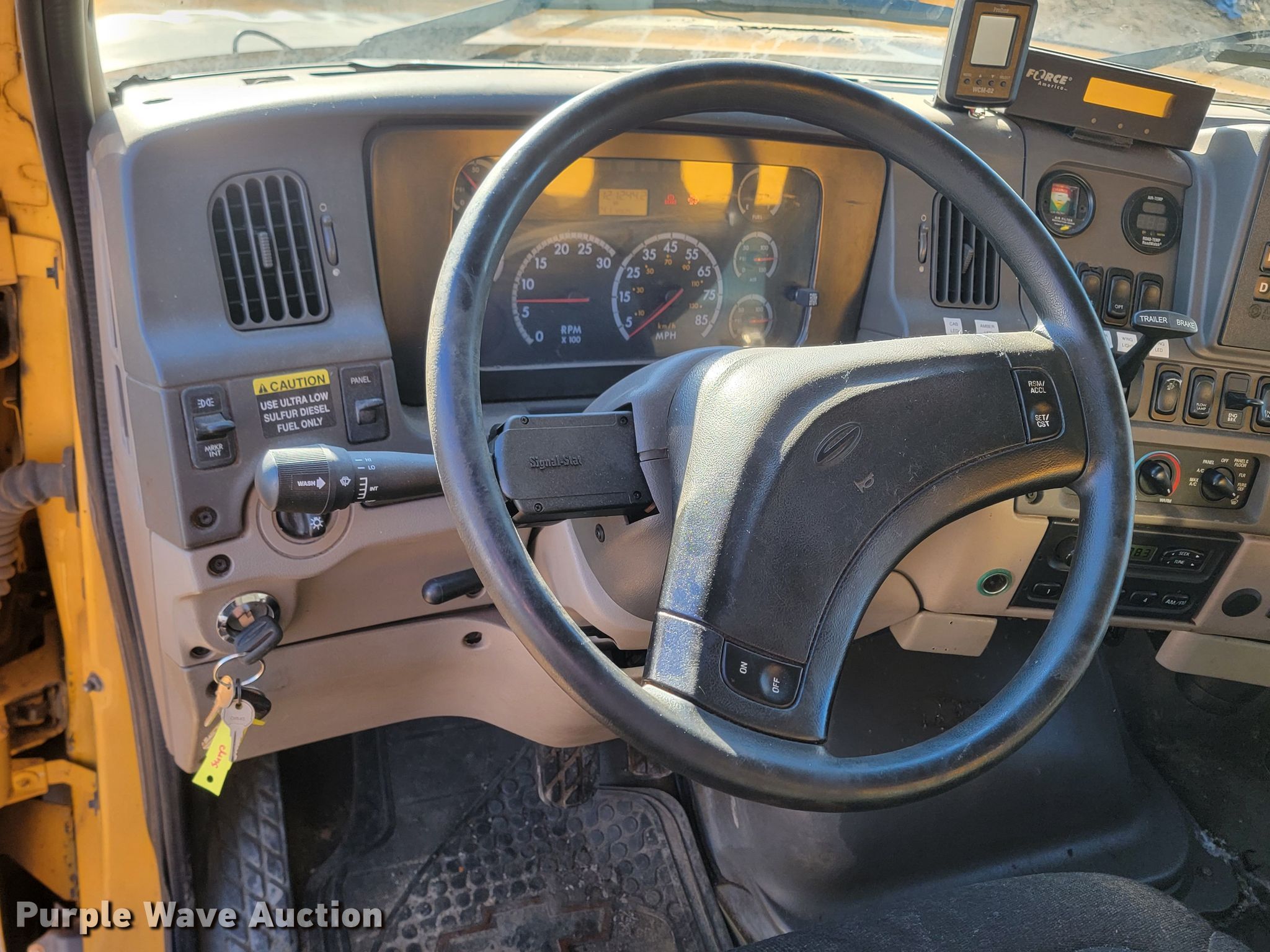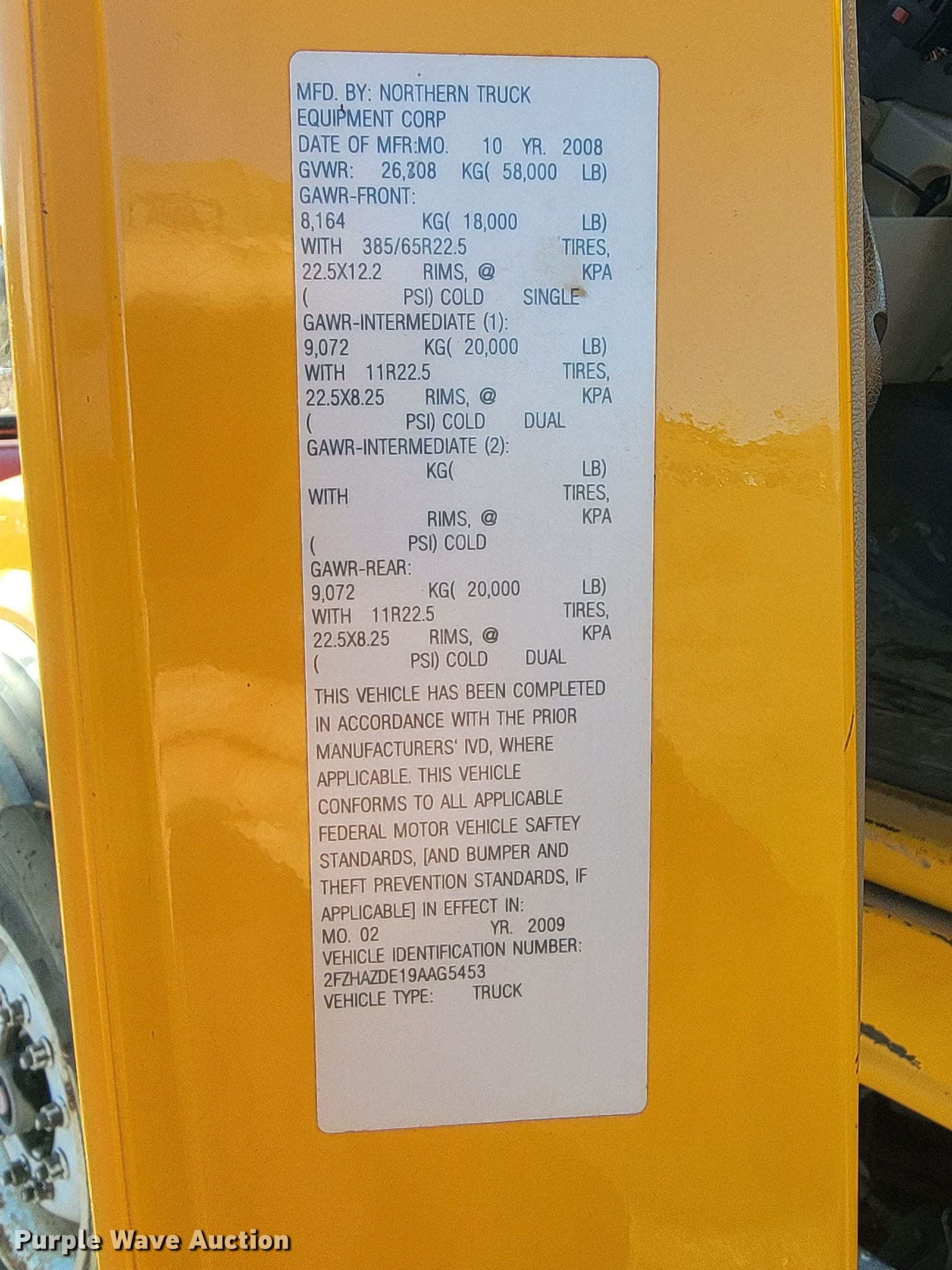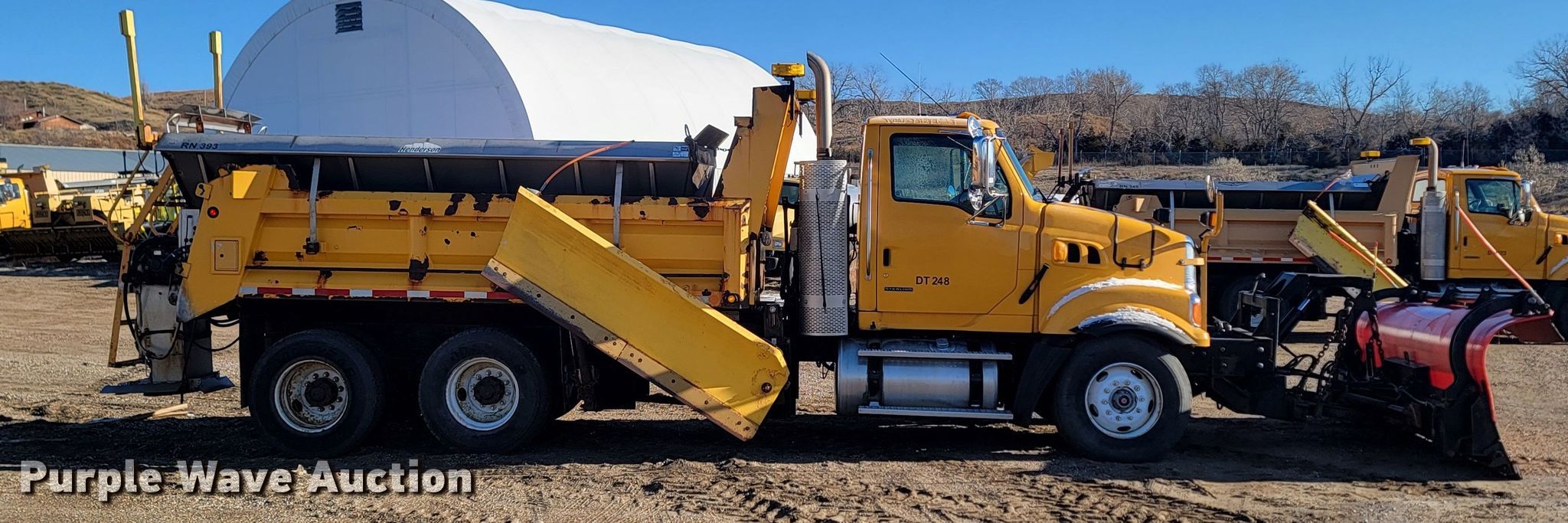 2009 Sterling LT9500 dump truck. Miles: 121,244 on odometer, Hours: 4,501 on meter, VIN: 2FZHAZDE19AAG5453, Unit #: DT248, RD518, RR773,RN393. Engine Caterpillar C13 Acert, Displacement: 12.5L, Cylinders: 6, Fuel type: Diesel, Engine brake. Transmission Automatic. Chassis Double frame, Axles: Tandem, Differential lock: Inter-axle, Suspension: Spring over walking beam, Brakes: Air, Front mount PTO, GVWR: 58,000 lbs FAWR: 18,000 lbs, IAWR: 20,000 lbs, RAWR: 20,000 lbs. Interior AC, Heat, Heated mirrors, Power windows, Cruise control. Features Dump bed 15' L x 96" W, Side height: 32", Bed type: Steel, Ram: Single, End gate: Air operated, Spreader Henderson, Plow Wausau, Width: 144", Wing plow Monroe, Width: 96". Tires Front: 385/75R22.5, Rear: 11R22.5. Notes Dash warning indicator: Brake. South Dakota title. SD DOT. 104 South Garfield Avenue. Pierre, SD 57501