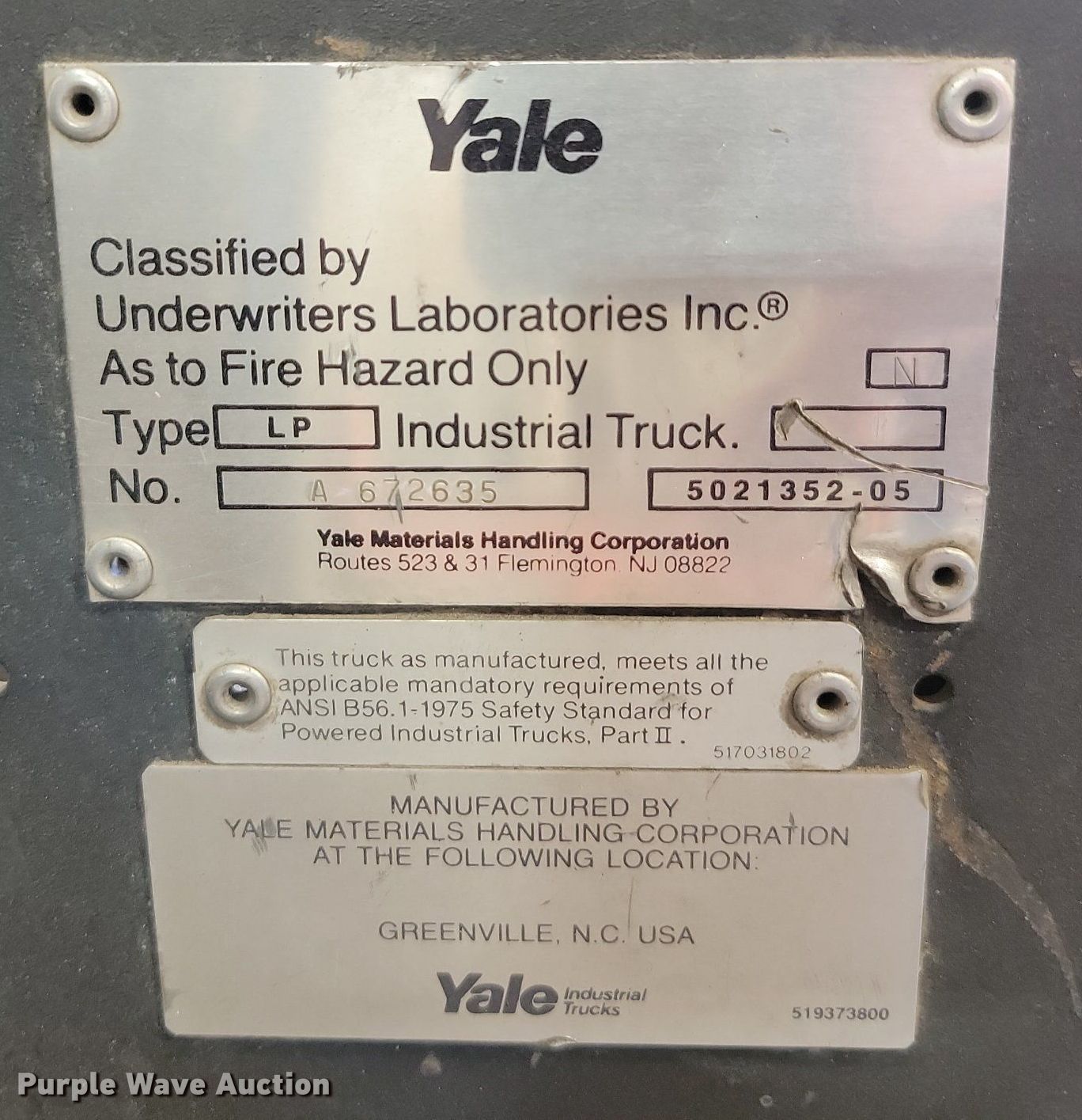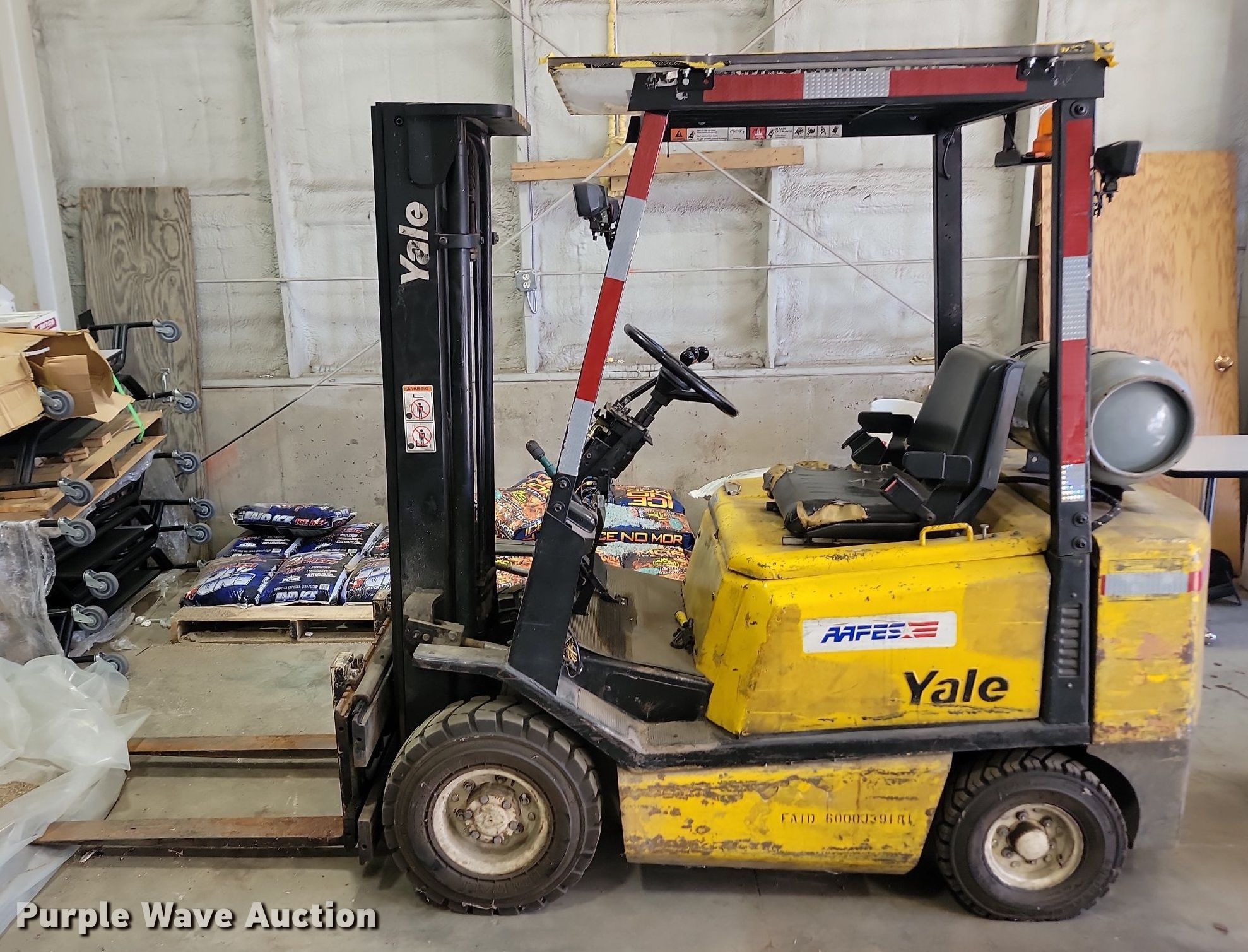 Purple Wave is selling a used Warehouse Forklift in South Dakota. This item is a Yale GLP040AENUAE079 forklift with the following: Hours: 17,062 on meter, Serial: N524094, Unit #: DOC01