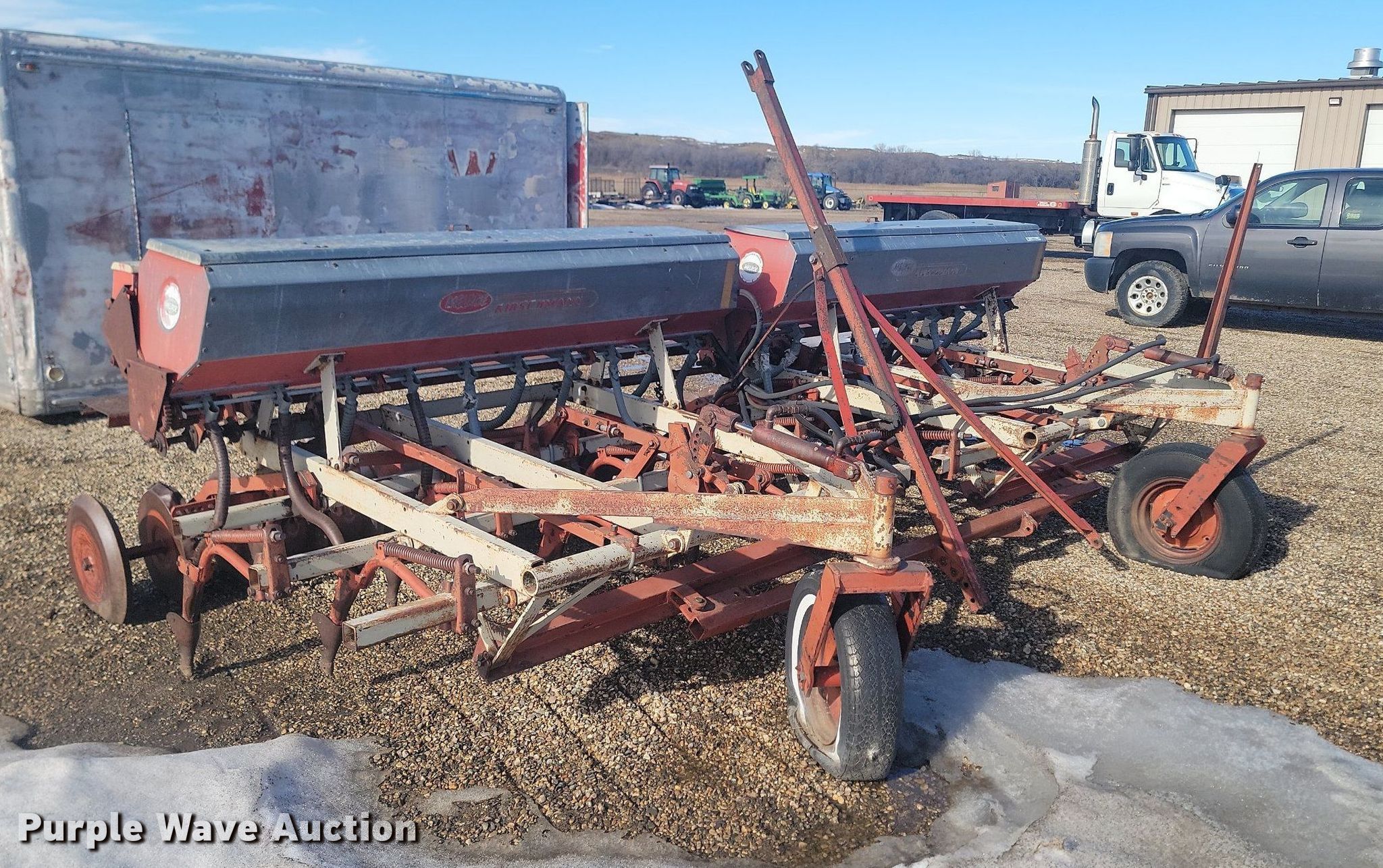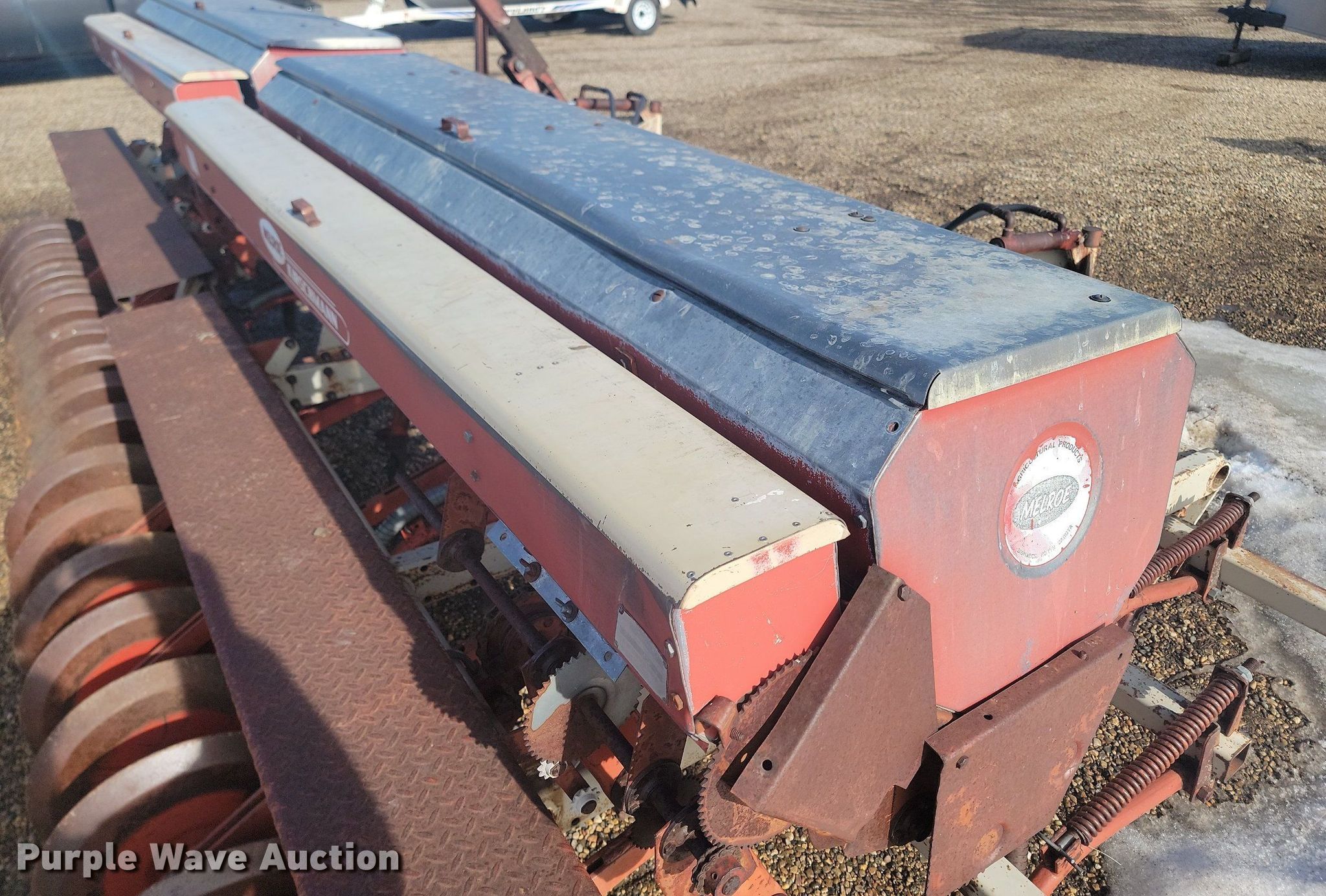 This Melroe Kirschmann grain drill will sell to the highest bidder regardless of price.