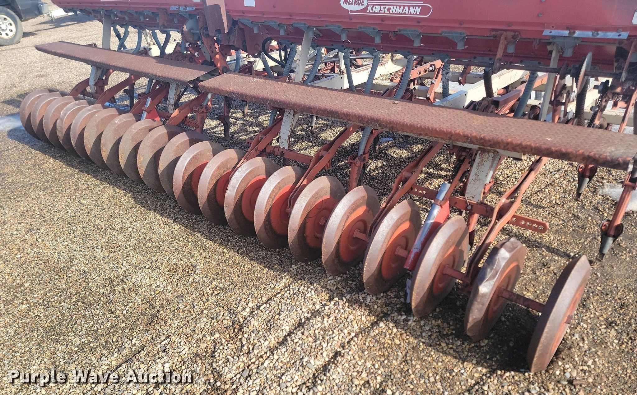 Purple Wave is selling a used Grain Drill or Seeder in South Dakota. This item is a Melroe Kirschmann grain drill with the following: Width: 16', Row units: 20, Row spacing: 10", Serial: 1024, Unit #: GFP01
