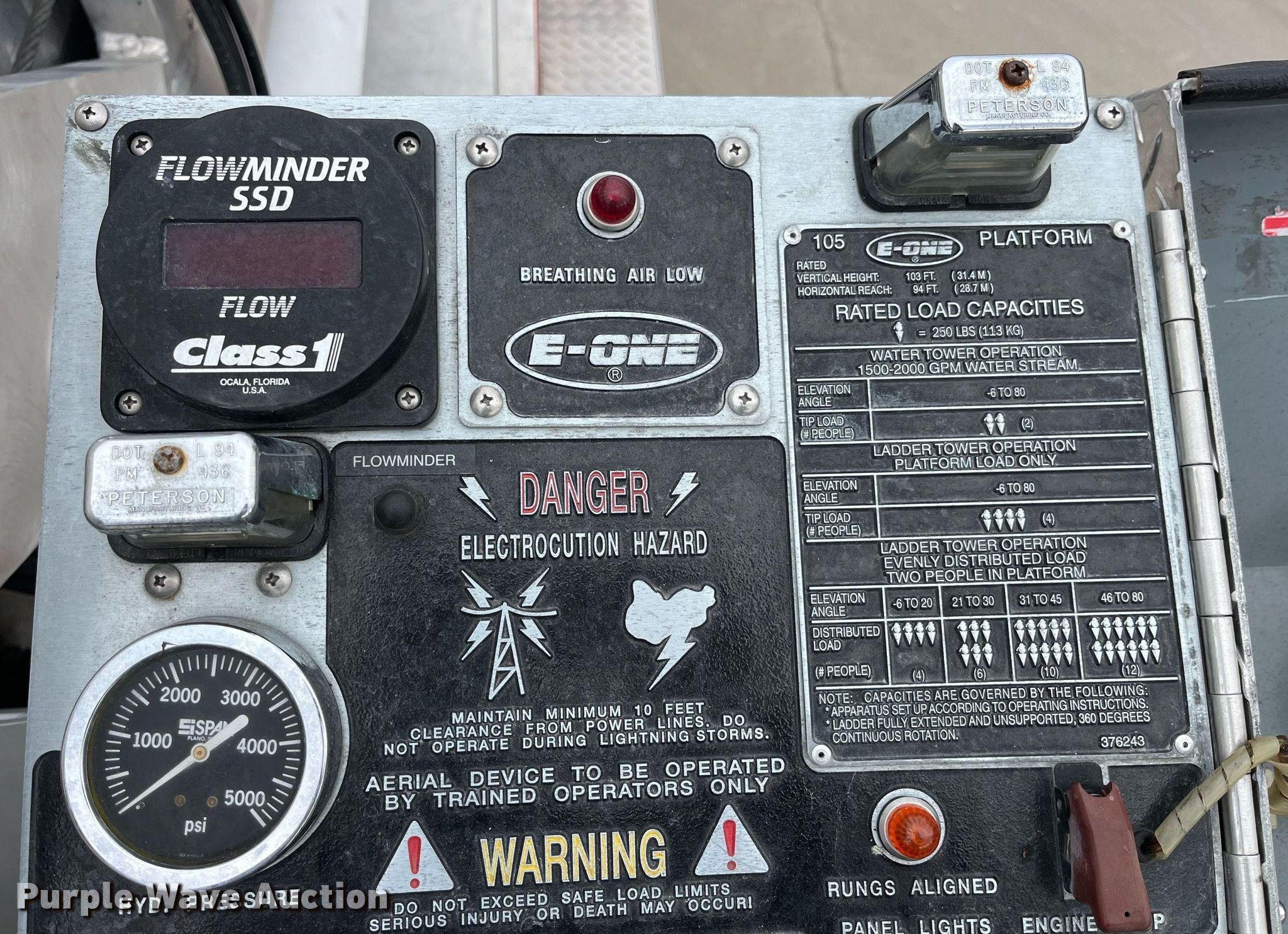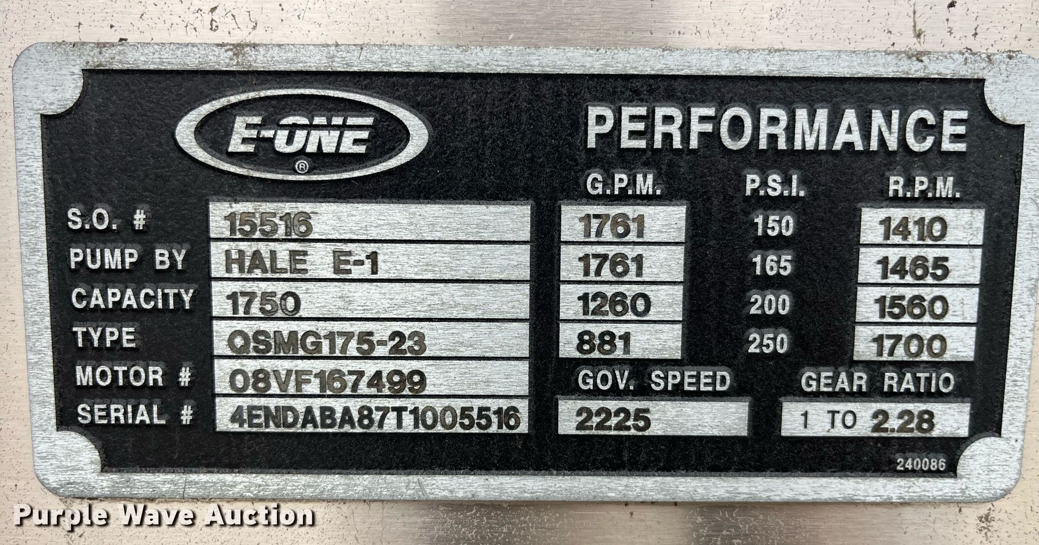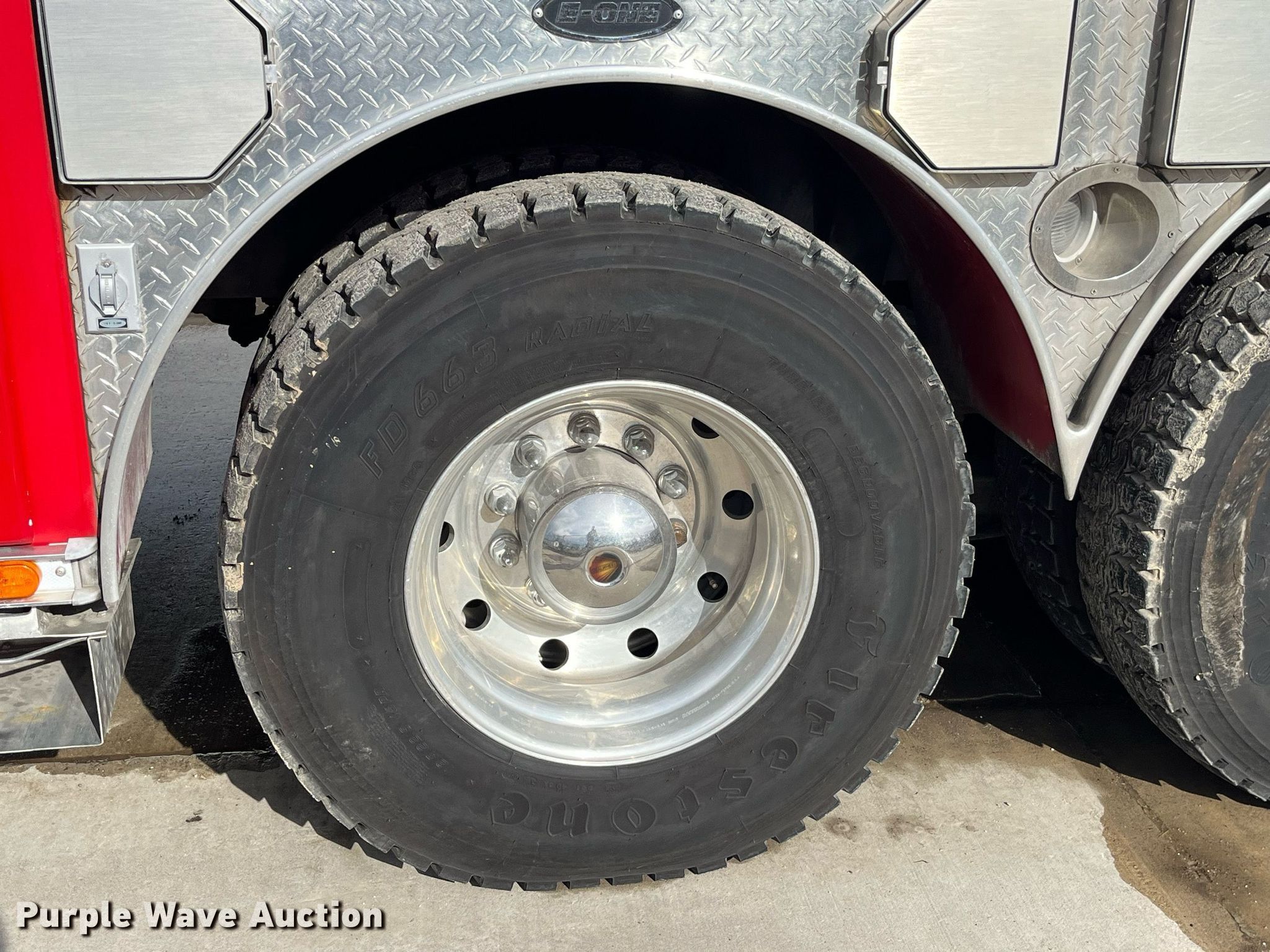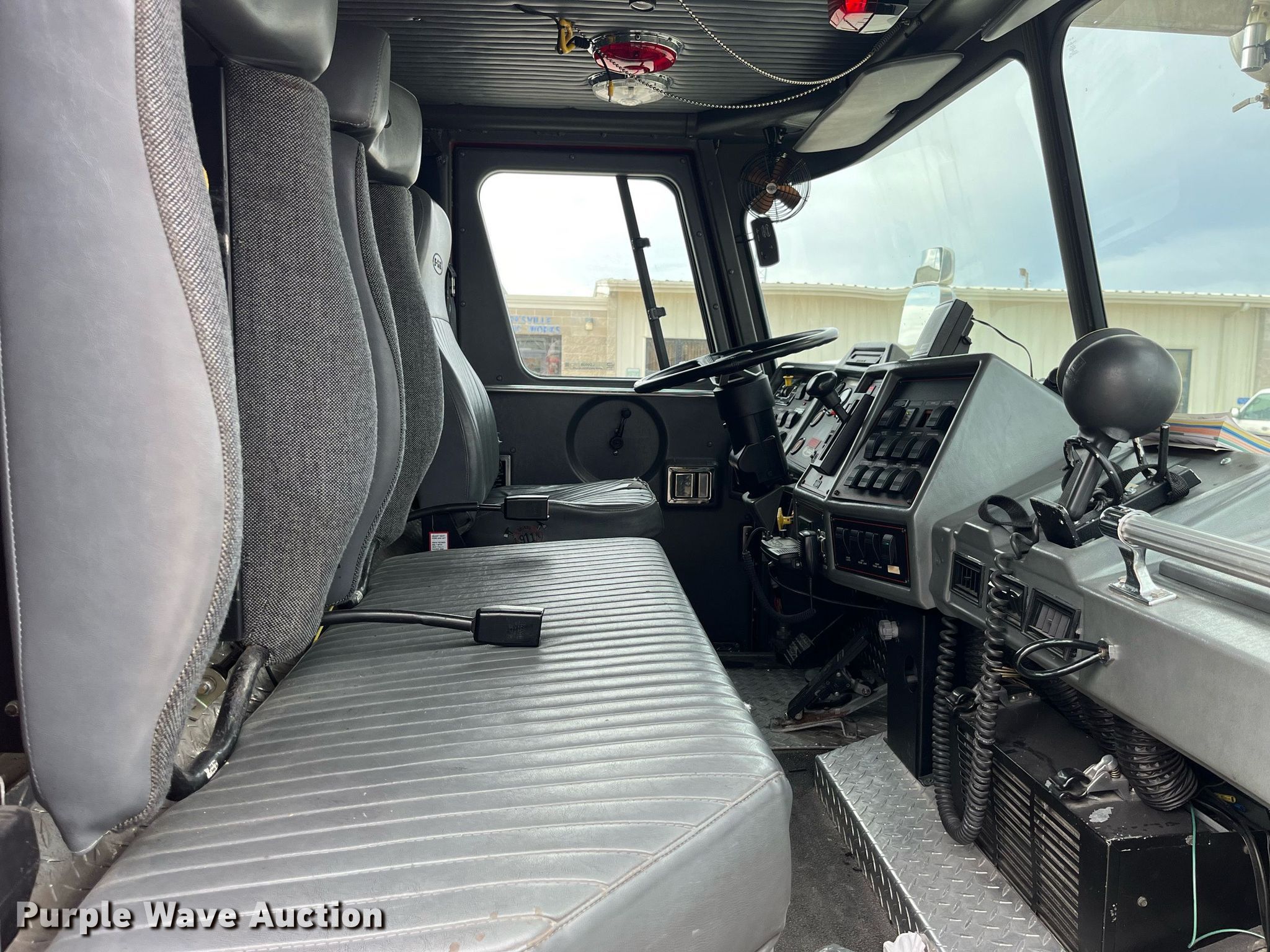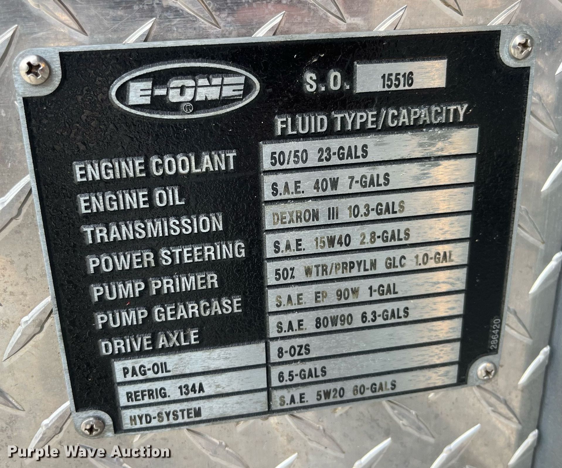 1995 E-One fire truck. Miles: 25,838 on odometer, Hours: 195 on meter Actual hours: Unknown, VIN: 4ENDABA871005516. Engine Displacement: 9.3L, Detroit Diesel, Cylinders: 8, Fuel type: Diesel. Transmission Allison, Automatic. Chassis Axles: Tandem, Suspension: Spring over walking beam, Differential lock: Inter-axle, Brakes: Air, GVWR: 73,000 lbs. Interior AC, Heat, Heated mirrors, Auxiliary controls. Features Fire truck body Aerial E-ONE 105FT, Maximum height: 103', Maximum lift capacity: 250 lbs, Stabilizers Quantity: 6, Elevated deck gun, Pump 1,761 gpm, Ground ladder, Generator, PA/ siren controls, Elevated deck gun GPM: 1500-2000. Tires Front: 425/65R22.5, Rear: 12R22.5. Notes Hour meter replaced, CB radio and speaker not included, Engine issues, oil leak, Non-operational AC, Non-operational window defrost. Missouri title. Seller is a government entity who will be assigning and distributing the title. Please contact the seller for distribution questions. Title distribution may be delayed up to 14 days from verification of funds. City of Kirksville. 2001 N Osteopathy. Kirksville, MO 63501