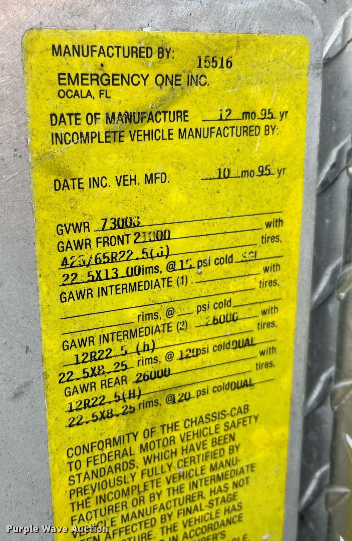 1995 E-One fire truck | Sold! Tuesday March 05 Government Auction