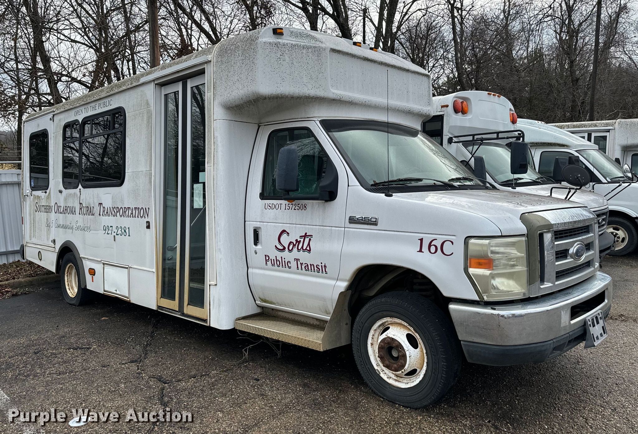 Purple Wave is selling a used Bus in Oklahoma. This item is a 2008 Ford E450 Super Duty shuttle bus with the following: Miles: 209,618 on odometer, VIN: 1FDXE45S18DB05227