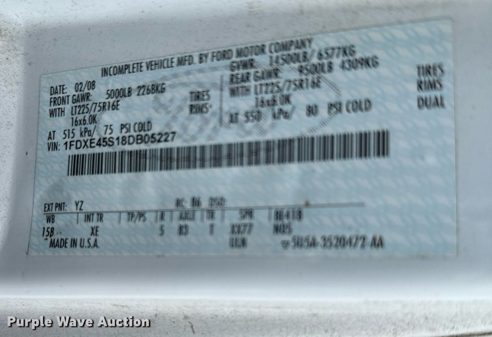 - VIN: 1FDXE45S18DB05227