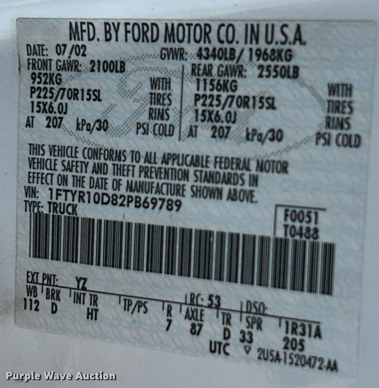 • VIN: 1FTYR10D82PB69789