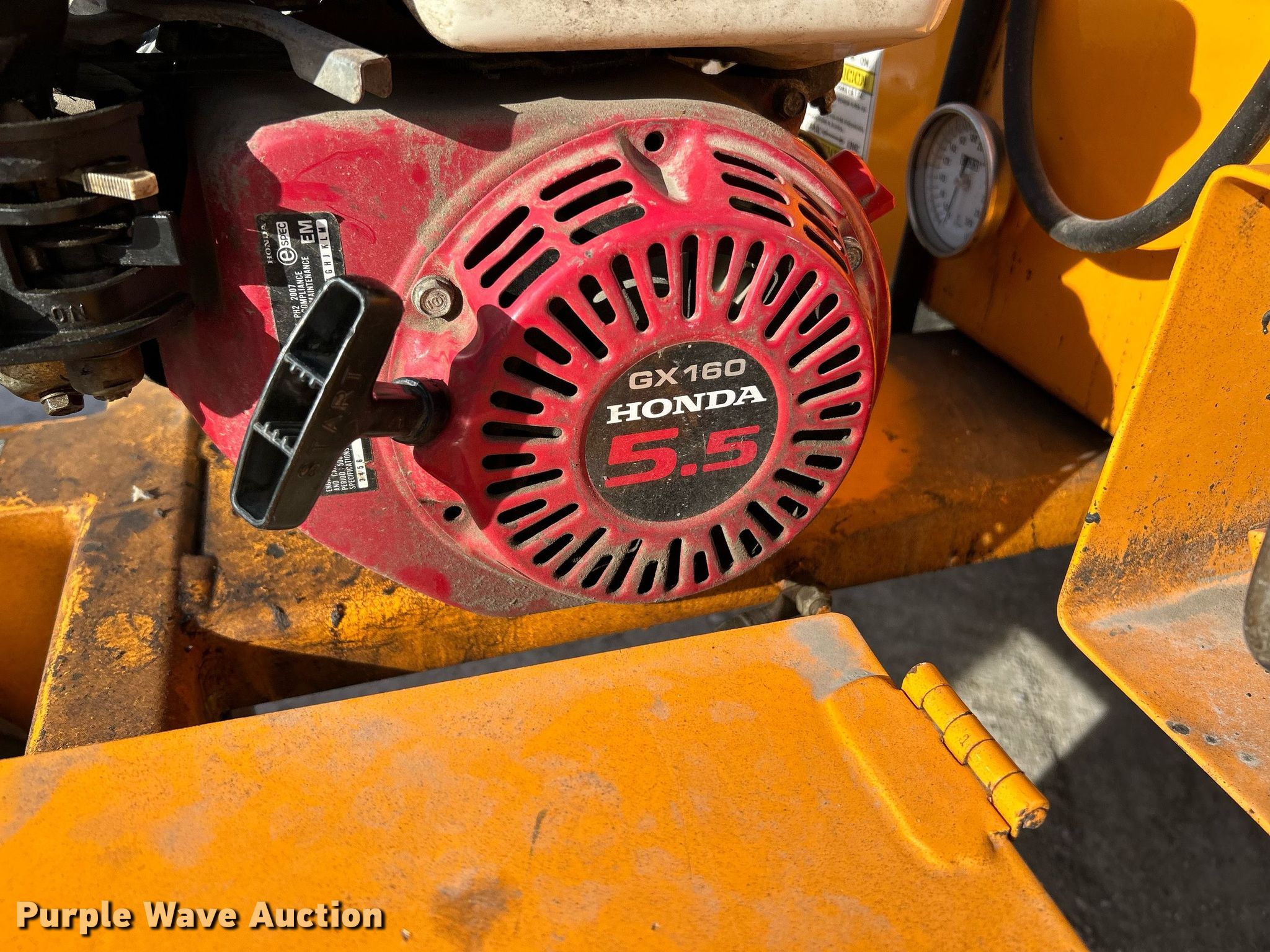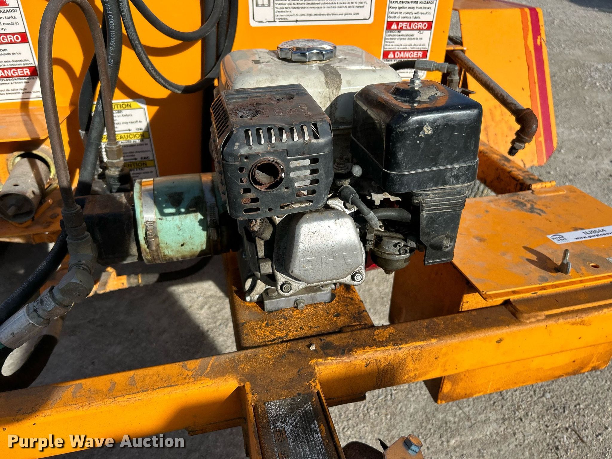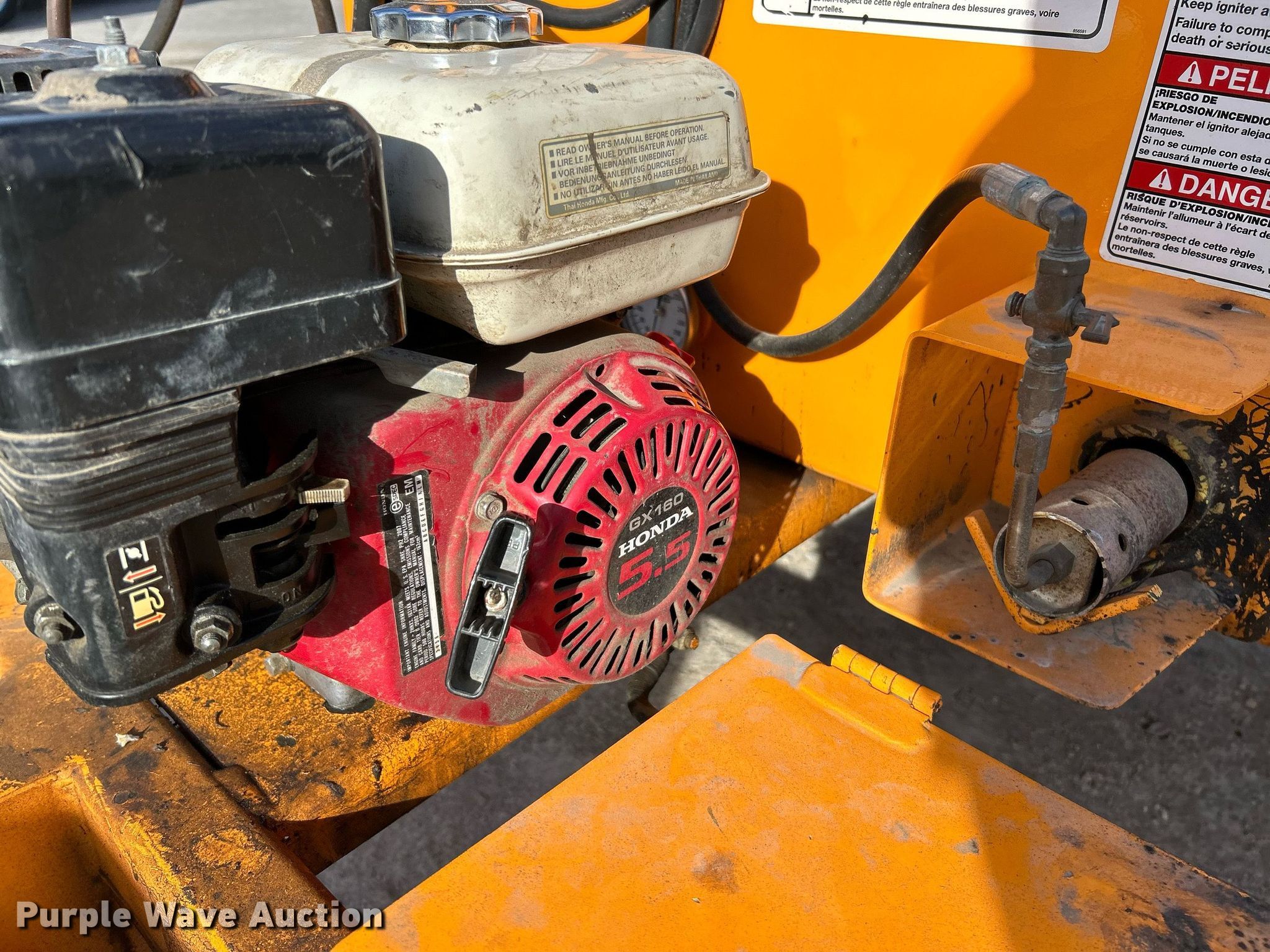 LeeBoy L150 tack distributor. VIN: 1B9DS09123D309402. Dimensions Overall: 11' L x 94" W. Engine Honda GX160, Cylinders: 1, Fuel Type: Gas, HP: 5.5. Features Tank type: Steel Capacity: 150 gallons, Hand Wand, Sprayer Length: 40" each, Nozzle spacing: 20", Heating system Propane burner, Folding spray bar (6) Nozzles, 20" nozzle spacing. Chassis Landing gear: Single, Suspension: Spring, Brakes: Electric. Tires Steel wheels, Size: ST205/75D14. This is worksite support equipment and will not come with a title. Transfer of ownership documentation will be a bill of sale. City of Festus, MO. Festus, MO 63028