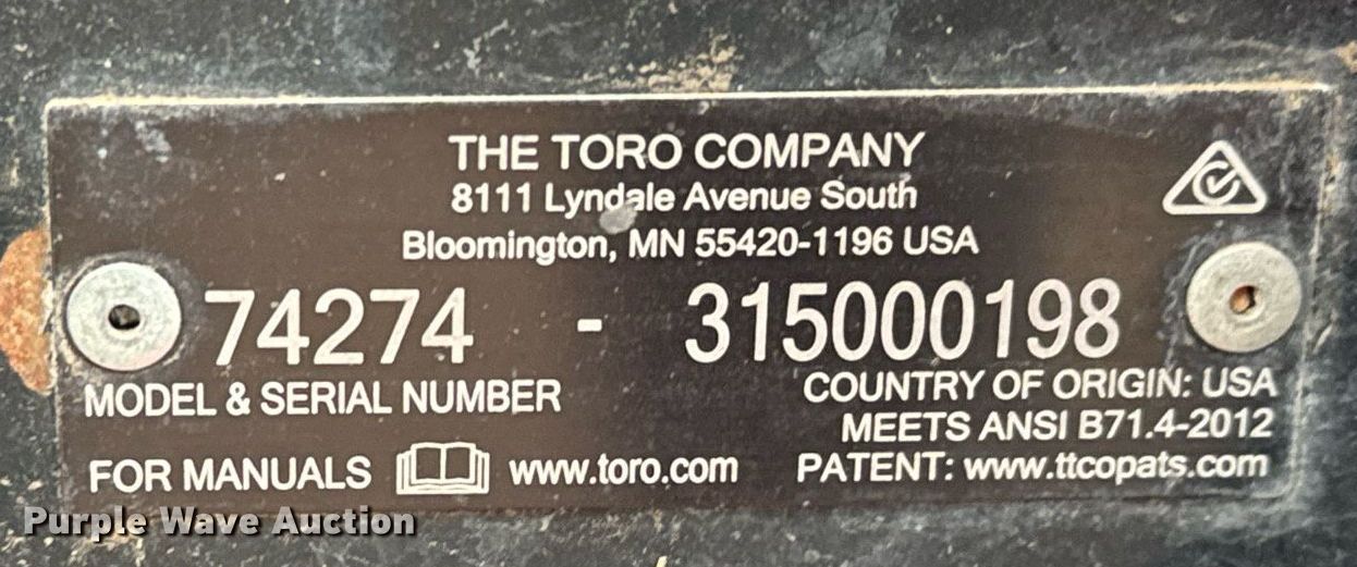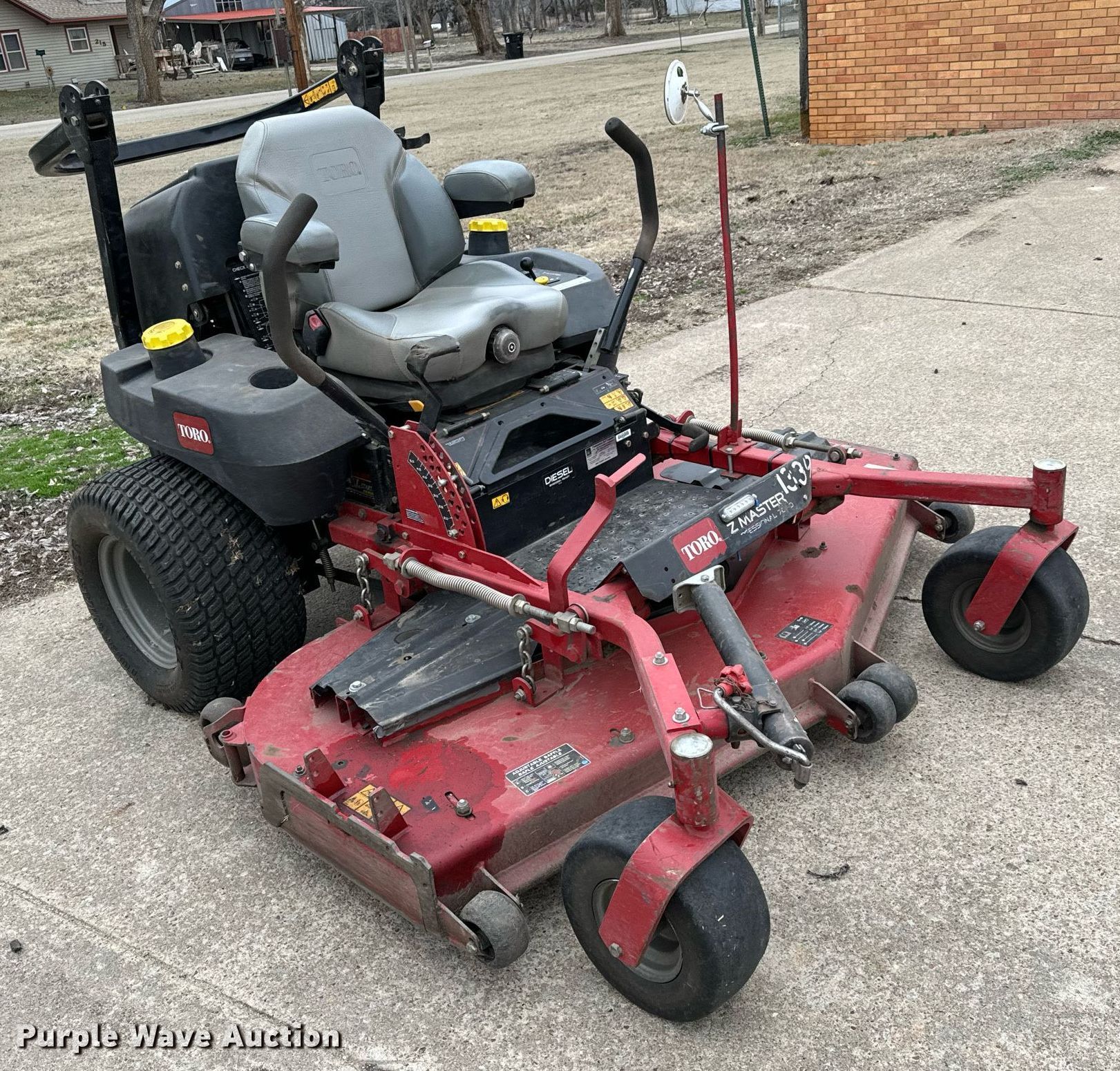 Purple Wave is selling a used Commercial Turf Mower in Kansas. This item is a Toro Z Master 74274 ZTR lawn mower with the following: Hours: 2,047 on meter, Cutting width: 72", Serial: 315000198, Unit #: 1339
