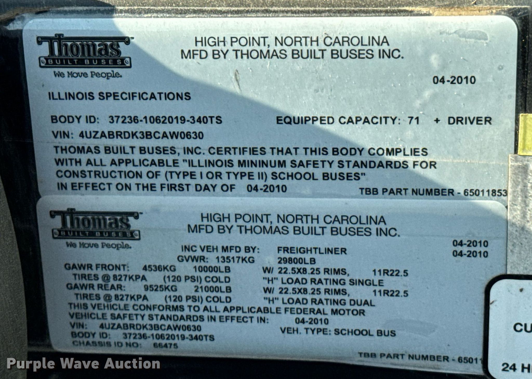 Purple Wave is selling a used Bus in Oklahoma. This item is a 2011 Thomas B2 school bus with the following: Miles: 151,471 on odometer, VIN: 4UZABRDK3BCAW0630