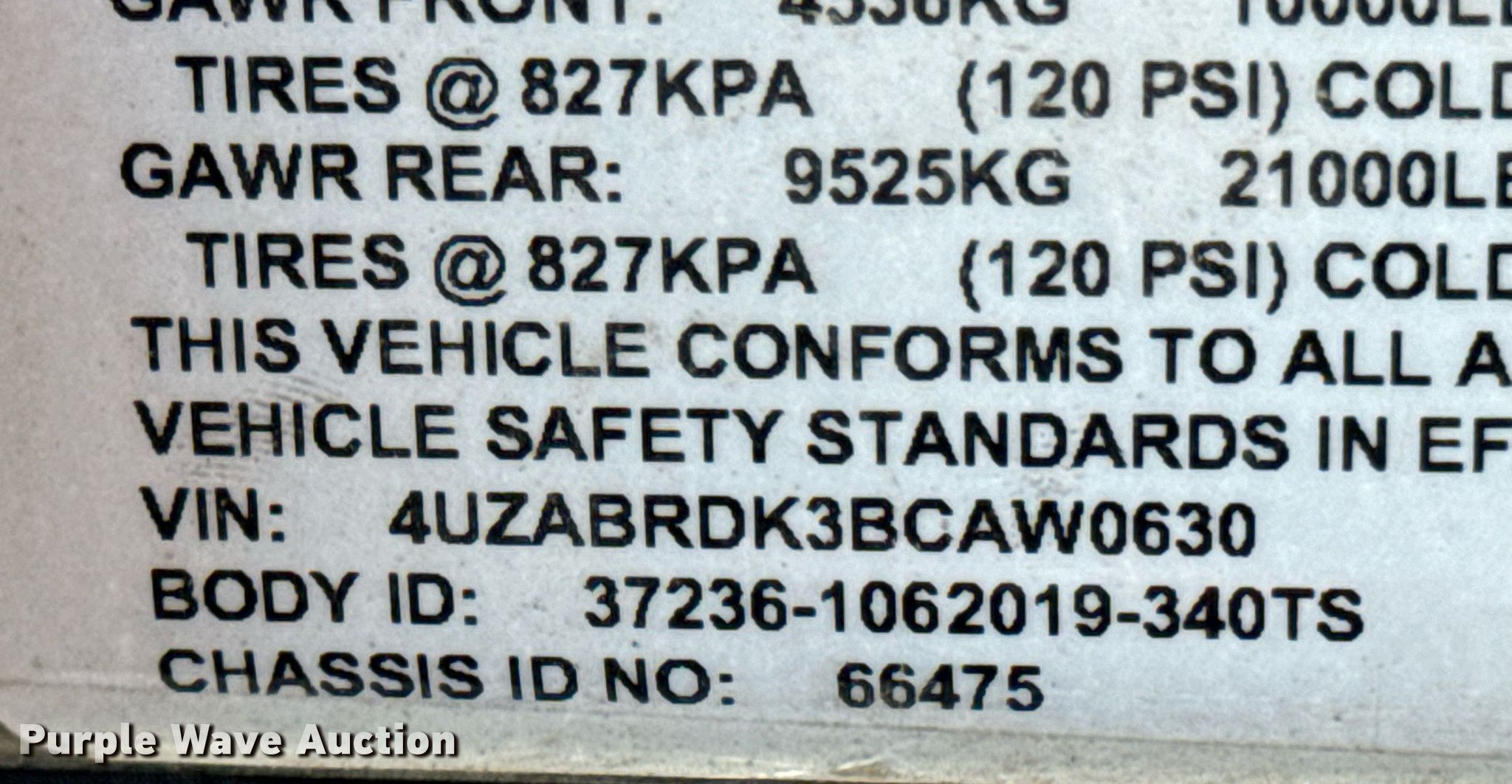 - VIN: 4UZABRDK3BCAW0630