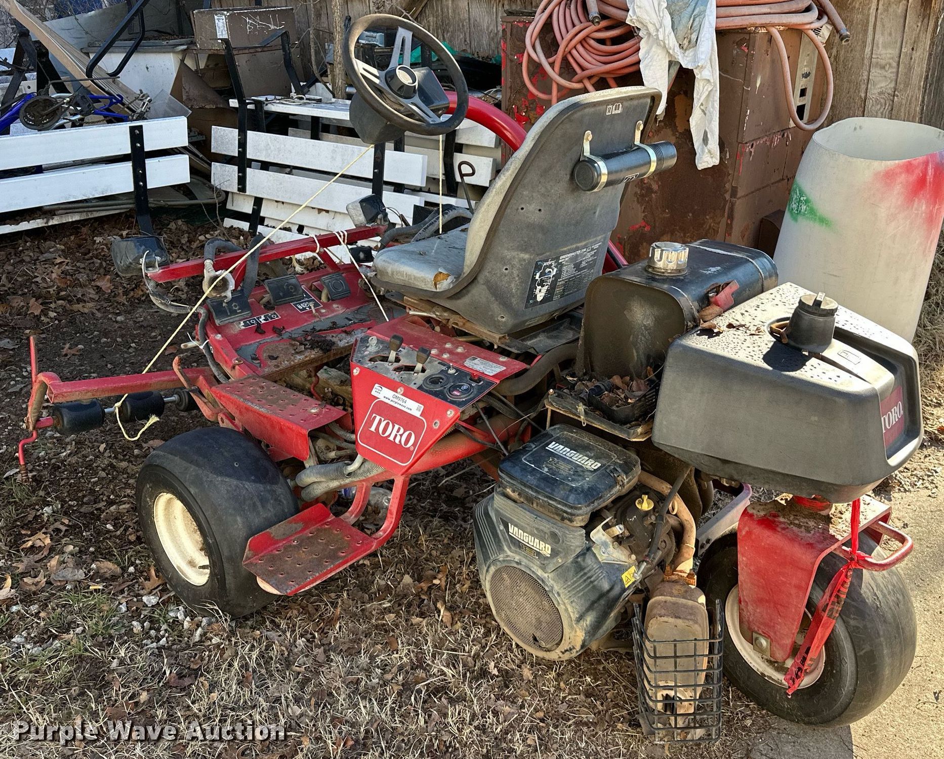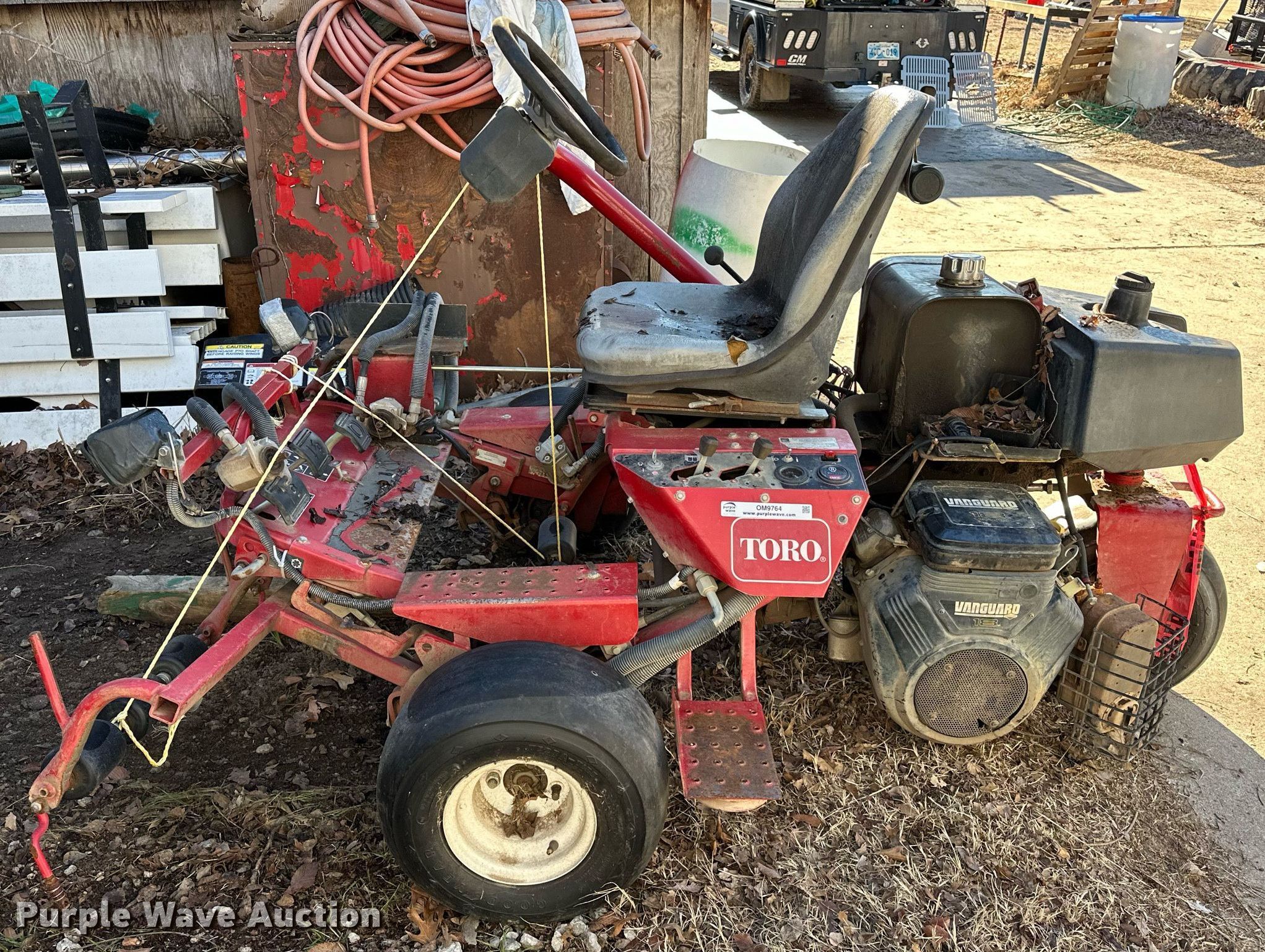Toro GreensMaster 3100 reel mower. Hours: 4,668 on meter, Serial: 04356-28000084. Engine Vanguard V-Twin, Cylinders: 2, Fuel type: Gas, HP: 18. Transmission Hydrostatic. Chassis PTO. Tires Size: 18x9.50-8NHS. Notes No battery, Parts missing, Unknown operating condition of engine, Non-operational unit. Rock Creek Golf Course. 1200 West Dewey Avenue. Sapulpa, OK 74066