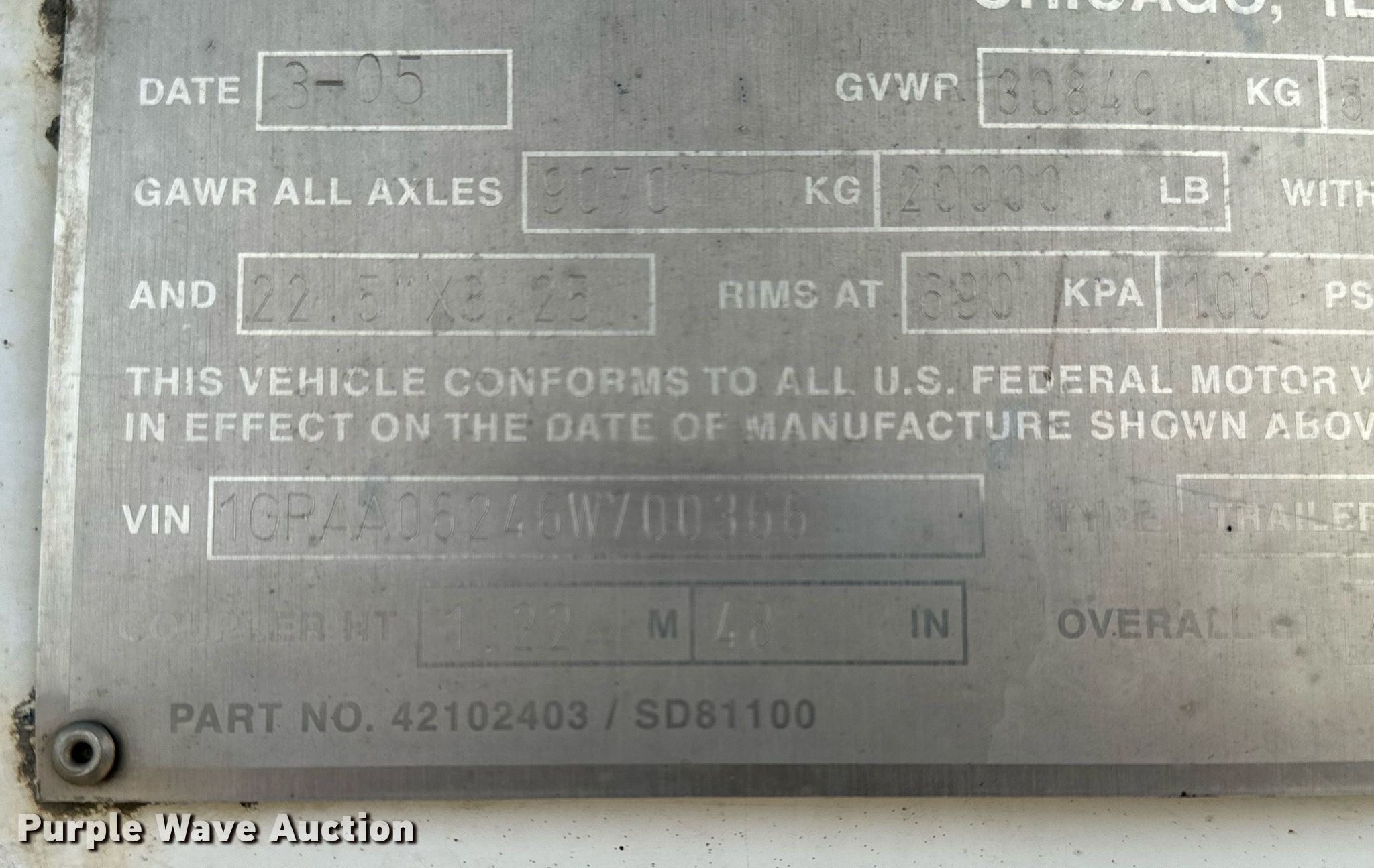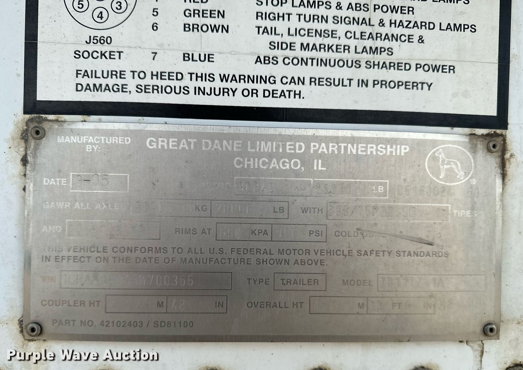 Purple Wave is selling a used Refrigerated Van Trailer in Kansas. This item is a 2006 Great Dane 7811TZ 1A refrigerated van trailer with the following: VIN: 1GRAA06246W700366, Unit #: 5405