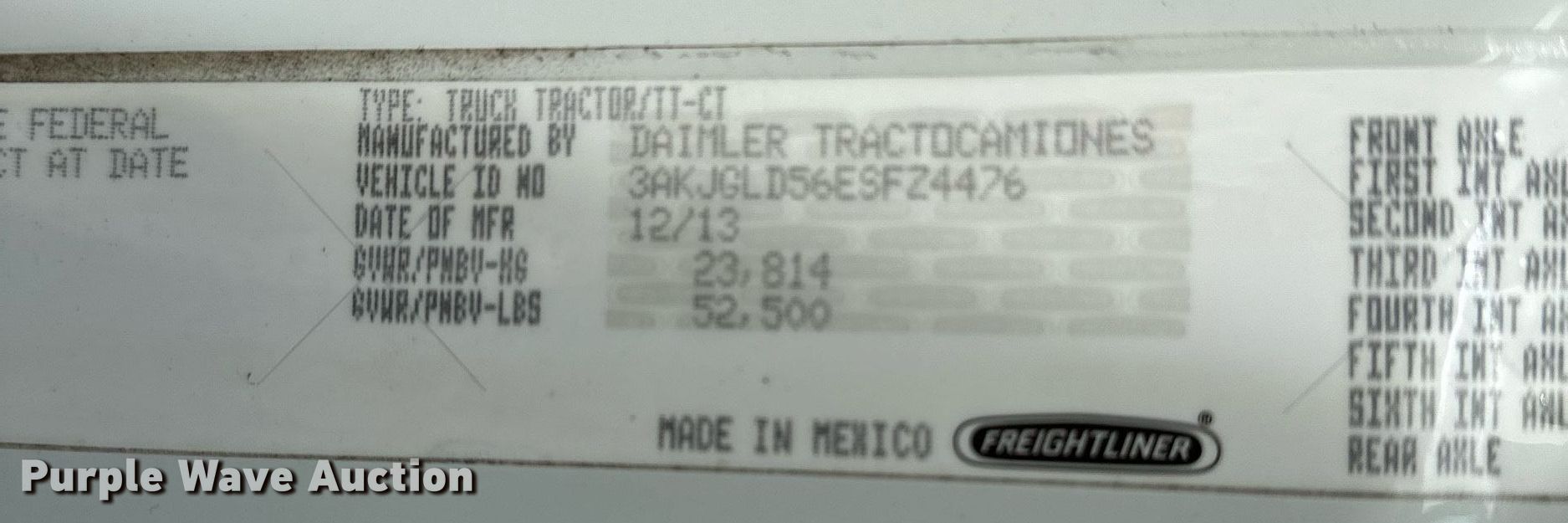 - VIN: 3AKJGLD56ESFZ4476