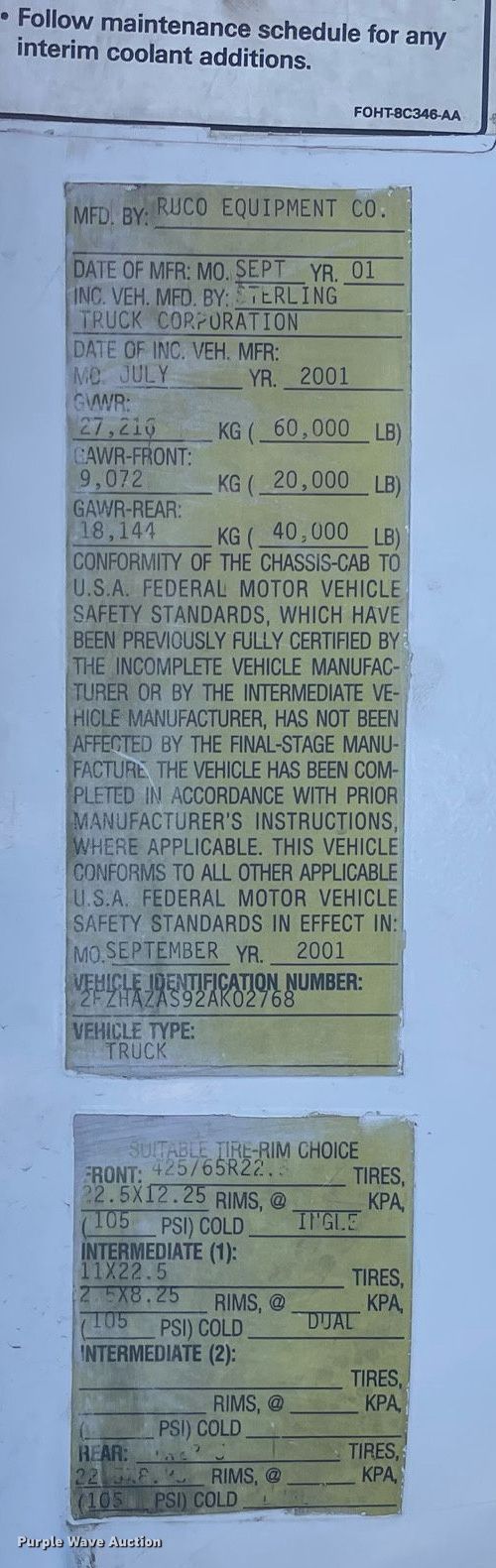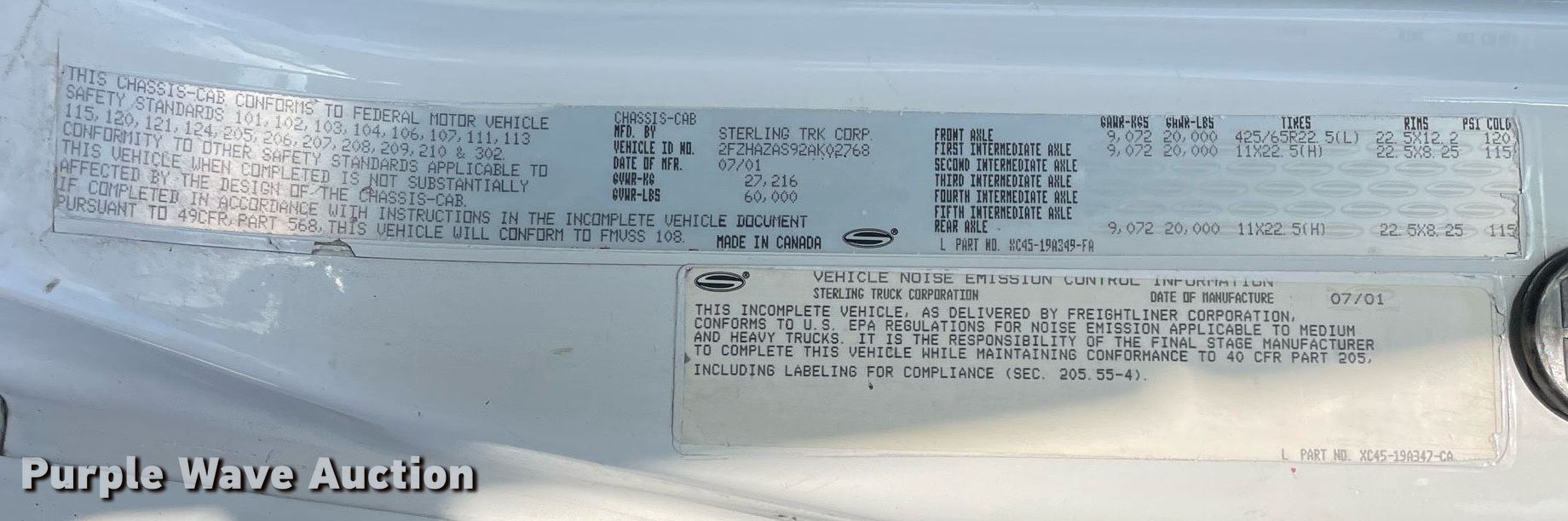 Purple Wave is selling a used Flat Bed Truck in Pennsylvania. This item is a 2002 Sterling L-Line flatbed truck with the following: Miles: 501,729 on odometer, Hours: 17,253 on meter, VIN: 2FZHAZAS92AK02768
