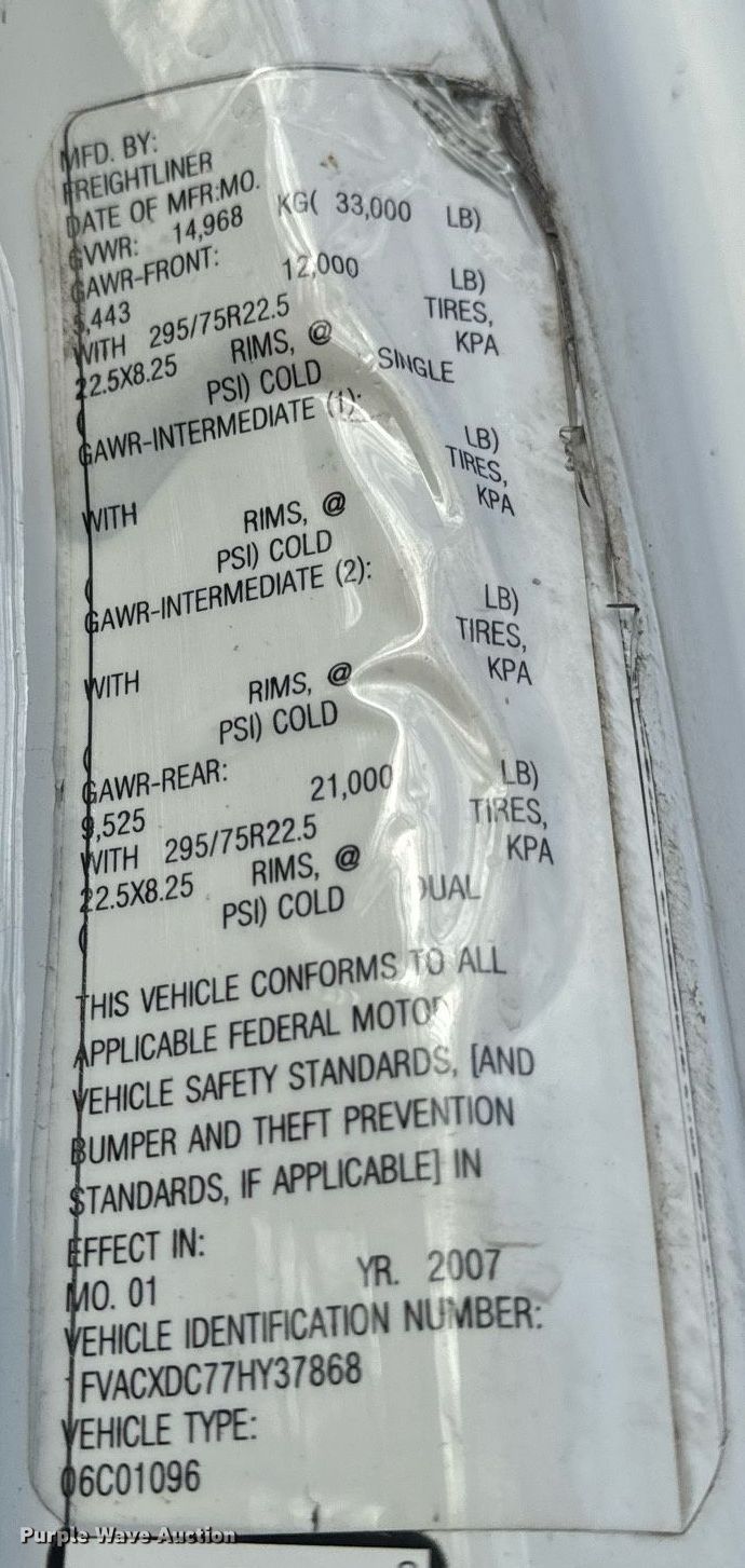 Purple Wave is selling a used Refrigerated Truck in Missouri. This item is a 2007 Freightliner Business Class M2 refrigerated truck with the following: Miles: 203,912 on odometer, Hours: 7,860 on meter, VIN: 1FVACXDC77HY37868
