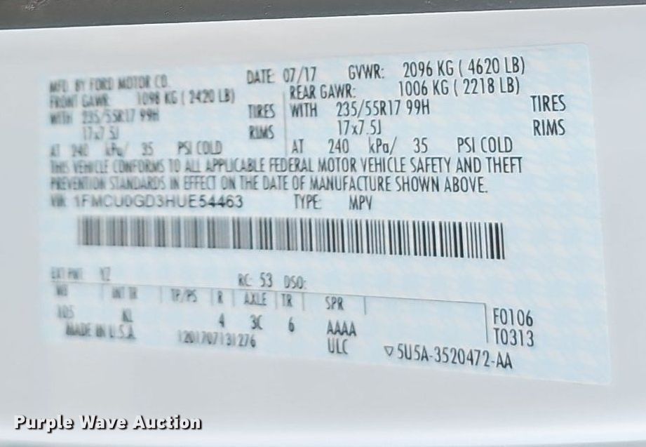 • VIN: 1FMCU0GD3HUE54463