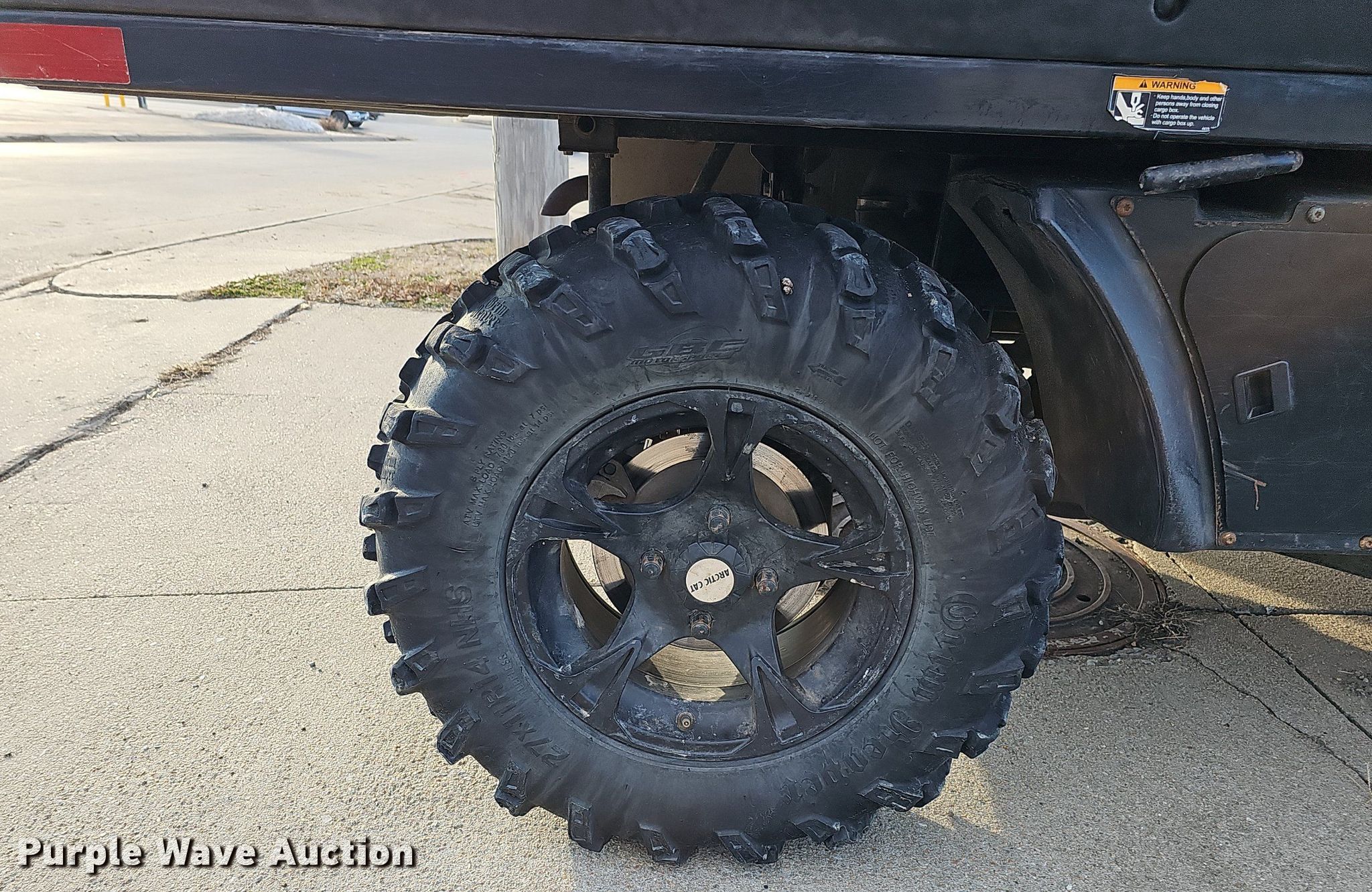 2017 Arctic Cat Crew 700 utility vehicle. Miles: 6,260 on odometer, Hours: 661 on meter, VIN: 4UF17MPV5HT300810. Engine Cylinders: 1, Fuel type: Gas, Electric start. Transmission CVT. Chassis Four wheel drive. Operators station OROPS. Features Dump bed 43" L x 56" W, Dump bed type: Manual. Tires Front: 27x9R14, Rear: 27x11R14, Brand: Grim Reaper. Notes Windshield cracked, Passenger rear gate latch broken. Nebraska title. Title distribution may be delayed up to 14 days from verification of funds. 1200 North 6th Street. Beatrice, NE 68310