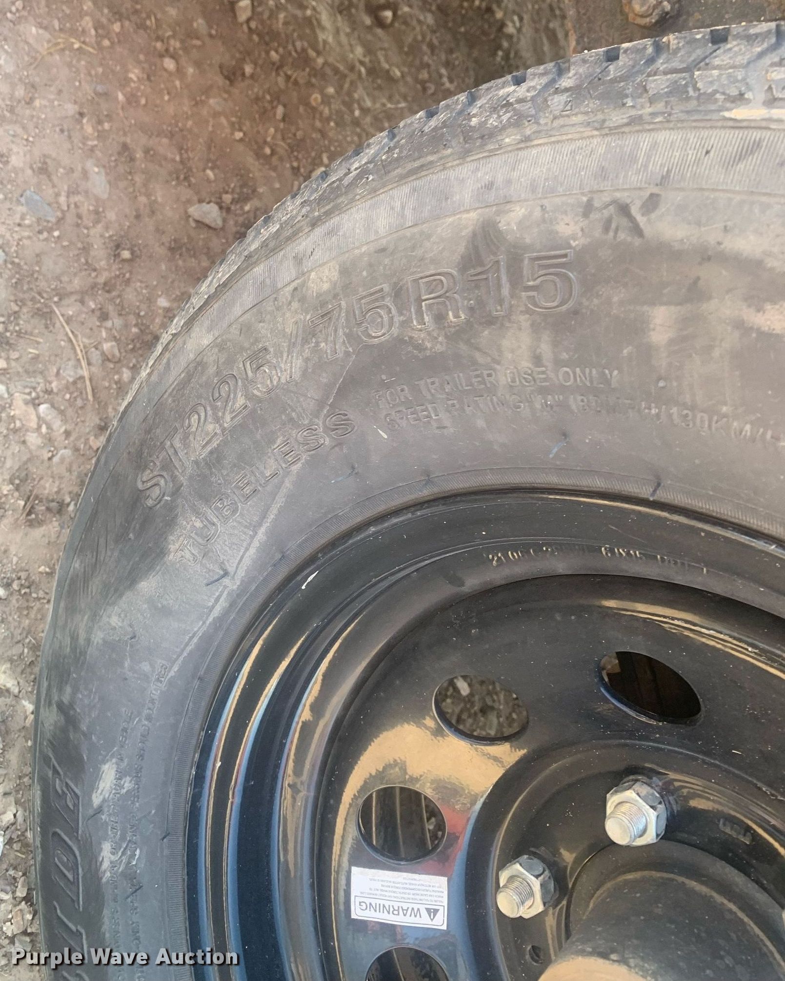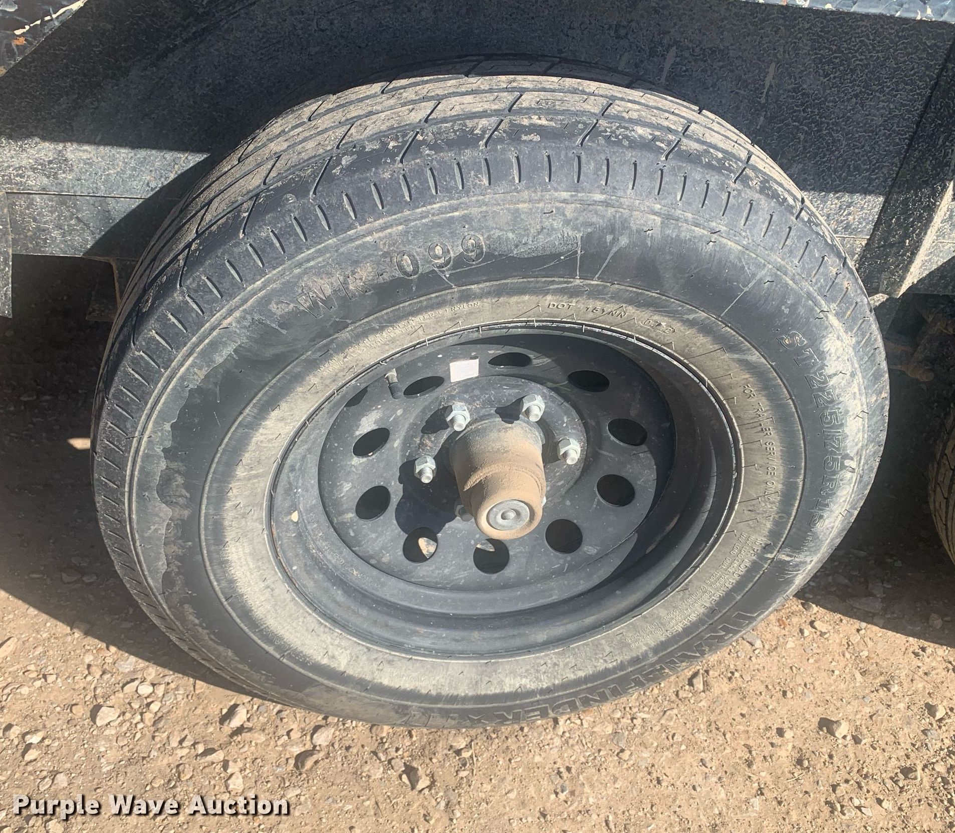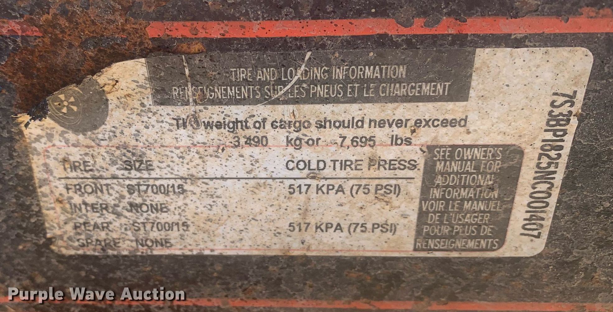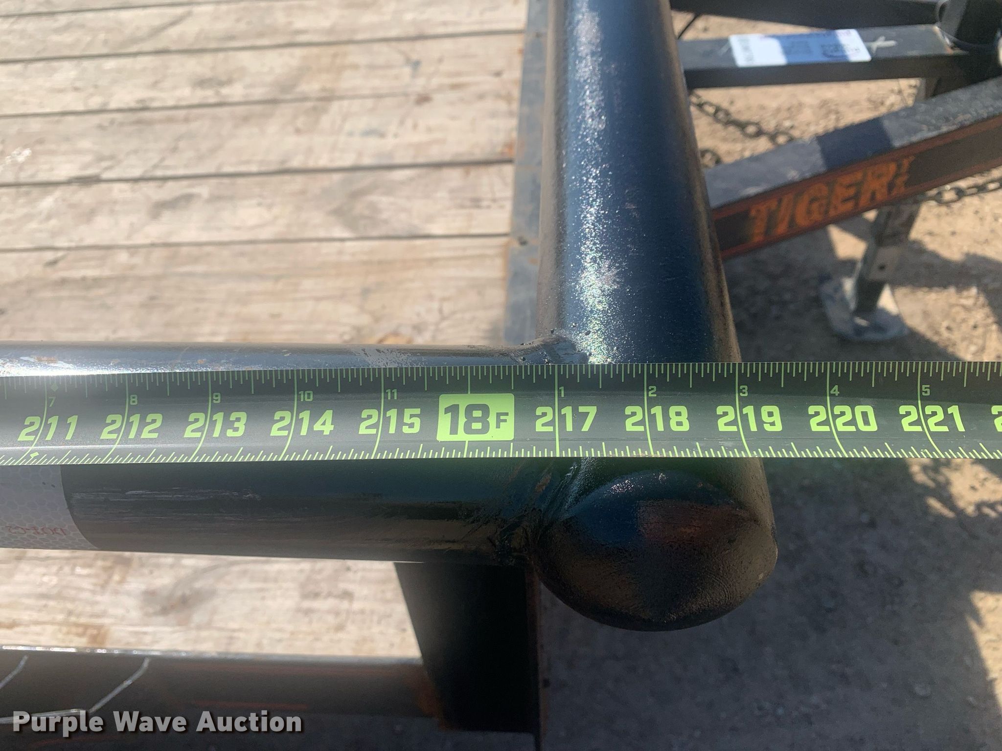 2022 Tiger BPA1825 utility trailer. VIN: 7S3BP1825NC001407. Dimensions Overall: 22' 2" L x 8' 5" W, Deck: 18' 2" L x 7' 5" W, Side height: 12", Deck height: 1' 11", Ramps: Manual Length: 5'. Features Deck type: Wood. Chassis Ball hitch: 2 5/16", Landing gear: Single, Suspension: Spring, Brakes: Electric, Axles: Tandem, GVWR: 9,995 lbs, GAWR: 5,200 lbs. Tires Steel wheels, Size: ST225/75R15. Texas title. Title distribution may be delayed up to 14 days from verification of funds. 16122 Farm to Market 38. Honey Grove, TX 75446