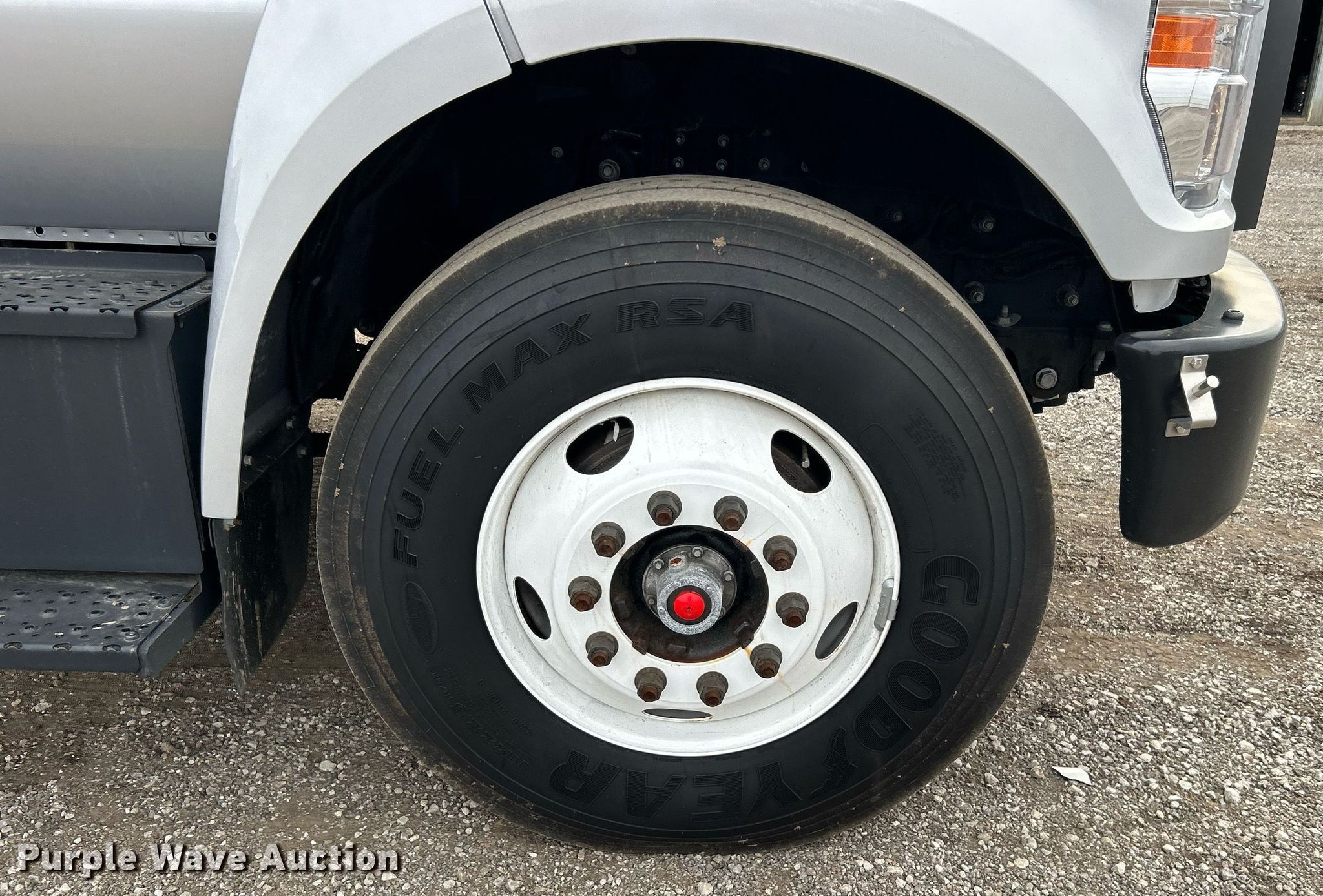 2022 Ford F650 Super Duty truck cab and chassis. Miles: 19,413 on odometer, VIN: 1FDXF6TX1NDF01323. Engine Displacement: 6.7L, Cylinders: 8, Fuel type: Diesel. Transmission Automatic. Chassis Axles: Single, Suspension: Air Dump valves, Brakes: Air, Truck chassis: 10' 4", GVWR: 29,000 lbs FAWR: 10,000 lbs, RAWR: 19,000 lbs, Wheelbase: 158". Interior AC, Heat, Power windows, Power locks, Cruise control. Features Fuel tank: Single, Hitch: Gooseneck. Tires Size: 11R22.5. Oklahoma title. Title distribution may be delayed up to 14 days from verification of funds. 15107 North 137th East Avenue. Collinsville, OK 74021