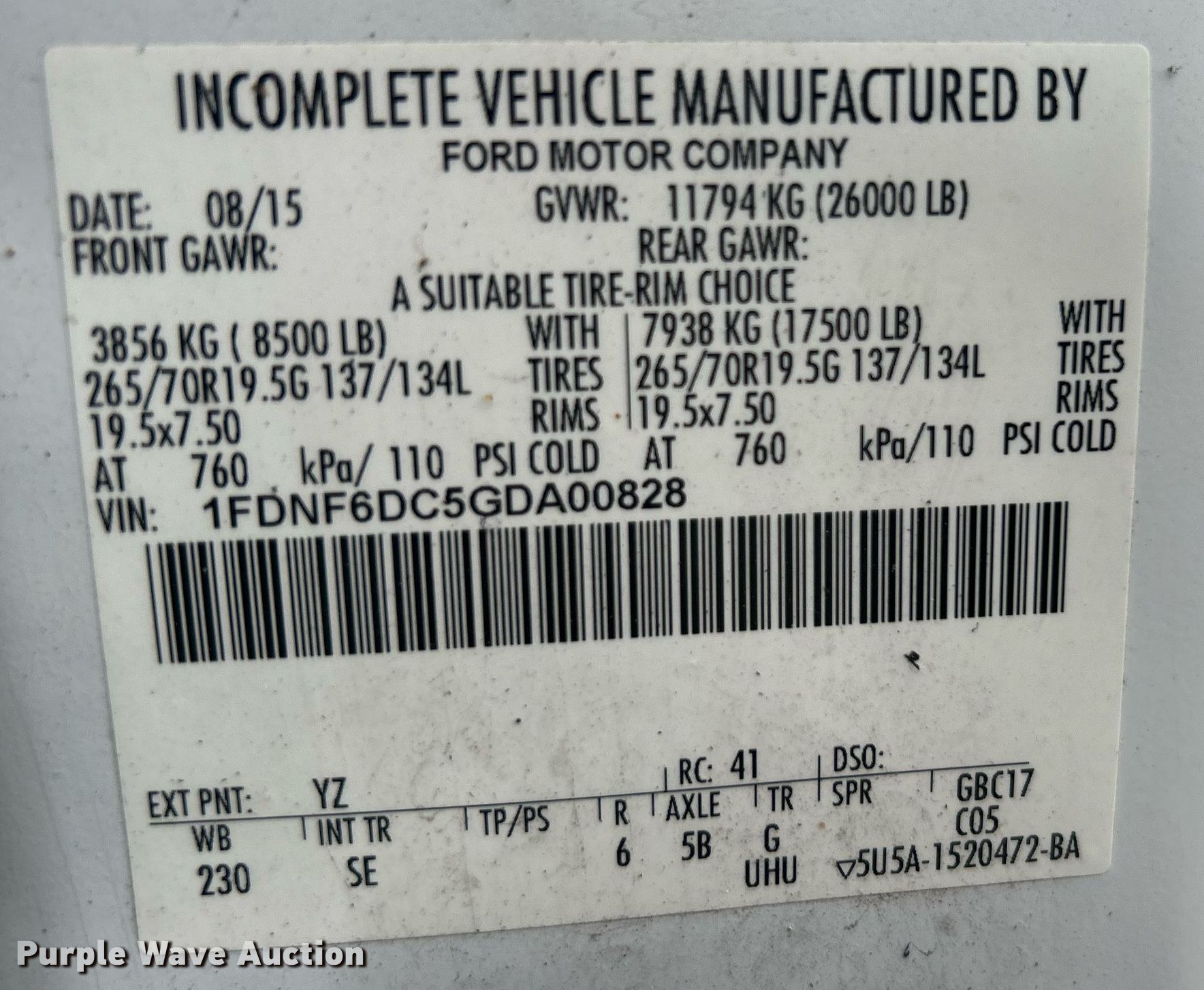 • VIN: 1FDNF6DC5GDA00828