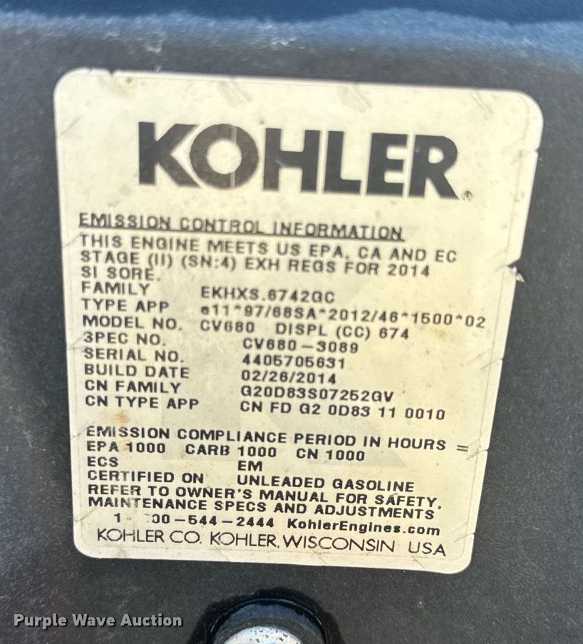Exmark TurfTracer TT23KCC lawn mower. Hours: 1,292 on meter, Cutting width: 60", Serial: 382732. Engine Kohler Command Pro, Cylinders: 2, Fuel type: Gas, 674CC. Transmission Hydrostatic. Chassis PTO. Features Self-propelled. Tires Front: 11X4.00-5, Rear: 18X8.50-8. Notes Dead battery, Parking brake issues, needs adjusted. Quality Cut Lawn Care LLC. 600 Hillsdale Rd. Columbia, MO 65201