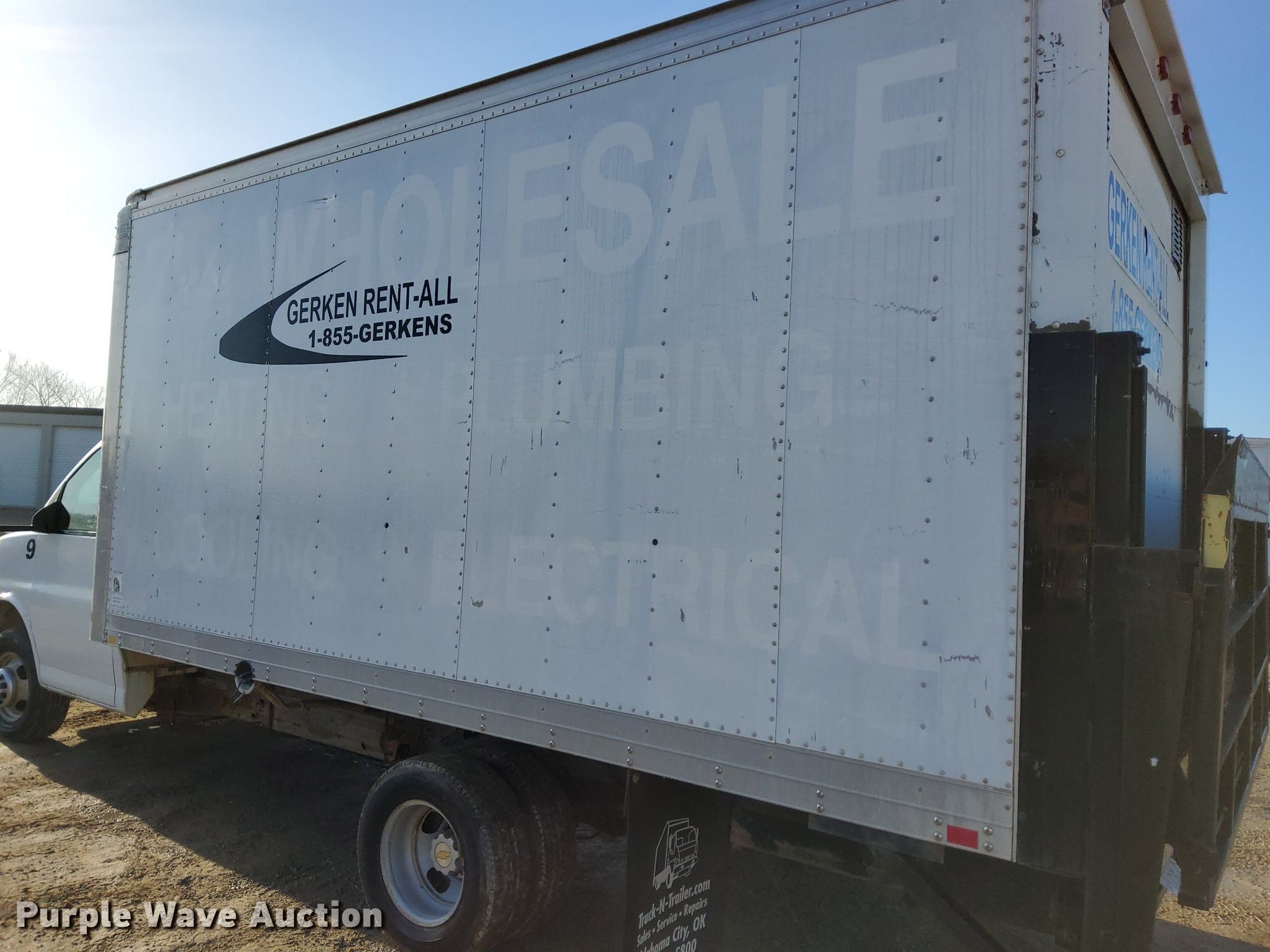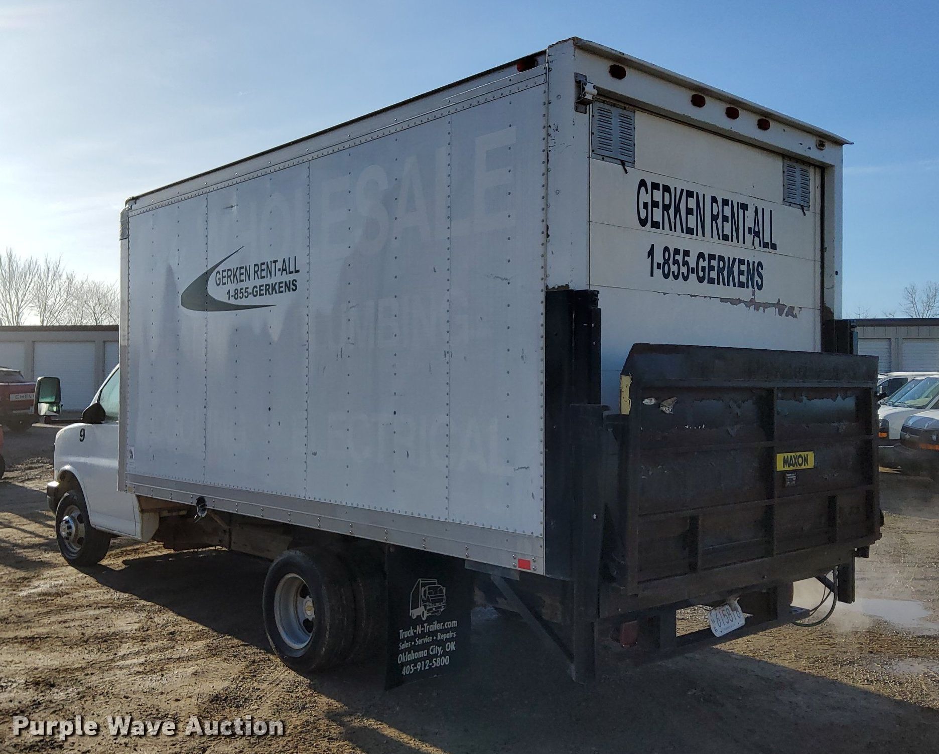 2007 Chevrolet Express 3500 box truck. Miles: 122,476 on odometer, VIN: 1GBJG31U671142669, Unit #: 9. Engine GM Vortec, Displacement: 6.0L, Cylinders: 8, Fuel type: Gas. Transmission Automatic. Chassis Axles: Single, Suspension: Spring, Brakes: Hydraulic, GVWR: 12,000 lbs. Interior AC, Heat. Features Box bed Morgan PVSD08515096, 15' L x 95" W x 86" H, Floor: Wood, End gate lift Maxon RCM-16, Capacity: 1,600 lbs.. Tires Size: 225/75R16. Kansas title. Gerken Rent-All. 31600 Old Kc Rd. Paola, KS 66071