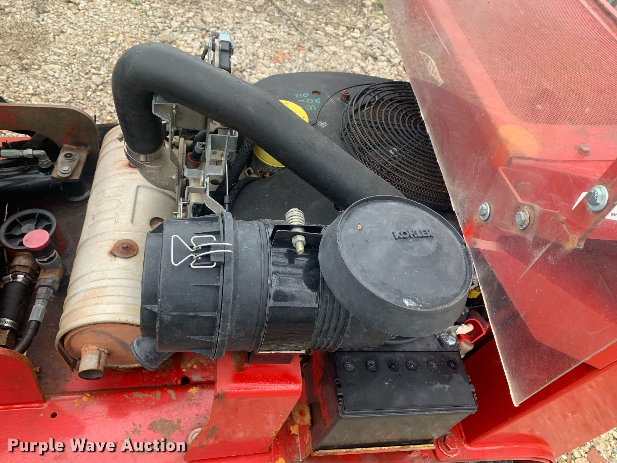 2014 Toro STX-38 stump grinder. Hours: 746 on meter, Serial: 1493140002. Engine Kohler ECV980, Serial: 4407804501, Displacement: 999 cc, Cylinders: 2, Fuel type: Gas. Transmission Hydrostatic. Features Cutting head diameter: 18" Bolt-on teeth. Tracks Width: 6", Rubber. Notes Teeth missing. 1800 Alsdorf Road. Ennis, TX 75119