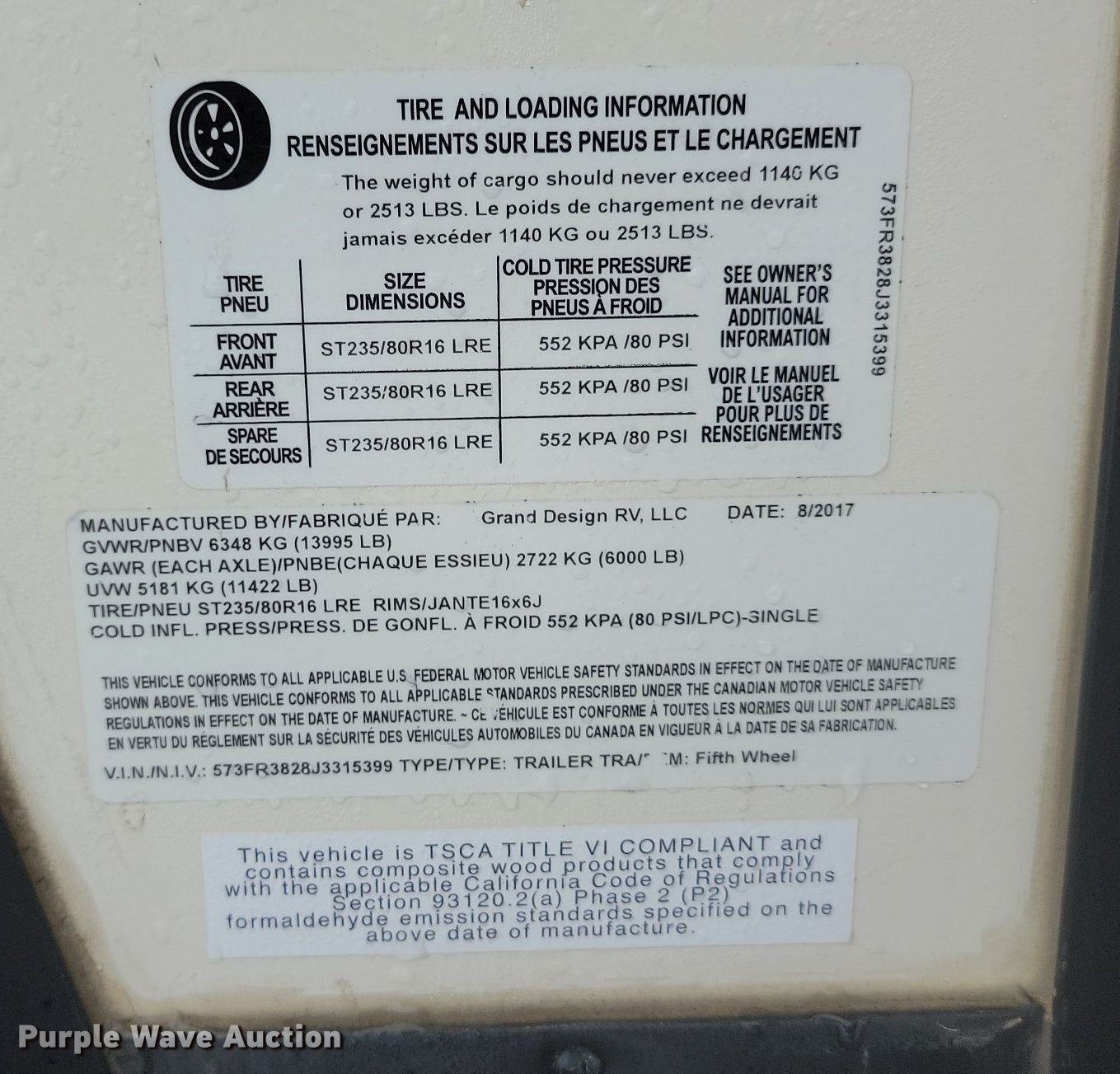 - VIN: 573FR3828J3315399