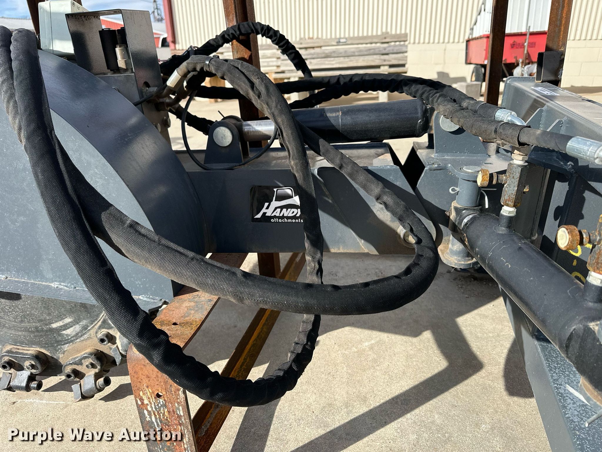 Handy HSSG24X skid steer stump grinder. Serial: SG220810364, Overall: 66" L x 45" W, Blade Diameter: 24", Operating weight: 606 lbs. TRI-CO. 100 South Ottawa Street. Minneapolis, KS 67467