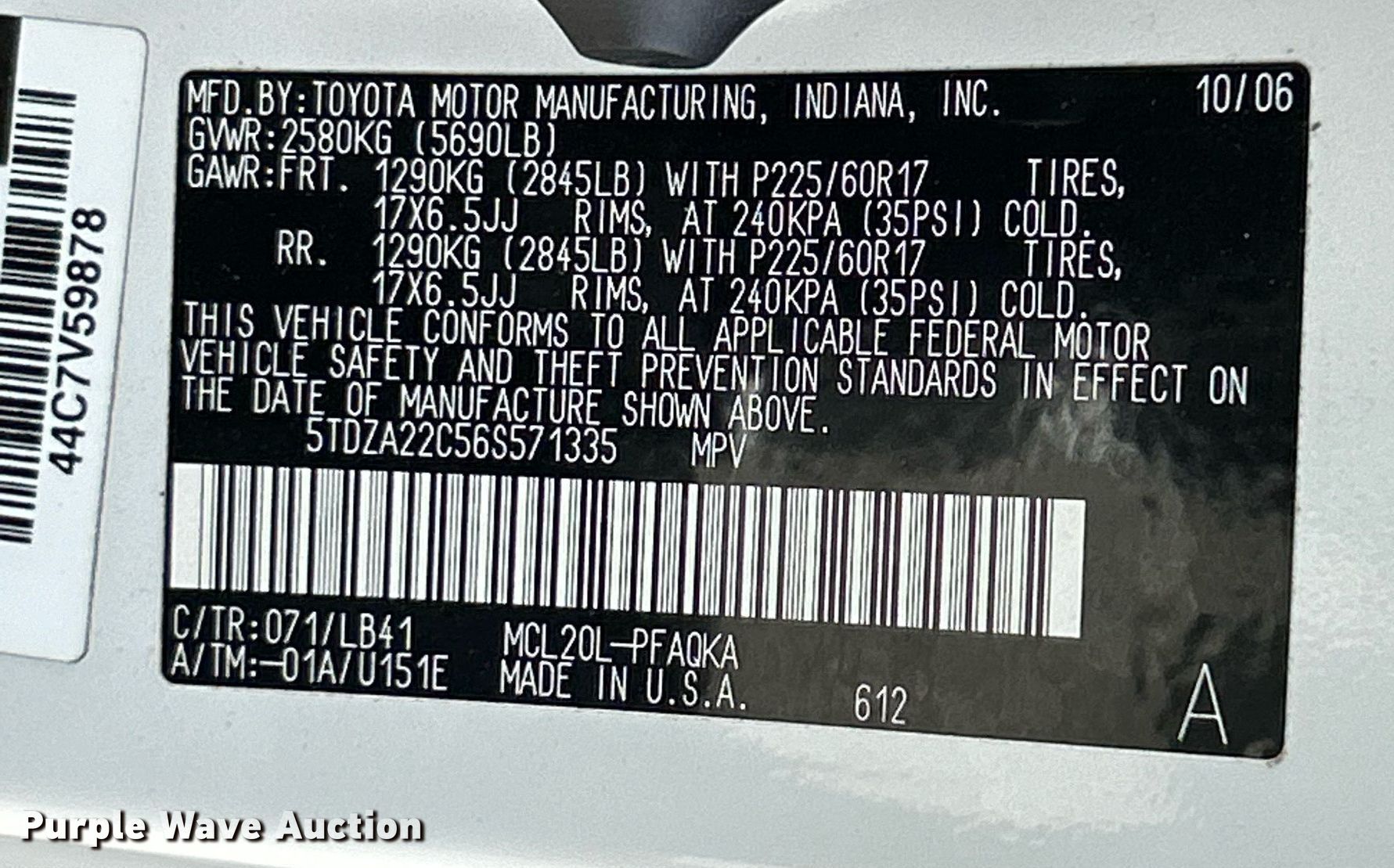 Purple Wave is selling a used Passenger Vehicle in Missouri. This item is a 2006 Toyota Sienna Limited van with the following: Miles: 225,660 on odometer, VIN: 5TDZA22C56S571335