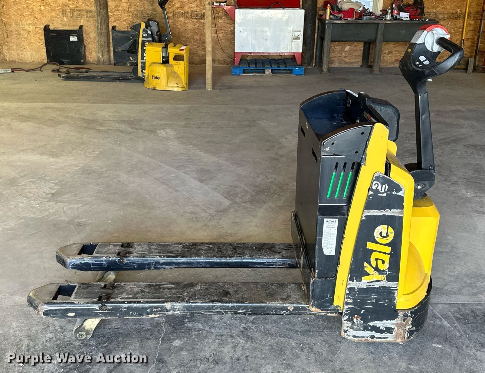 Purple Wave is selling a used Warehouse Forklift in Kansas. This item is a Yale MPB045VGN24T2246 pallet jack with the following: Hours: 148 on meter, Serial: A245N19848S