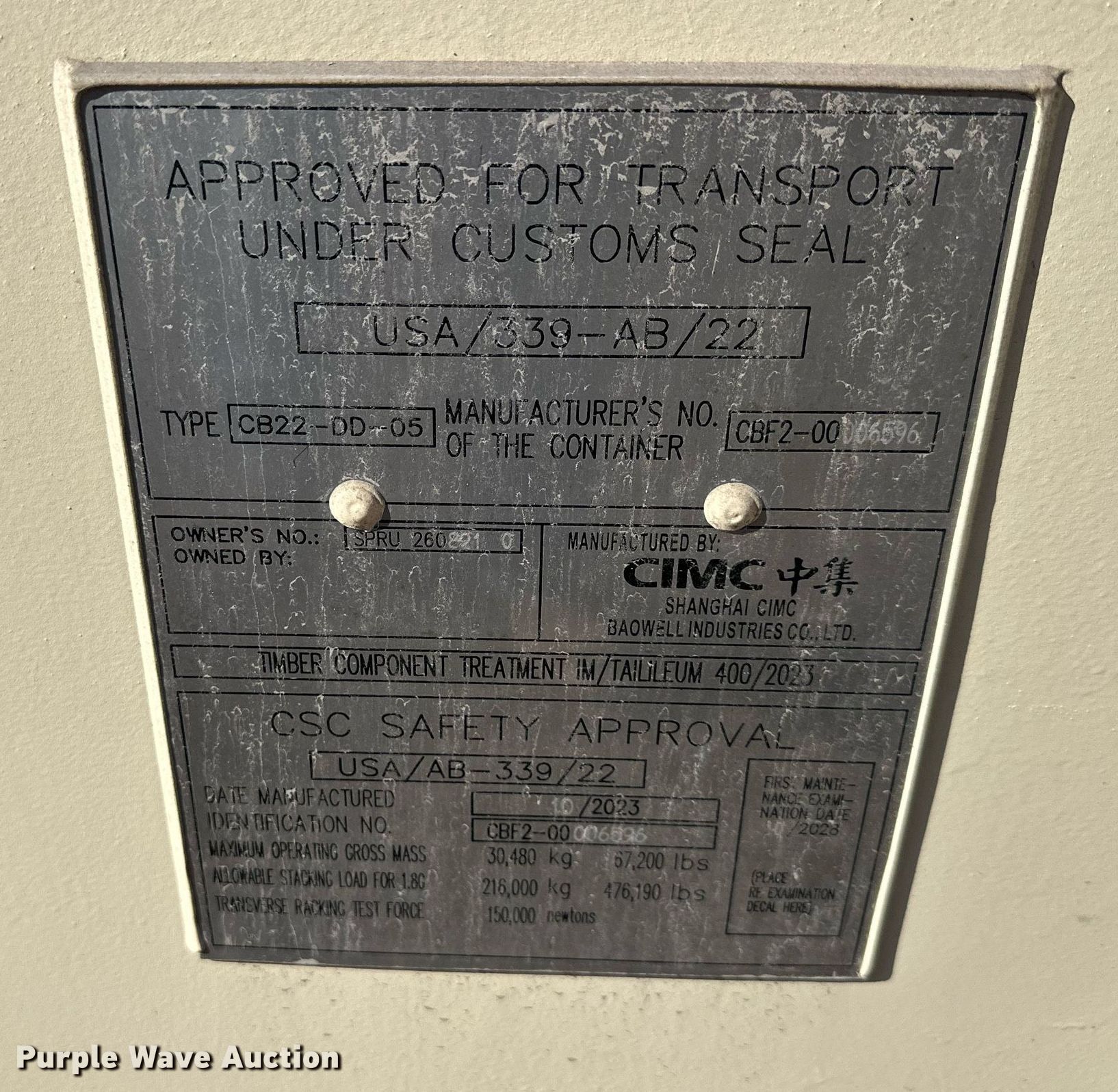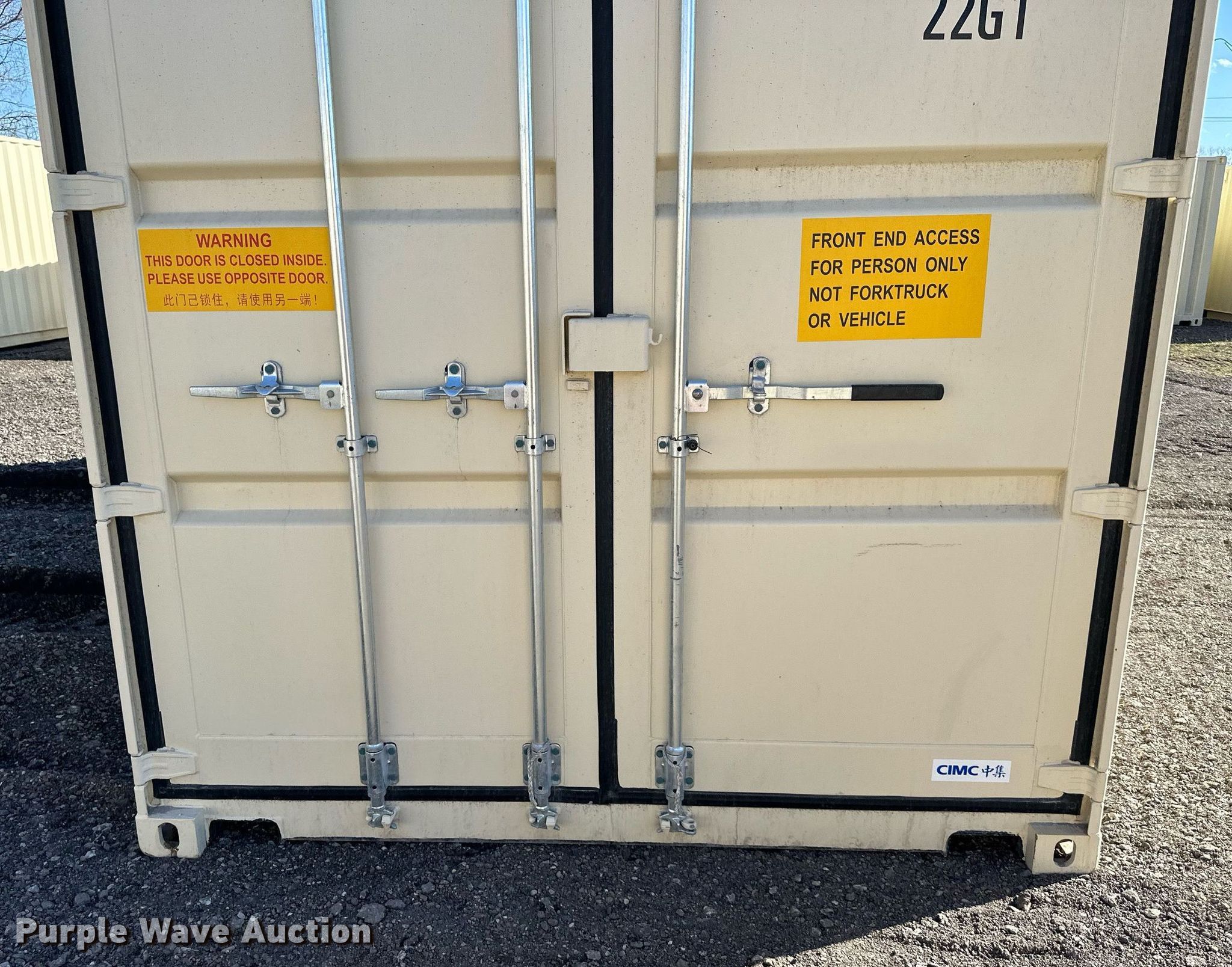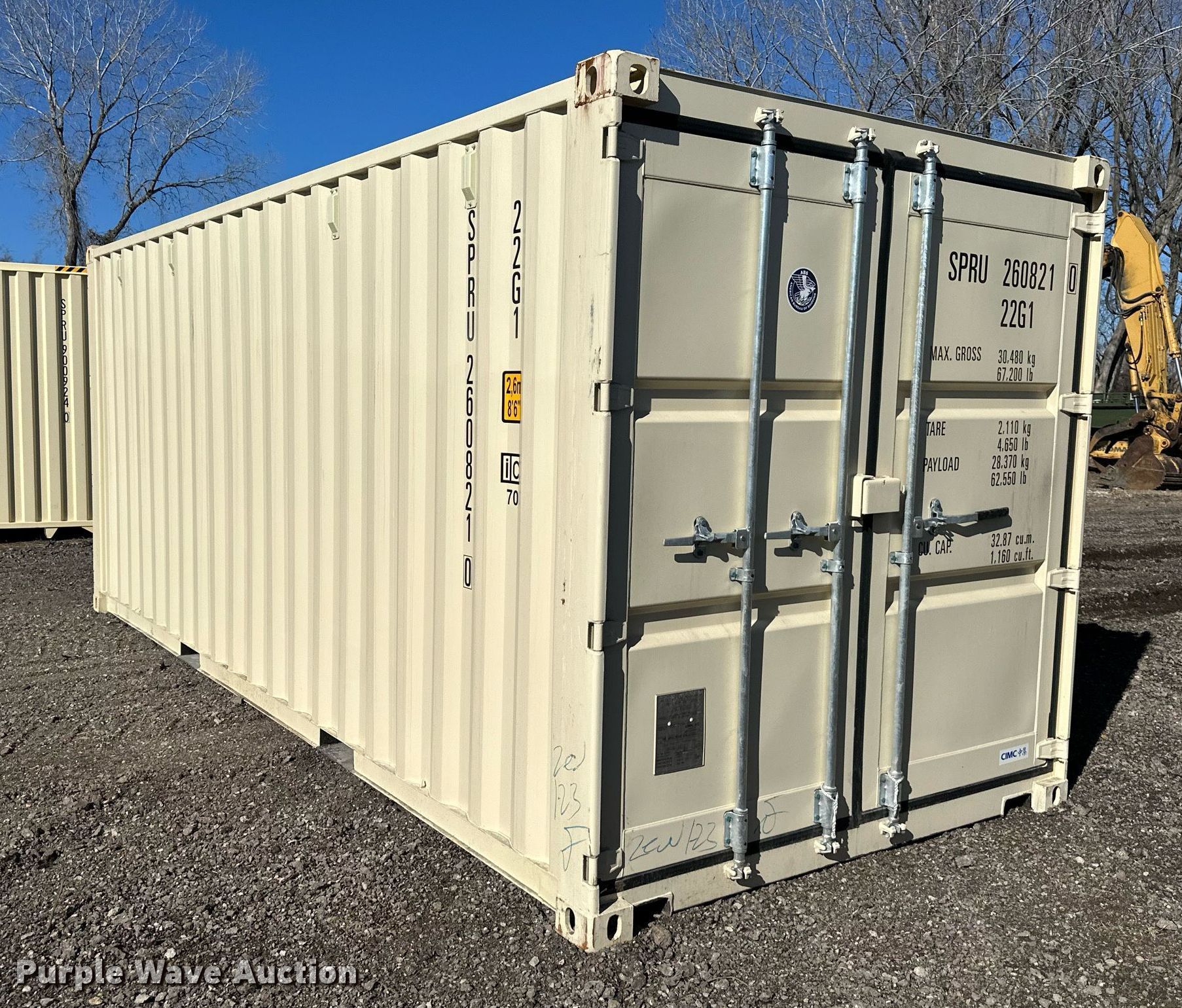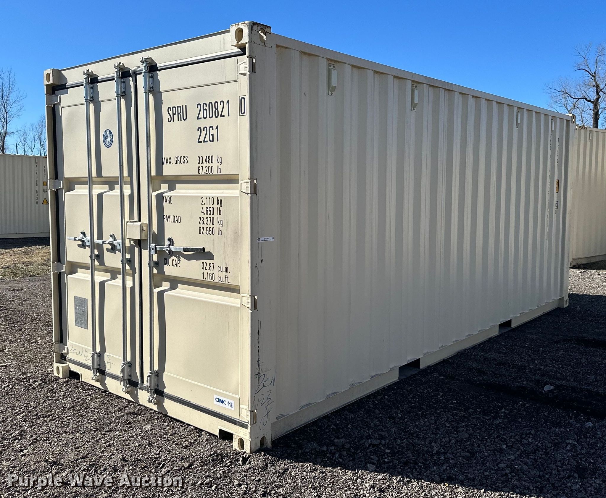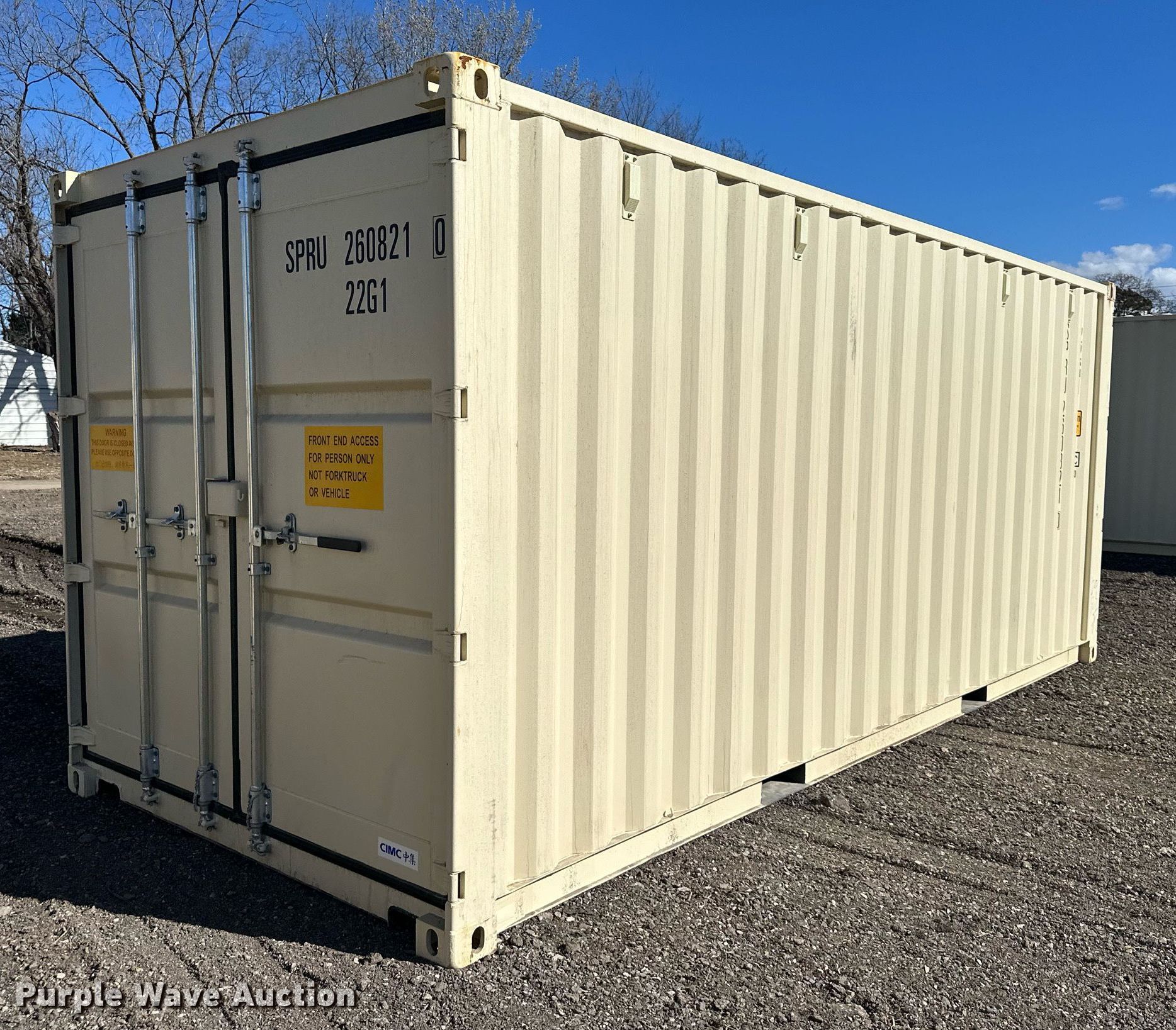 Purple Wave is selling a used Storage or Shipping Container in Kansas. This item is a 2023 shipping container with the following: Length: 20', (2) doors, Unused