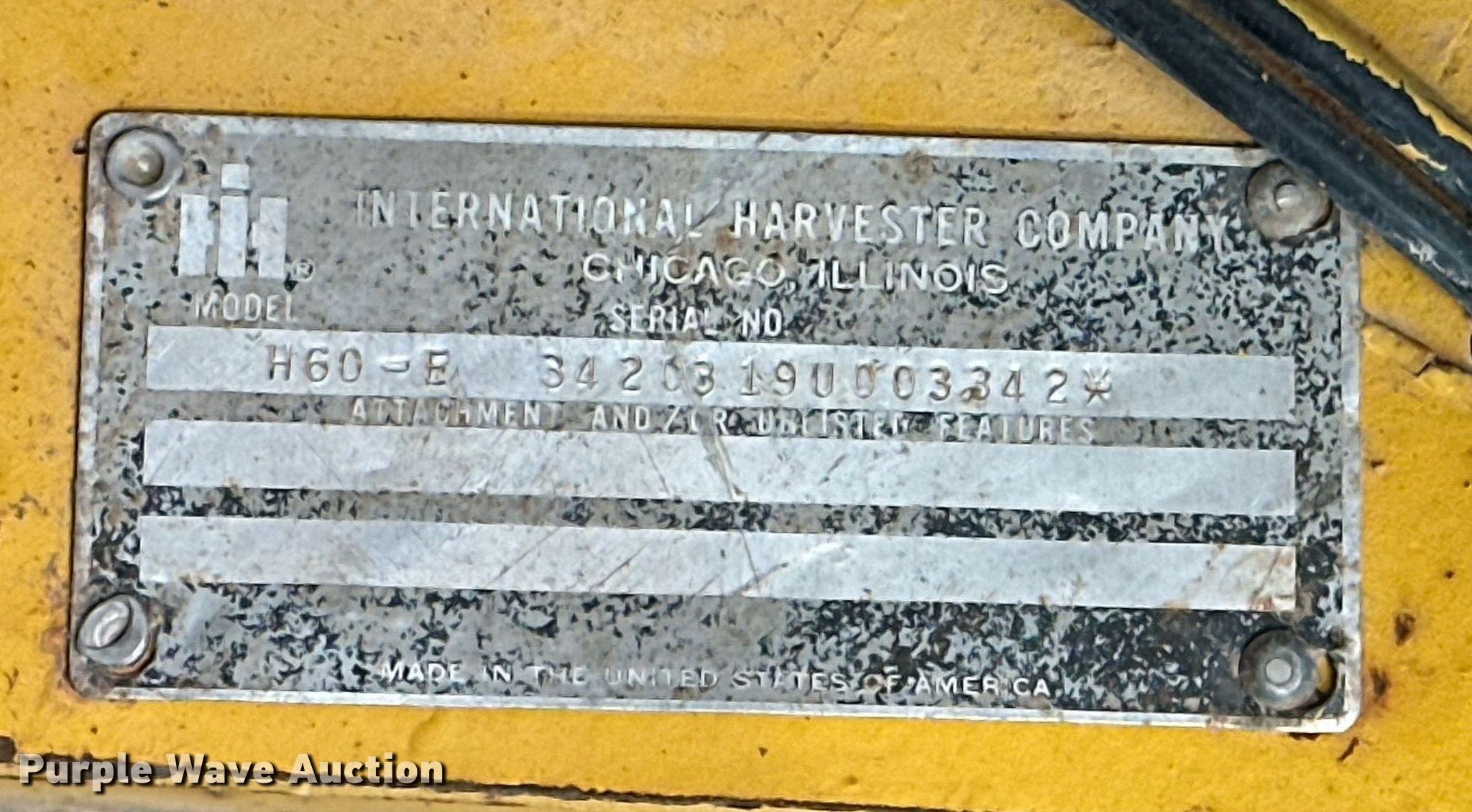 Purple Wave is selling a used Wheel Loader in Oklahoma. This item is a 1978 International H60-E wheel loader with the following: Hours: 5,366 on meter, Serial: 3420319U003342