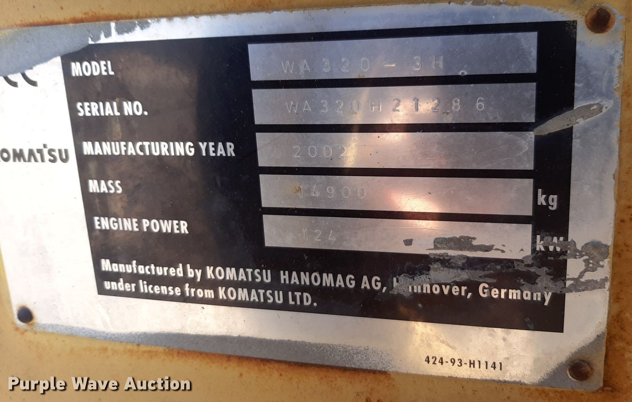 Purple Wave is selling a used Wheel Loader in Kansas. This item is a 2002 Komatsu WA320-3H wheel loader with the following: Hours: 14,958 on meter, Serial: WA320H21286