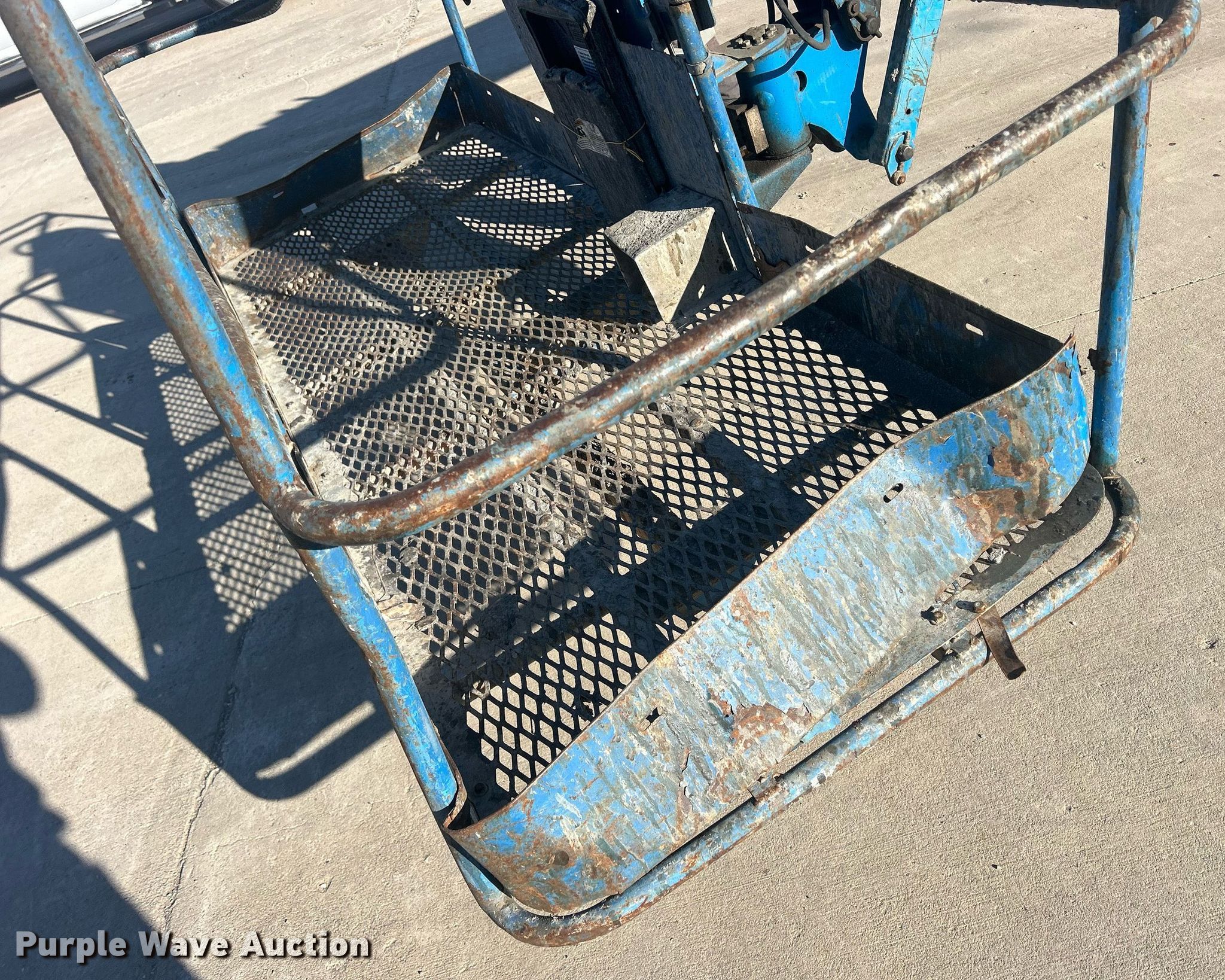 2007 Genie S-85 boom lift. Hours: 6,802 on meter, Serial: S8007-6108, Unit #: LFT108. Engine Perkins 804C, Cylinders: 4, Fuel type: Diesel. Chassis Four wheel drive. Features Articulating boom, Rough terrain, Maximum lift capacity: 500 lbs, Maximum reach length: 76' 11", Maximum lift height: 85', Hydraulic leveling, Platform: 32" L x 95" W, AC power outlet, Controls: Platform, Ground, Platform rotation: Hydraulic, Safety alarm, Extendable axles. Tires Size: 385/65-22.5. IOWA BRIDGE & CULVERT INC. 409 North Avenue B. Washington, IA 52353