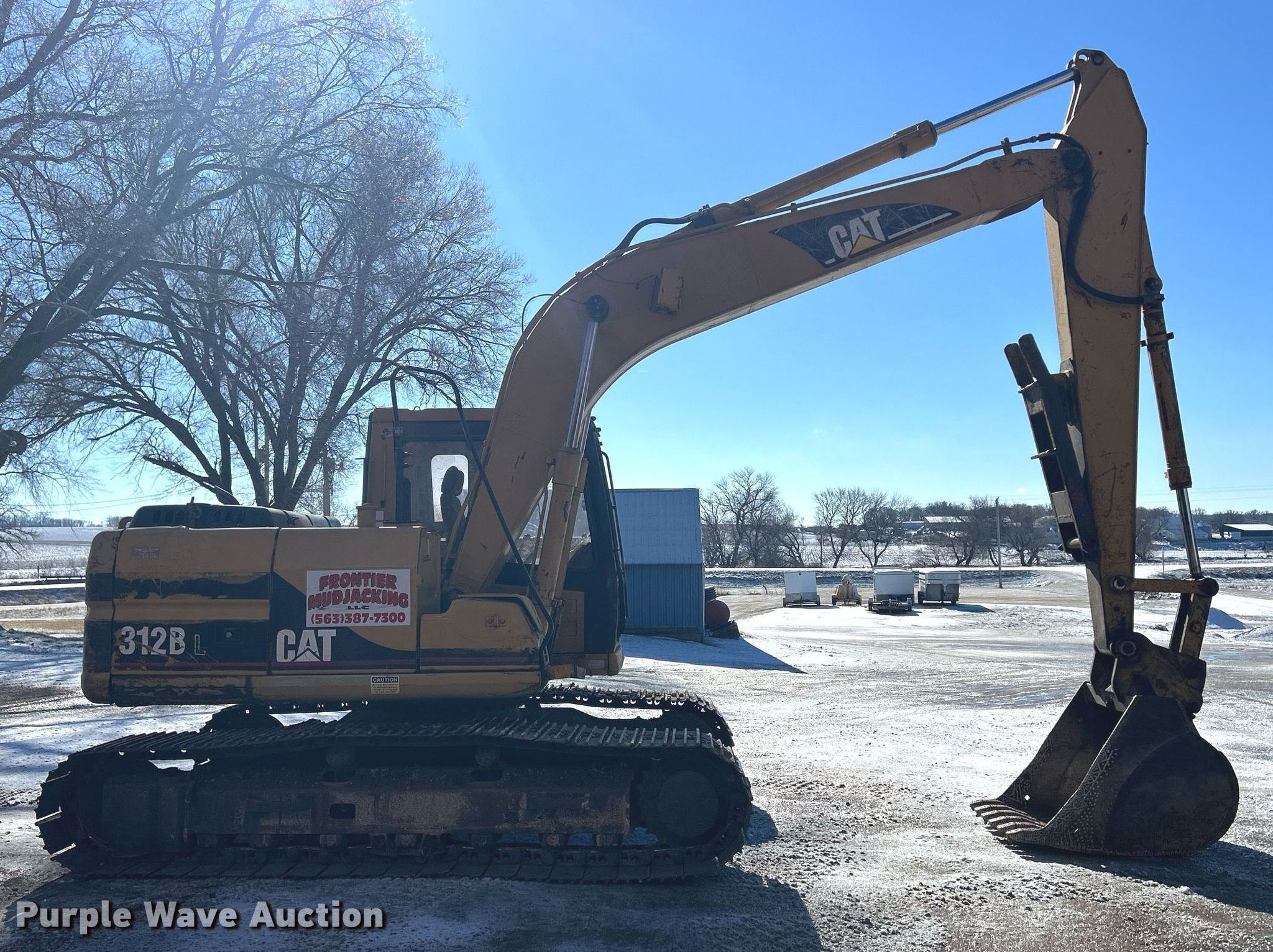1997 Caterpillar 312BL excavator. Hours: 8,817 on meter, Serial: 8JR00363. Engine Caterpillar 3064, Serial: 6KL14208, Cylinders: 4, Fuel type: Diesel. Transmission Hydrostatic, Two speed travel. Operators station Enclosed cab, Heat. Features Boom Standard, Stick Stick length: 9' 10", Thumb: Weld-on, Bucket EBI, Width: 36", Teeth: 6. Tracks Width: 24", Steel, Grouser pads: Triple. Frontier Mudjacking. 2205 285th Ave. Ridgeway, IA 52165