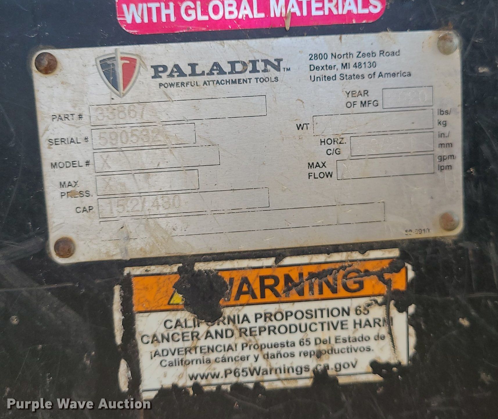 Take a look at this used 2020 Paladin skid steer bucket being sold on March 14th, 2024 in the SOLD! March 14 Construction Equipment Auction made by Paladin. Take a look at all of the item information below or take a look at similar auctions for Skid Steer Loaders.