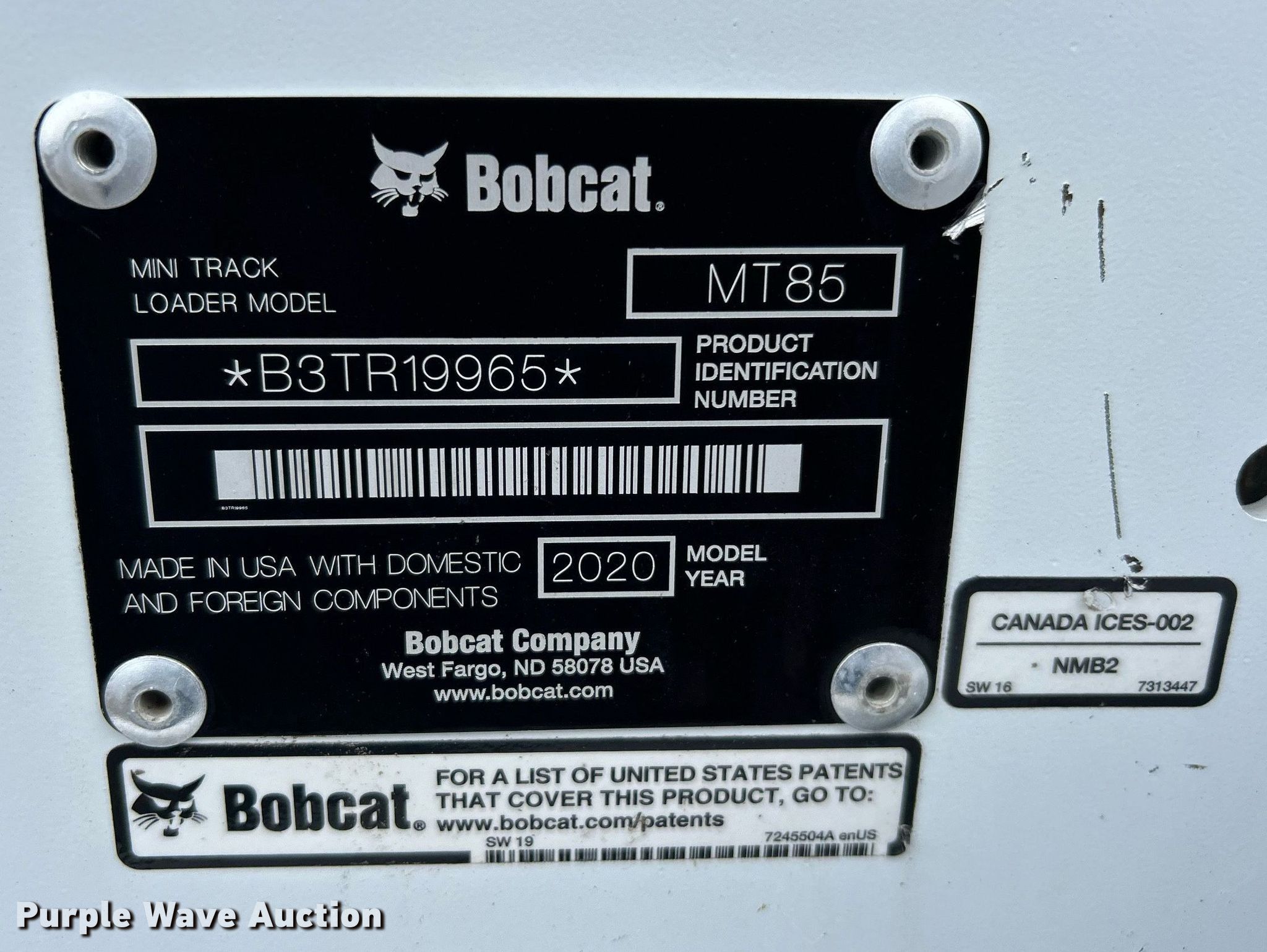 Purple Wave is selling a used Compact Utility Loader in Oklahoma. This item is a 2020 Bobcat MT85 compact utility loader with the following: Hours: 463 on meter, Serial: B3TR19965