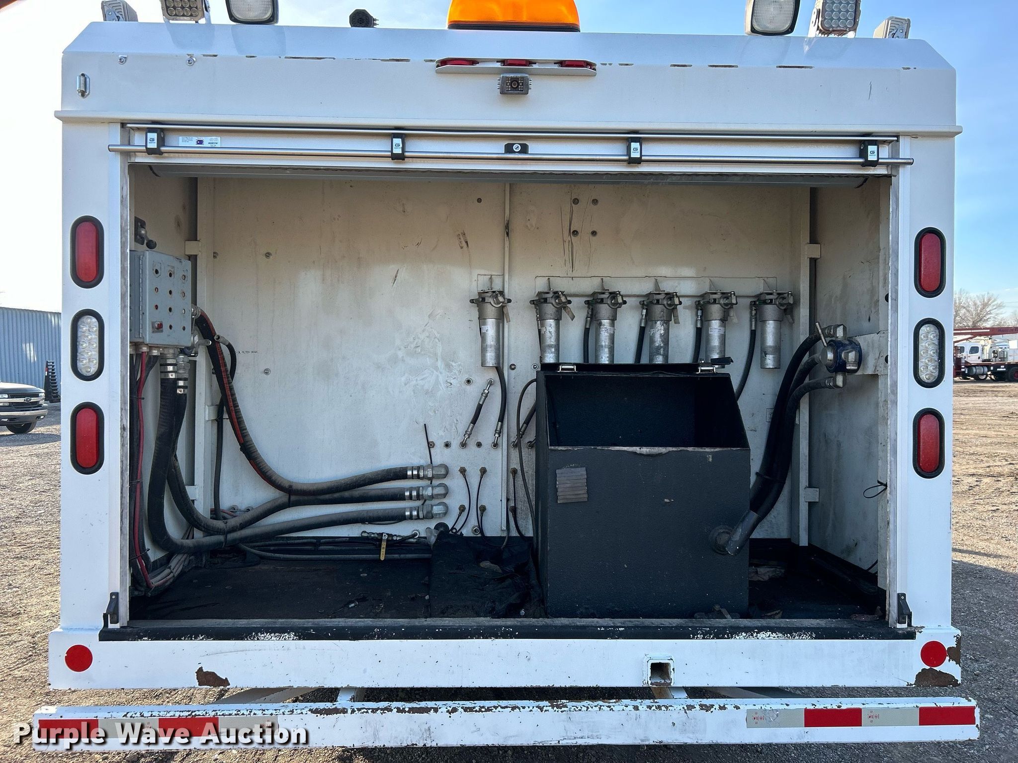 2015 International 4400 SBA fuel / lube truck. Miles: 199,215 on odometer, Hours: 11,792 on meter, VIN: 1HTMKAZN0FH533155. Engine Cylinders: 6, Fuel type: Diesel. Transmission Automatic. Chassis Axles: Single, Suspension: Spring, Brakes: Air, PTO, GVWR: 33,000 lbs. Interior AC, Heat, Power windows, Power locks, Cruise control, Auxiliary controls, Backup camera. Features Bed / tank Jamco Specialty Service Vehicles, Serial: 114179, 17' L x 96" W, Compartments: 1, Oil/lube reservoirs Grease, Motor oil, Used oil.. Tires Front: 315/80R22.5, Rear: 11R22.5. Oklahoma title. 15107 North 137th East Avenue. Collinsville, OK 74021