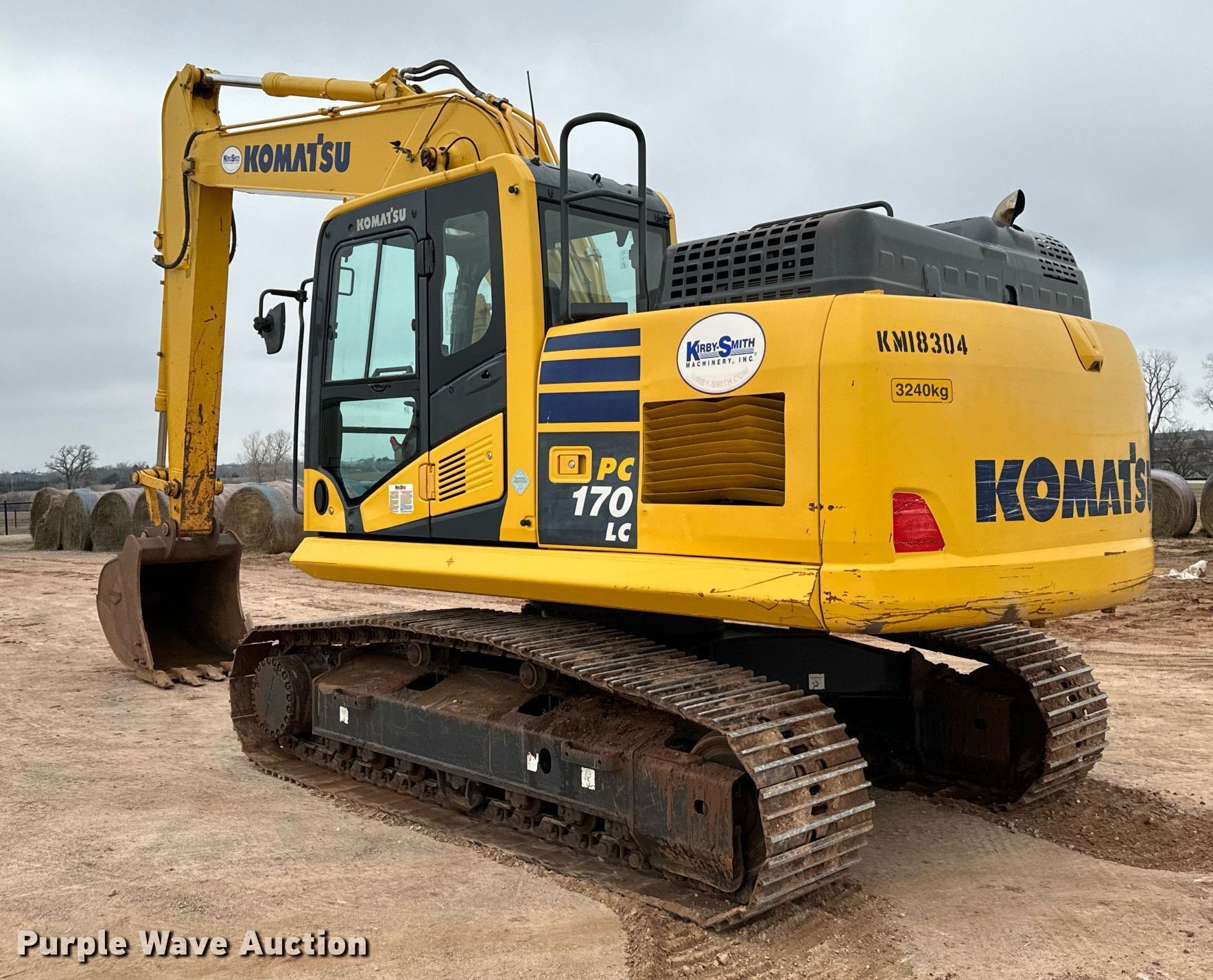 Purple Wave is selling a used Hydraulic Excavator in Oklahoma. This item is a 2018 Komatsu PC170LC-11 excavator with the following: Hours: 1,979 on meter, Serial: KMTPC269JHC035297