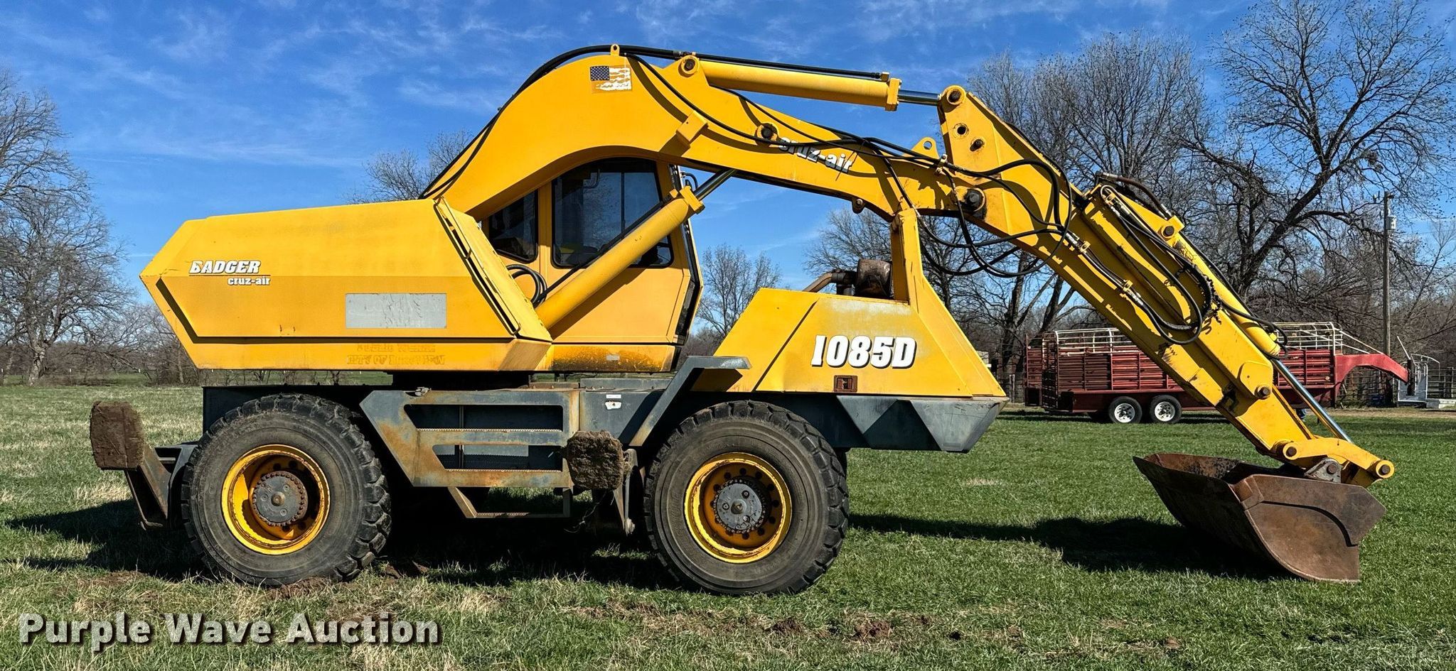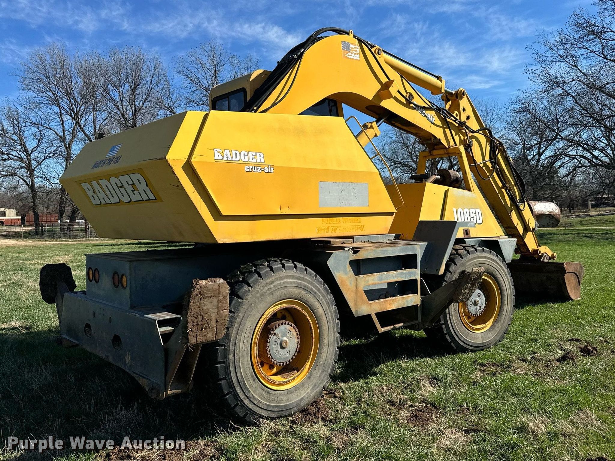 Purple Wave is selling a used Wheeled Excavator in Oklahoma. This item is a 2000 Badger 1085D wheeled excavator with the following: Hours: 8,392 on meter, Serial: 030301