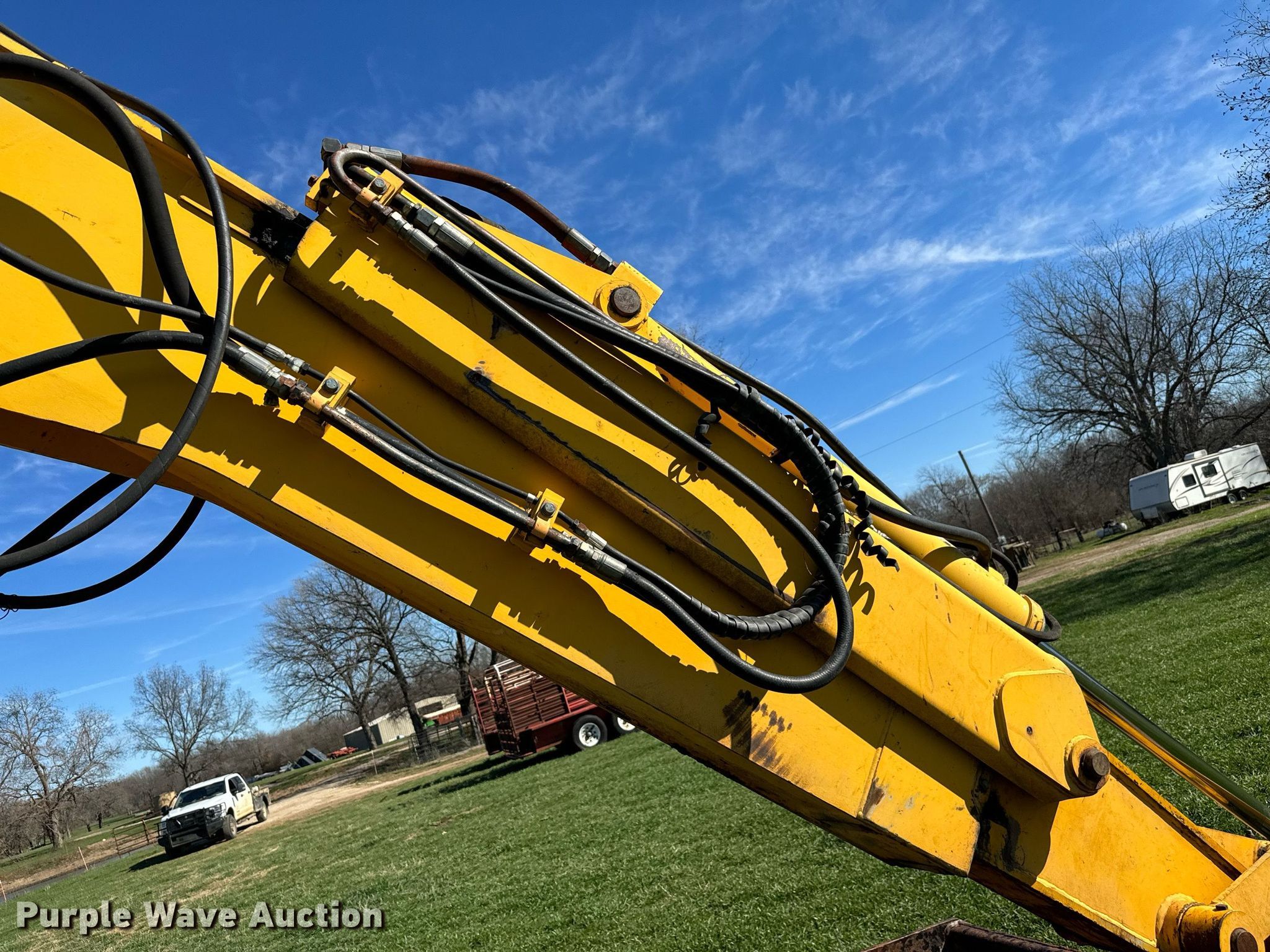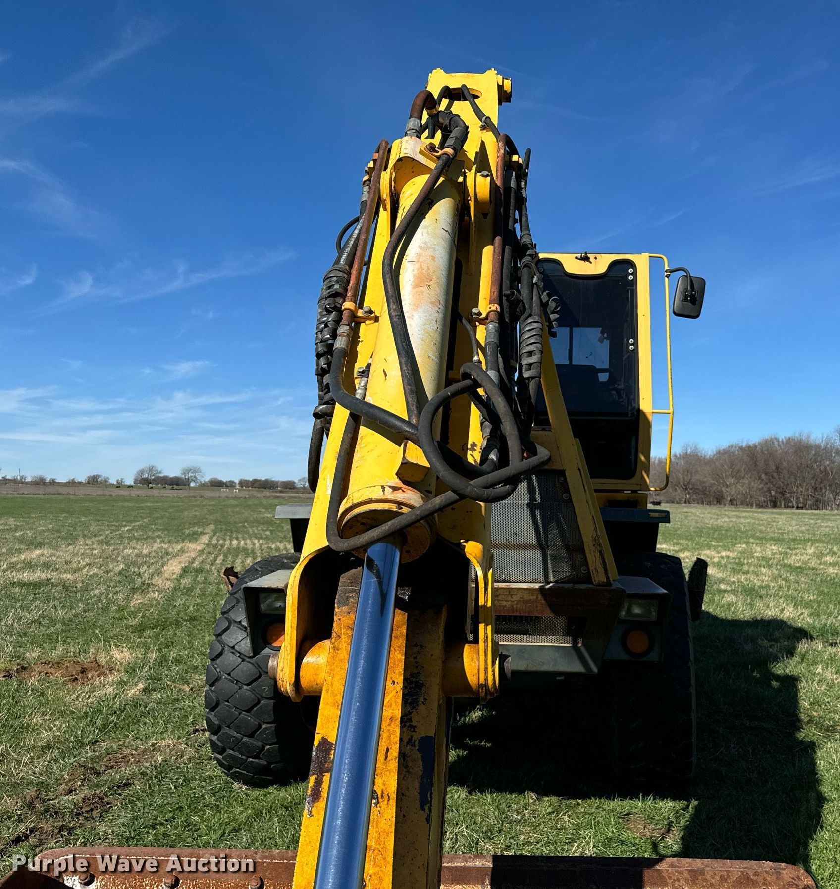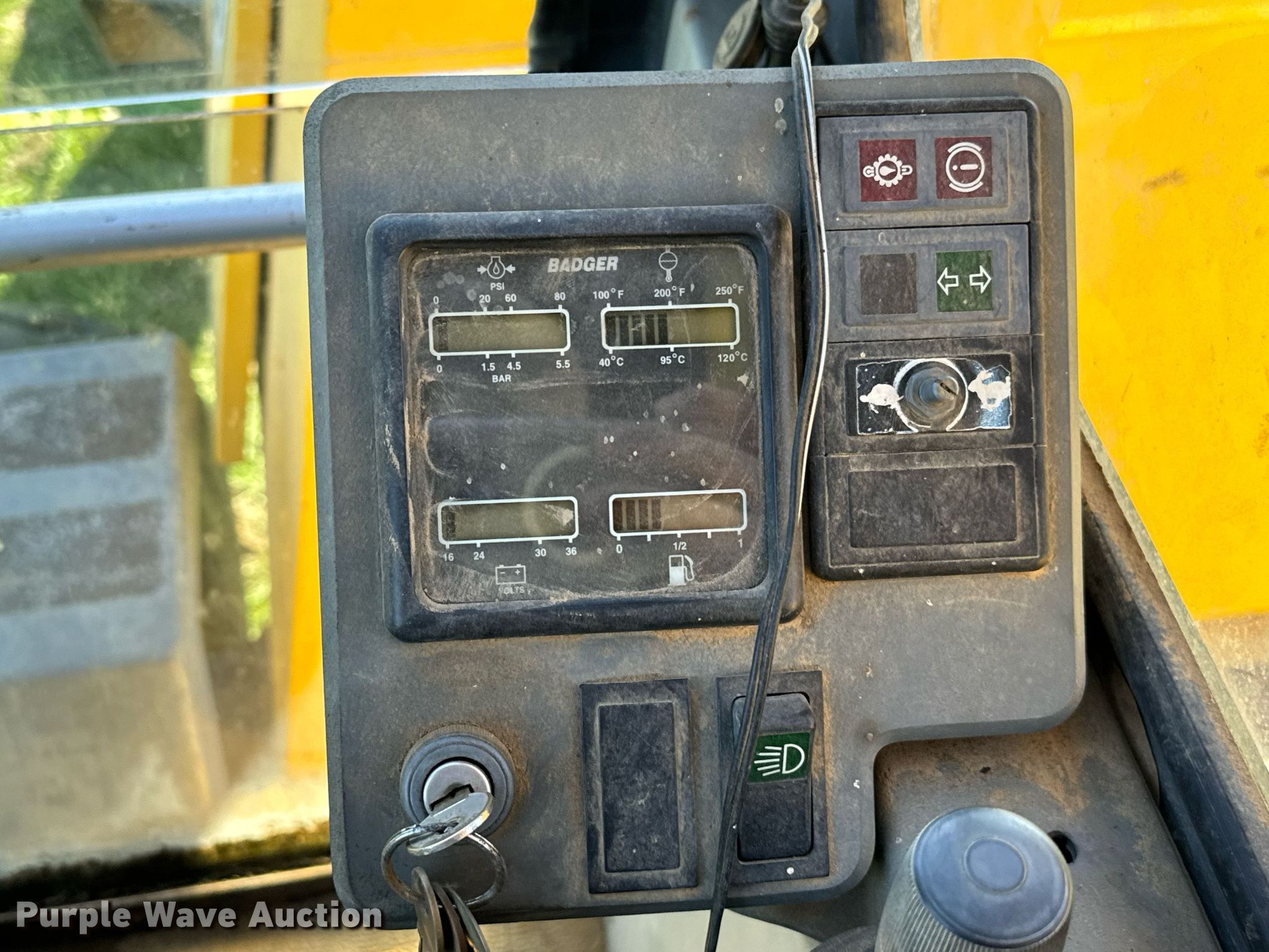 2000 Badger 1085D wheeled excavator. Hours: 8,392 on meter, Serial: 030301. Engine Cummins 6BT5.9-C152, Serial: 46542187, Displacement: 5.9L, Cylinders: 6, Fuel type: Diesel. Transmission Powershift. Operators station Enclosed cab, AC, Heat. Features Auxiliary hydraulics, Standard, Boom Standard, Extendable stick, Bucket Width: 70", Cutting edge: Bolt-on. Tires Size: 17.5R25. 5312 Holiday Road. Wilson, OK 73463