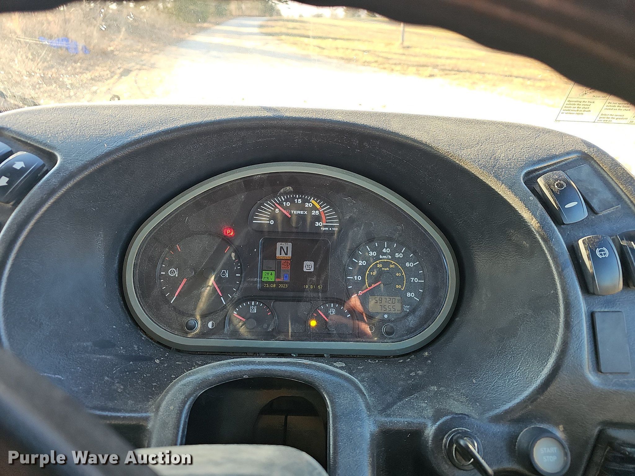 2013 Terex TA300 haul truck. Hours: 5,972 on meter, Serial: A1101145. Engine Cylinders: 6, Fuel type: Diesel. Transmission Automatic. Chassis Four wheel drive. Interior AC, heat, Backup camera. Features Dump bed Terex, Capacity: 30 tons. Tires Size: 23.5R25. 9712 W Hwy 14. Omaha, AR 72662