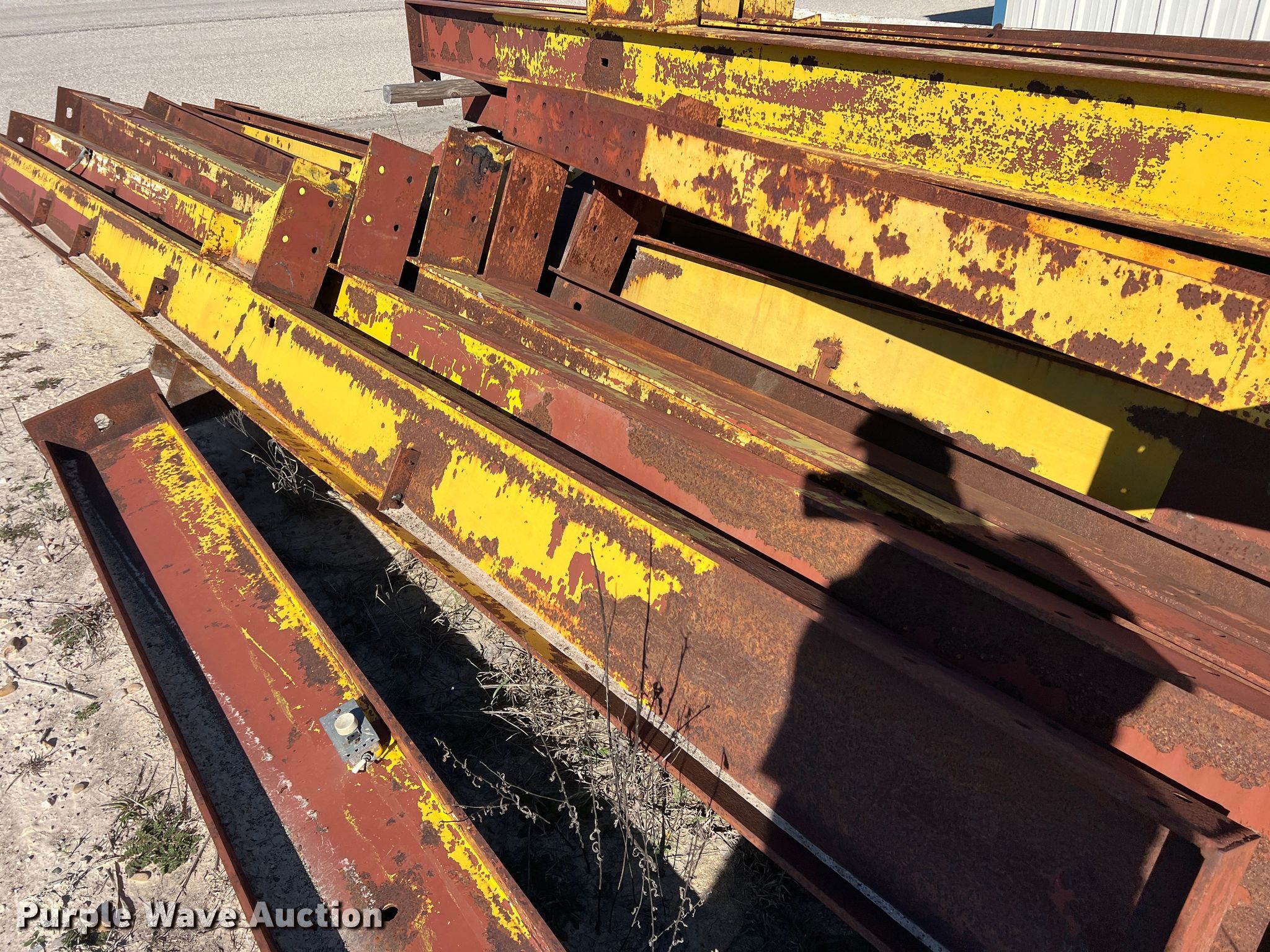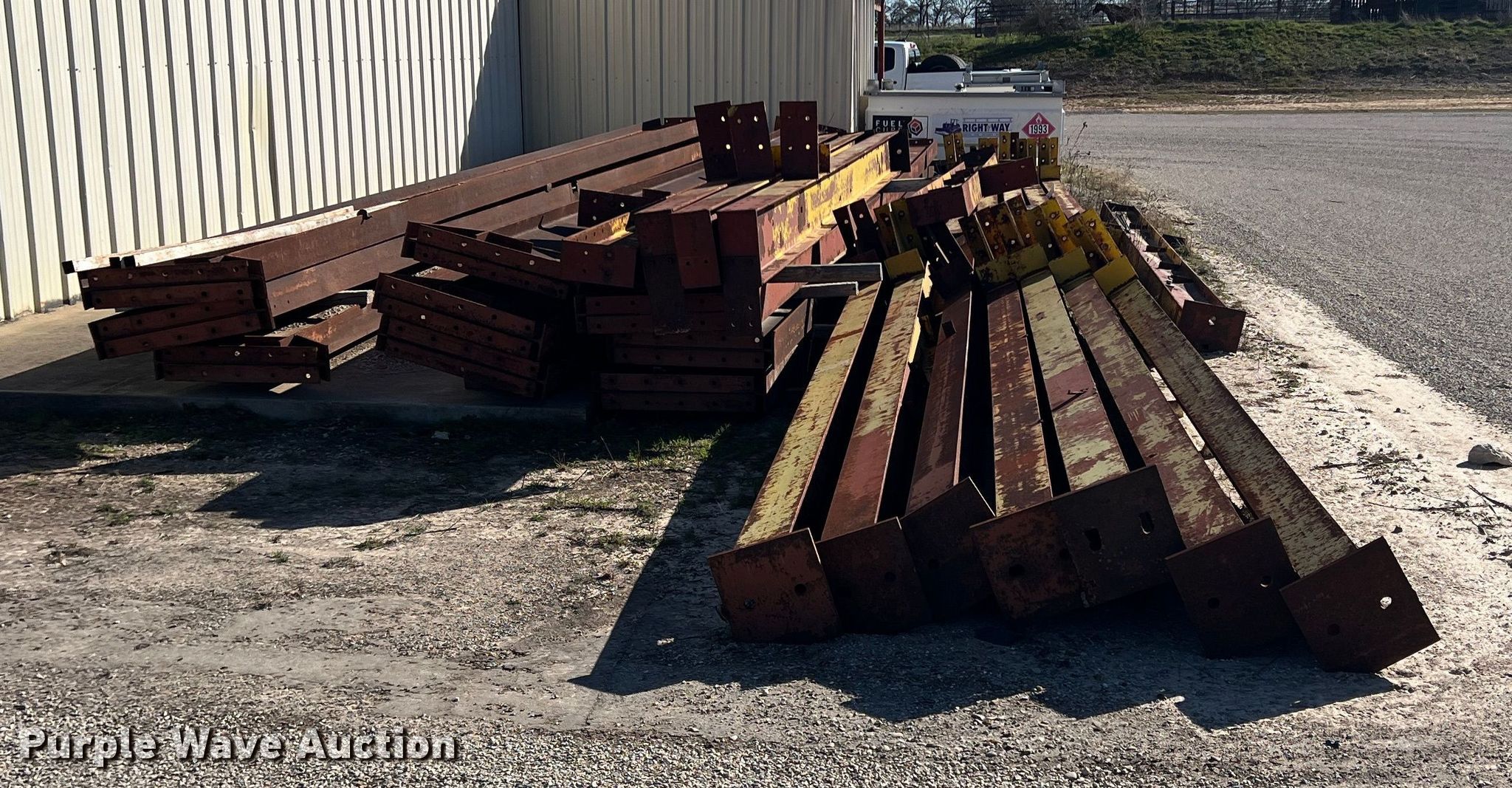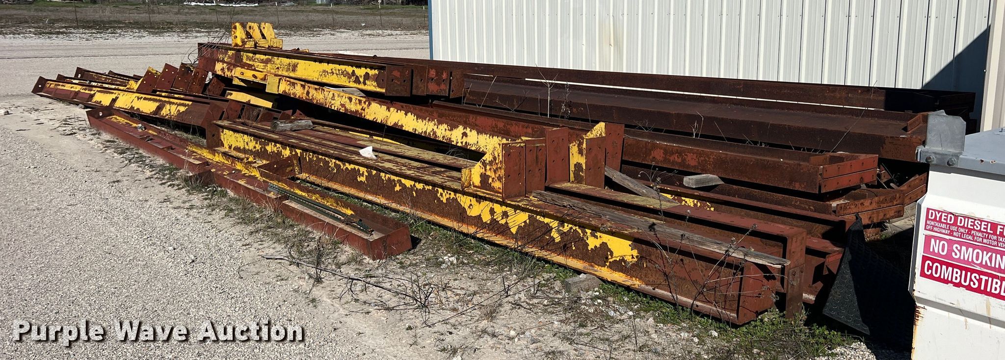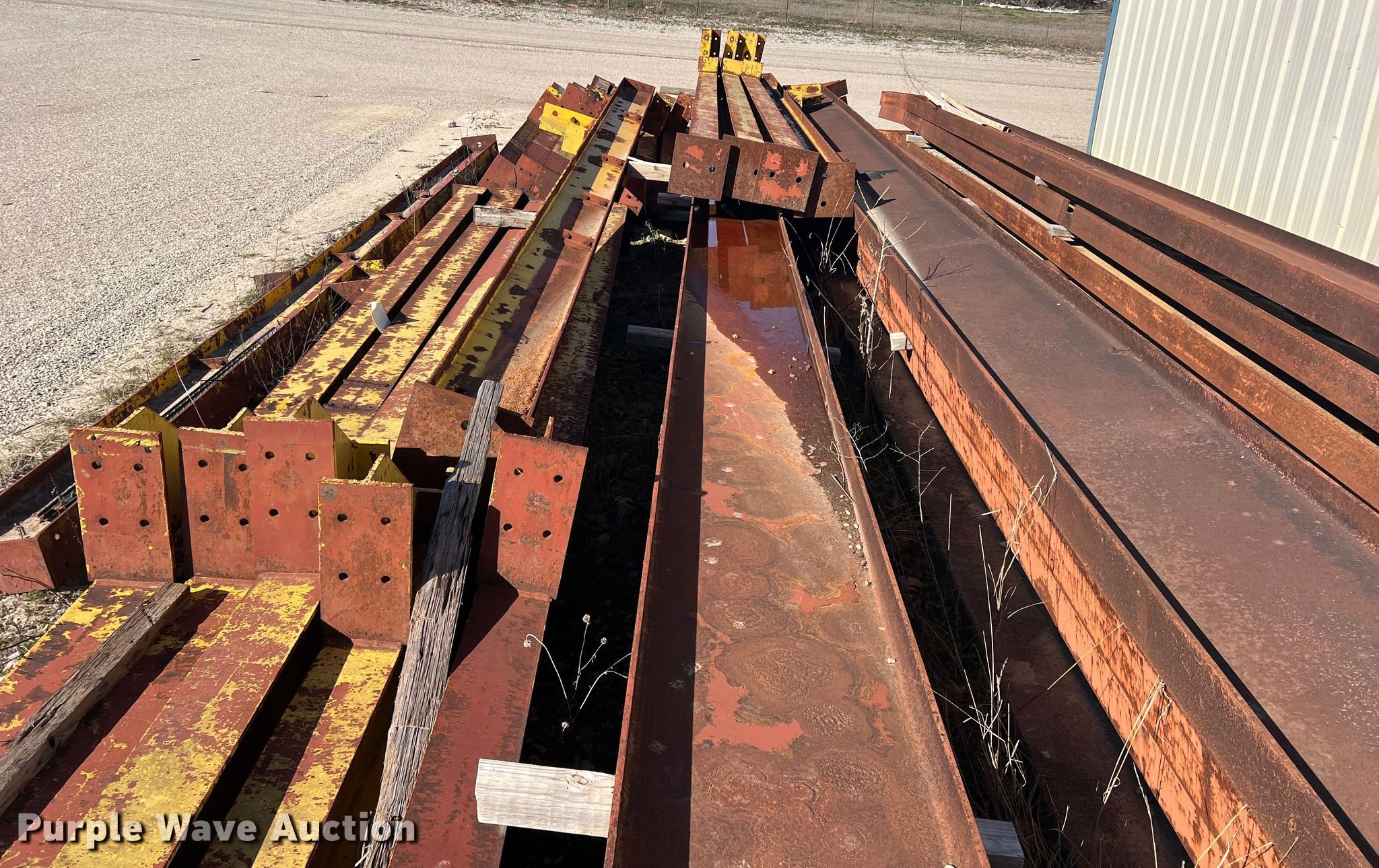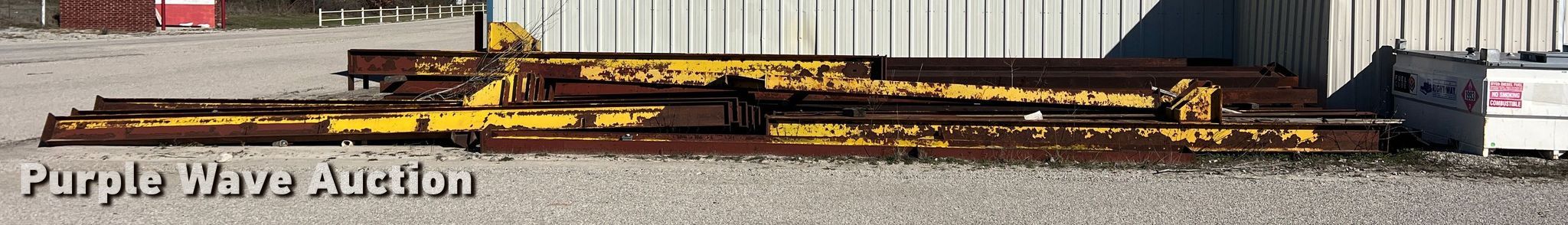 Purple Wave is selling a used Building Materials in Texas. This item is a 40' x 200' x 20' building frame with the following: Approx. 25 pieces, 22' L to 38' L, No hardware included
