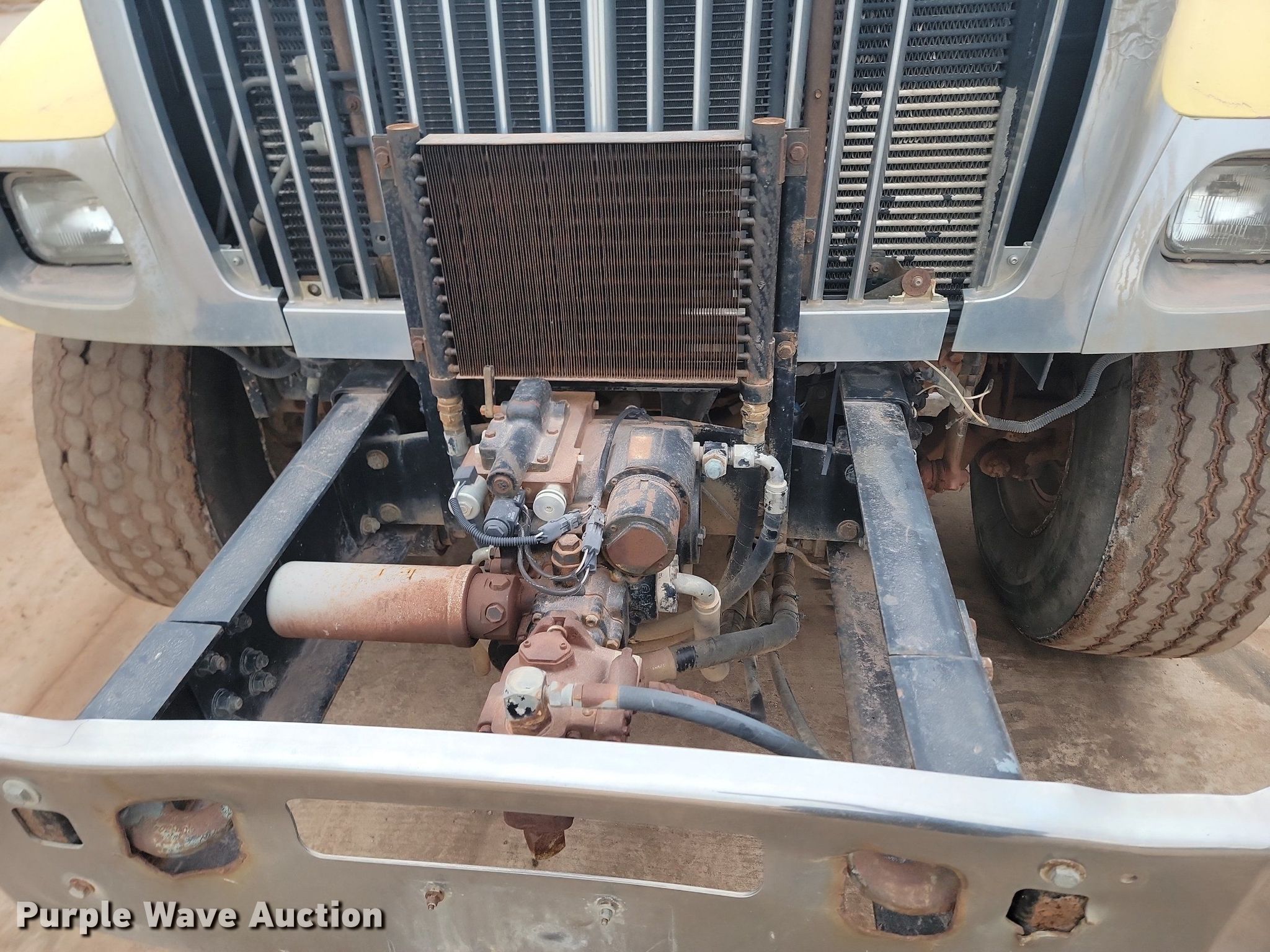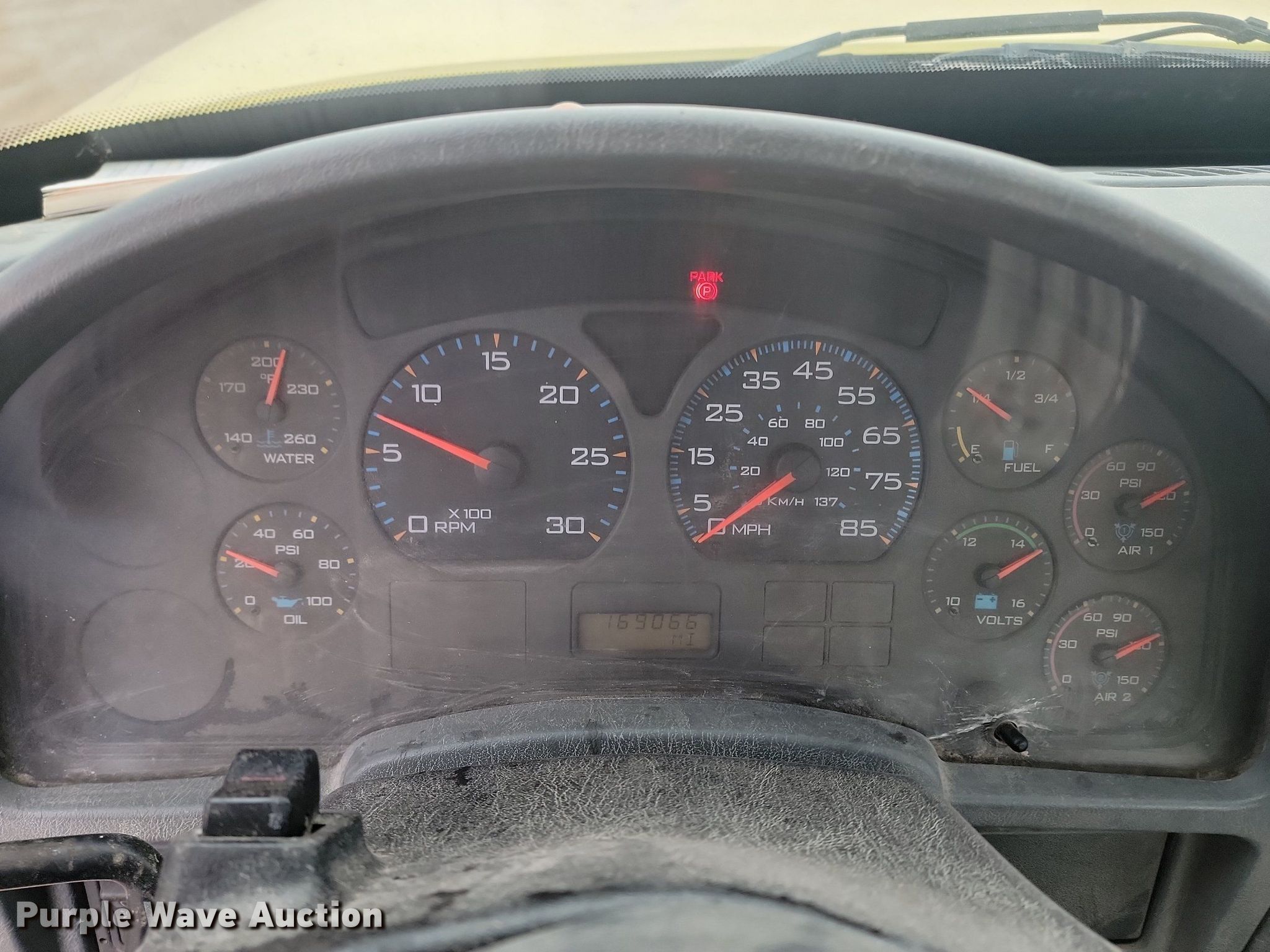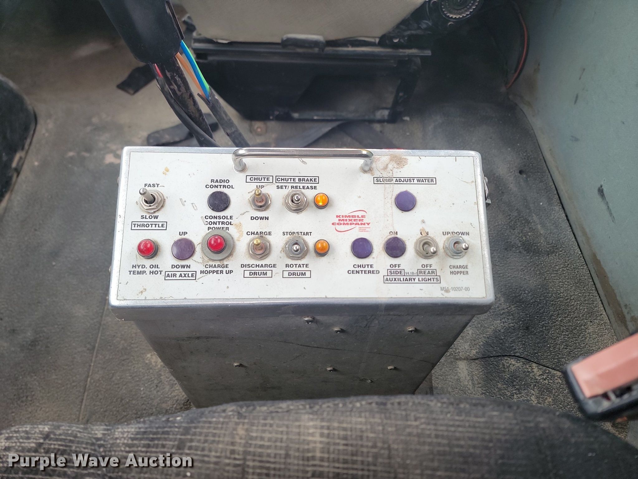 2002 International 7400 ready mix truck. Miles: 169,066 on odometer, Hours: 24,412 on meter, VIN: 1HTWHADT02J052807. Engine Cylinders: 6, Fuel type: Diesel. Transmission Eaton Fuller, Manual. Chassis Double frame, Axles: Tandem, Differential lock: Inter-axle, Suspension: Spring over walking beam, Brakes: Air, Front mount PTO. Interior AC, Heat, Cruise control. Features Mixer Kimber Mixer Company K-2000, Serial: KS29OHD200i, Capacity: 9 cu.yd., Discharge: Rear, In-cab controls, Rear drum controls, Water tank capacity: 115 gallons, Chute Extensions: 3, Chute type: Aluminum.. Tires Front: 425/65R22.5, Rear: 11R22.5, Lift axle: 215/75R17.5. Notes Transmission issues, shifts hard. South Dakota title. Title distribution may be delayed up to 14 days from verification of funds. Knife River - Sweetman Const.. 1305 N Louise Ave. Sioux Falls, SD 57107