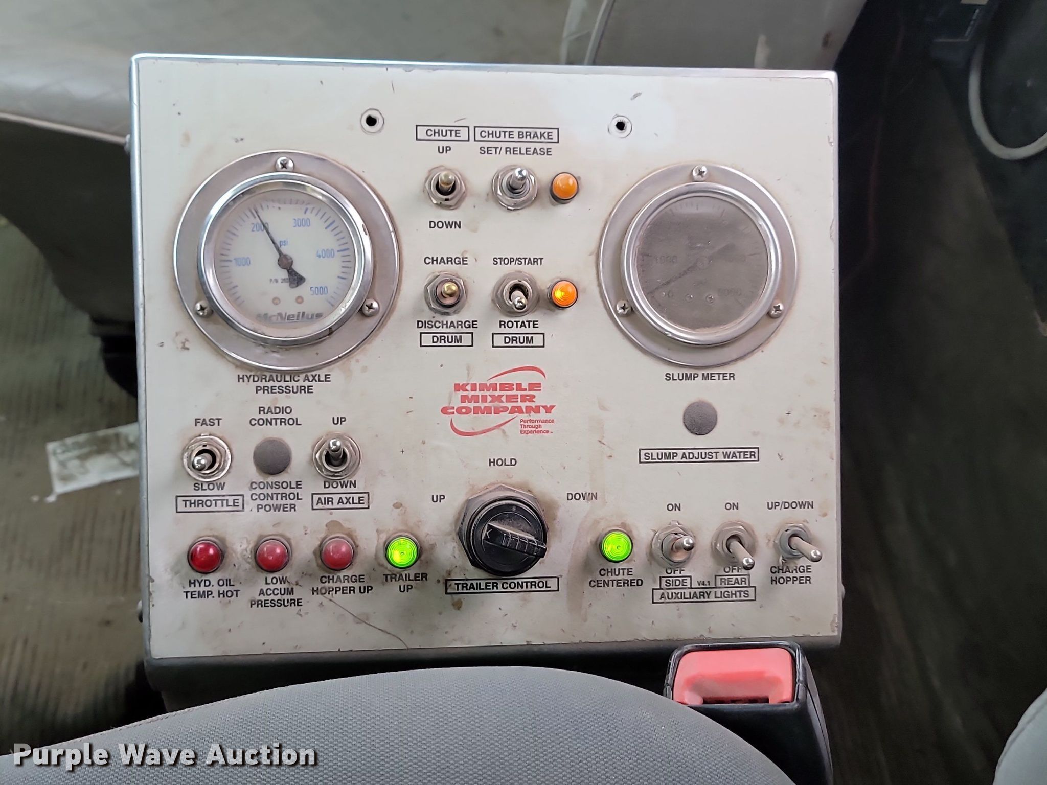 2004 Kenworth W900 ready mix truck. Miles: 224,623 on odometer, Hours: 5,651 on meter, VIN: 1NKWL0EX24J071495. Engine Cummins ISM, Displacement: 10.8L, Cylinders: 6, Fuel type: Diesel. Transmission Eaton Fuller, Manual, Speed: 11. Chassis Axles: 4, Pusher axle Steerable, Tag axle Steerable, Differential lock: Inter-axle, Suspension: Spring over walking beam, Brakes: Air, PTO, GVWR: 78,000 lbs FAWR: 23,000 lbs, IAWR: 23,000 lbs, RAWR: 23,000 lbs. Interior AC, Heat, Heated mirrors, Cruise control. Features Mixer Kimber K-2000, Serial: K211HD2401, Capacity: 11 cu.yd., Discharge: Rear, In-cab controls, Rear drum controls, Water tank capacity: 150 gallons, Chute Extensions: 3, Chute type: Aluminum.. Tires Front: 425/65R22.5, Rear: 11R22.5, Lift axle: 255/70R22.5. Notes Hour meter has been replaced. South Dakota title. Title distribution may be delayed up to 14 days from verification of funds. Knife River - Sweetman Const.. 1305 N Louise Ave. Sioux Falls, SD 57107